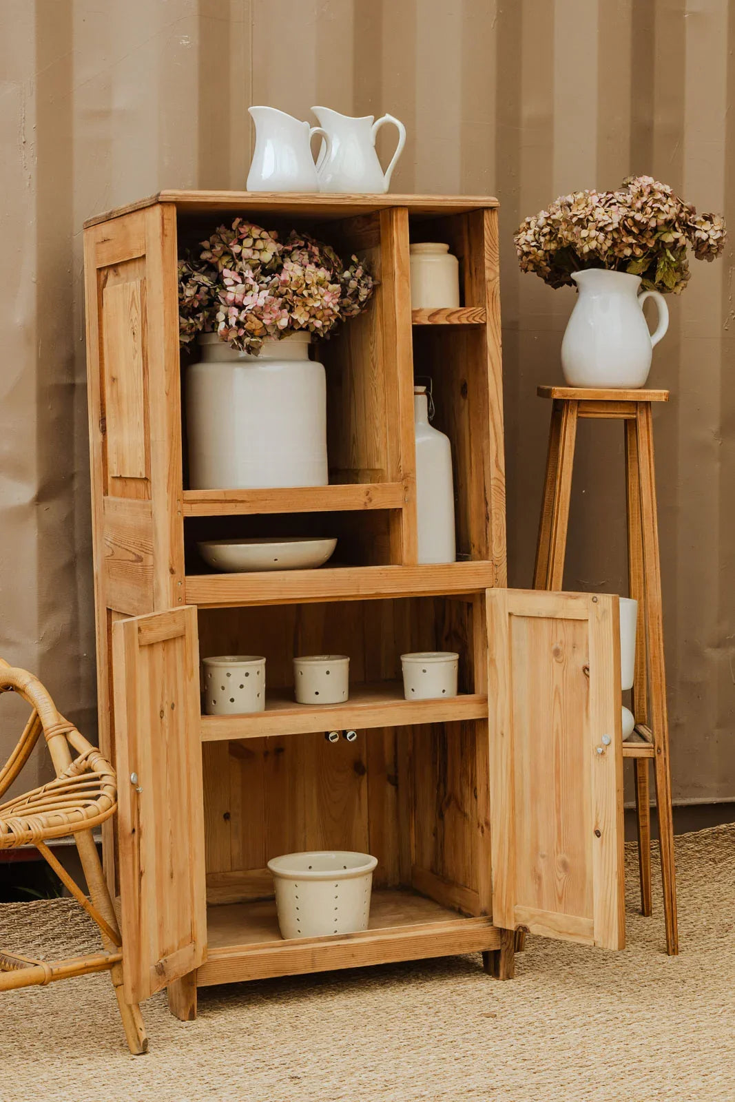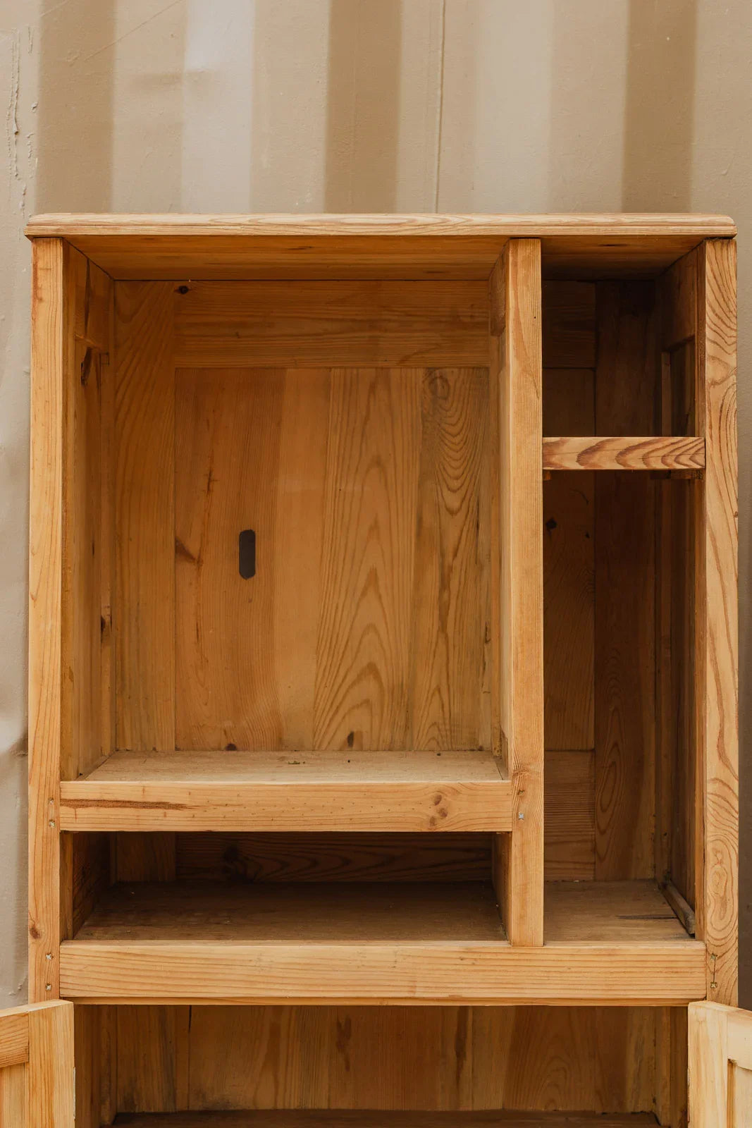 Découvrez ce meuble atypique en pin, alliant charme ancien et fonctionnalité moderne. Doté d'une étagère spacieuse et de quatre niches, il saura s'intégrer parfaitement dans votre intérieur tout en apportant une touche d'authenticité. Les subtiles imperfections du bois témoignent de son histoire, faisant de chaque pièce un élément unique. Idéal pour exposer vos livres, objets décoratifs ou plantes, ce meuble est un incontournable pour ceux qui recherchent un style à la fois chaleureux et atypique.