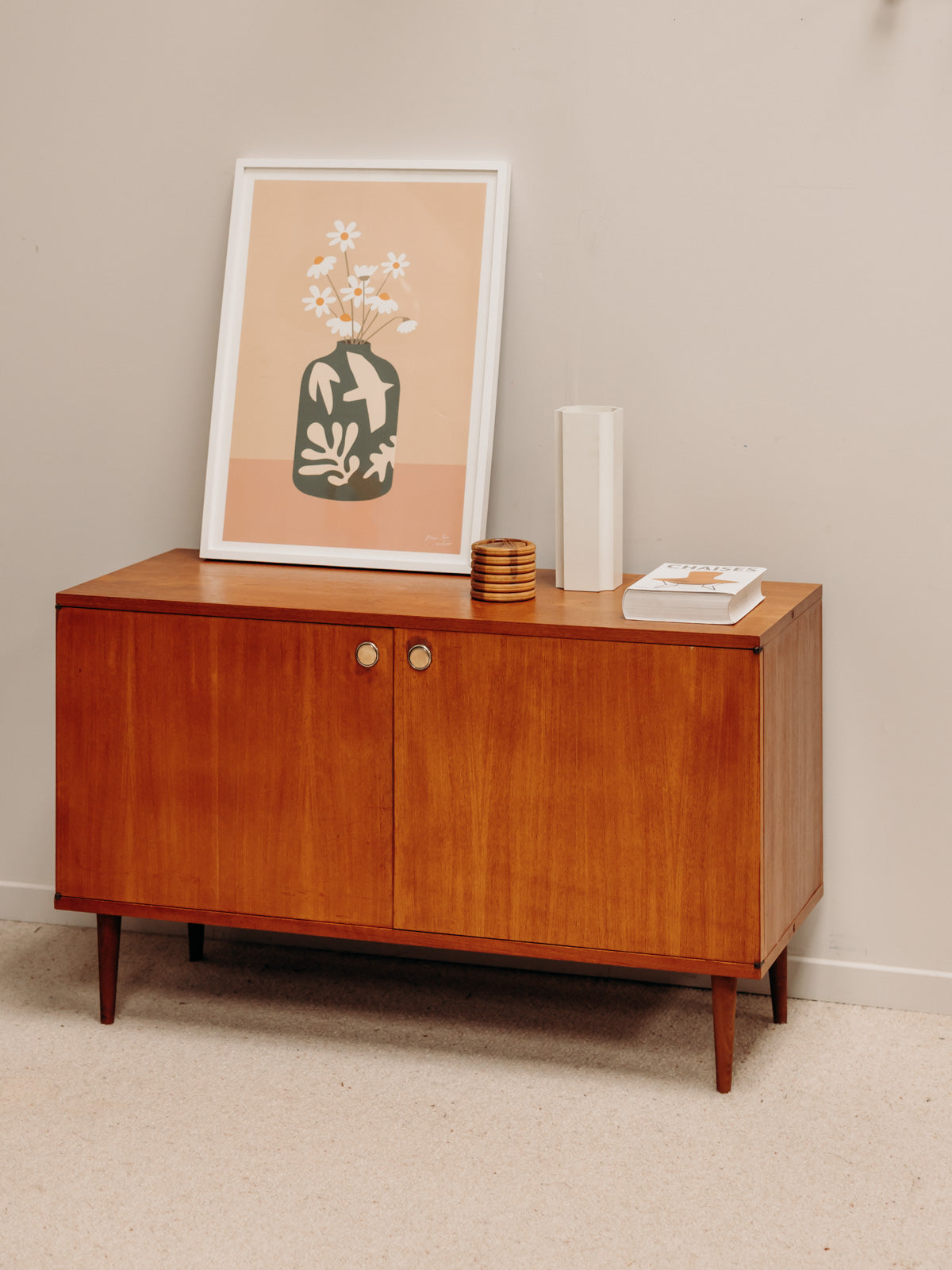 Optez pour ce petit buffet en bois sur pieds aux lignes sobres, qui apporte une chaleur naturelle et un esprit authentique à la pièce. Discret et fonctionnel, il s’ouvre sur deux portes et deux étagères intérieures dont la hauteur se règle pour organiser vaisselle, linge ou objets du quotidien. Les poignées en métal ajoutent une note contrastée et une touche d’élégance industrielle, tandis que le meuble surélevé allège visuellement l’ensemble. Format compact idéal pour une entrée, un salon ou une petite salle à manger, facile à intégrer dans des ambiances contemporaines ou plus traditionnelles.