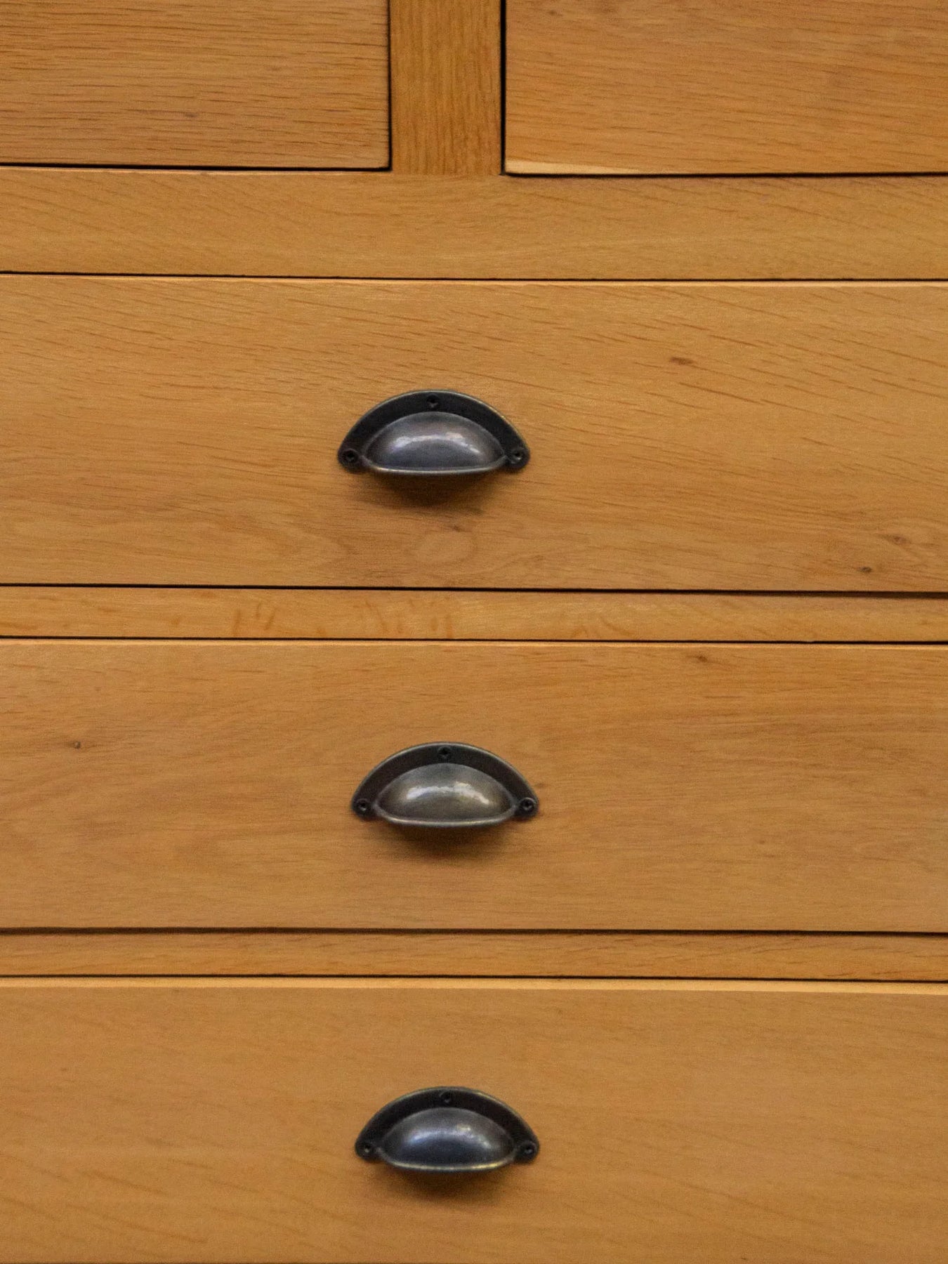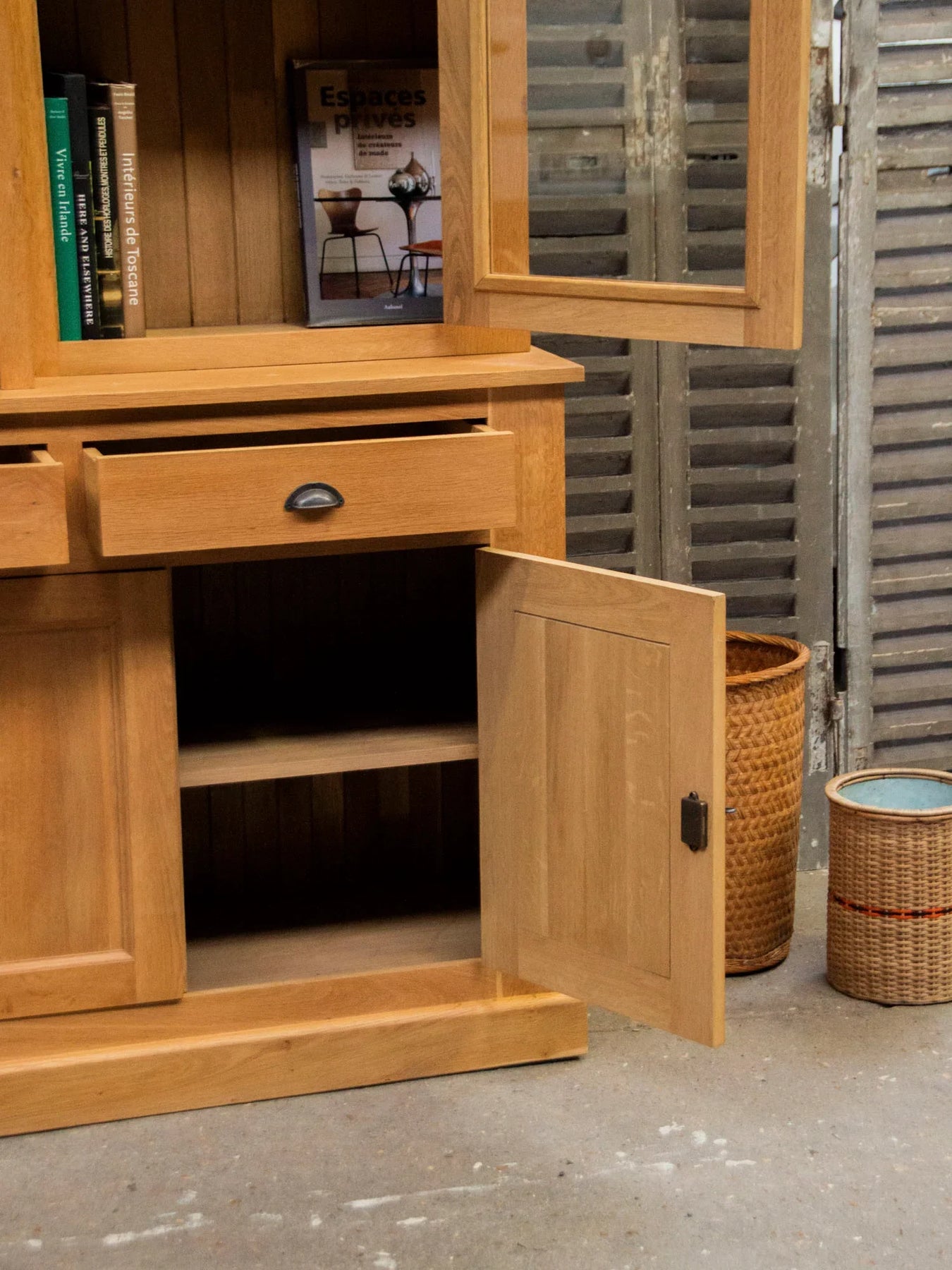 Découvrez ce très grand buffet en chêne massif clair, aux lignes généreuses et à l'allure contemporaine empreinte d'authenticité. Quatre portes vitrées, grandes et petites, dévoilent étagères de présentation tandis que huit tiroirs offrent un rangement organisé pour la vaisselle et le linge de maison. Les poignées demi-lune en métal et le plein-pied lui confèrent une élégance sobre et une belle stabilité, et un passage pour câbles le rend pratique pour installer un éclairage ou un appareil multimédia. Idéal pour animer une salle à manger ou structurer un séjour.
