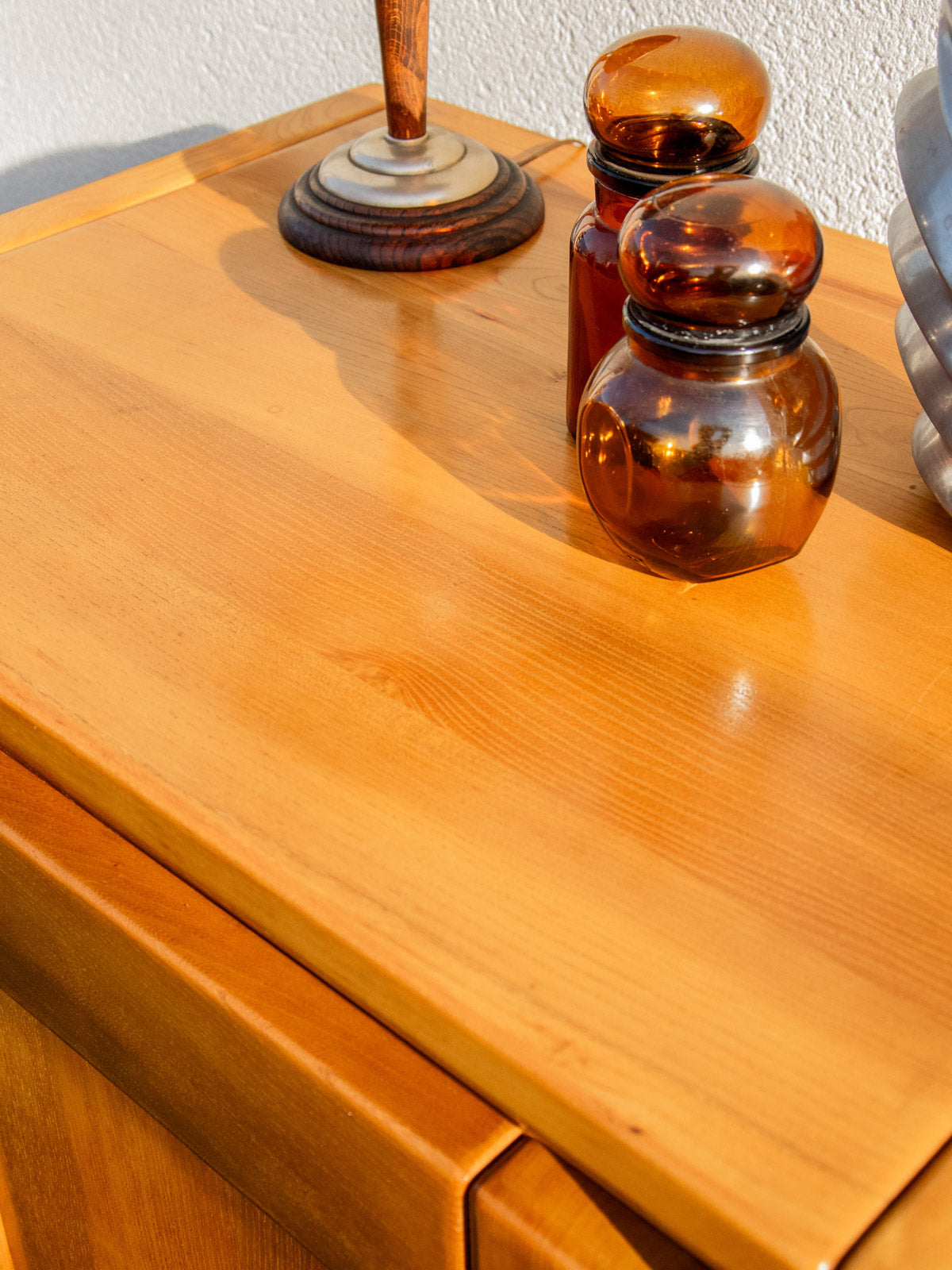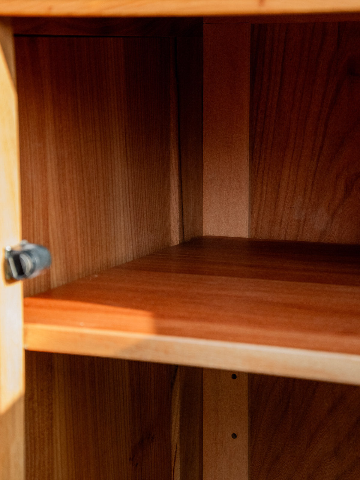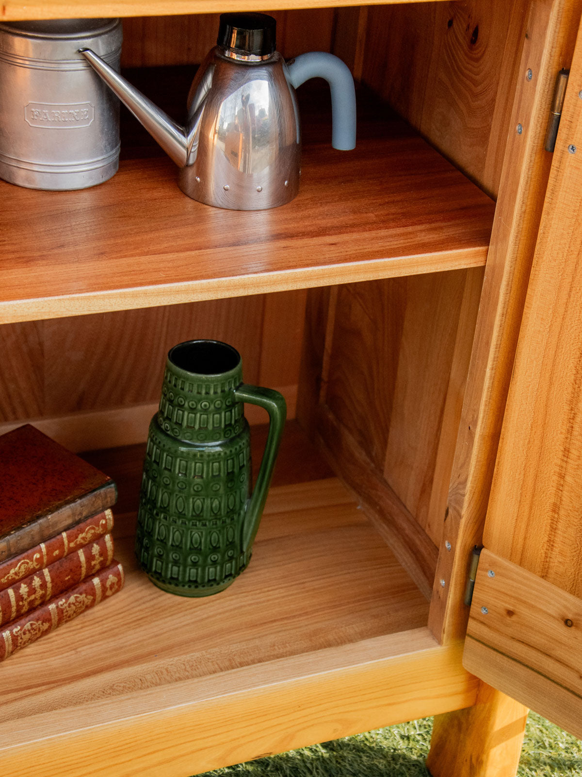 Sublimez votre intérieur avec ce buffet confiturier brutaliste attribué à la Maison Regain, réalisé en orme massif, aux lignes franches et à l'allure résolument architecturée. Solide et en très bon état, ses étagères profondes offrent un rangement généreux pour vaisselle, bocaux ou textiles, tandis qu'une tablette haute accueille objets volumineux. Idéal pour la cuisine, la salle à manger ou l'entrée, il apporte une présence chaleureuse et une matière authentique, prête à structurer un intérieur sobre et inspirant.