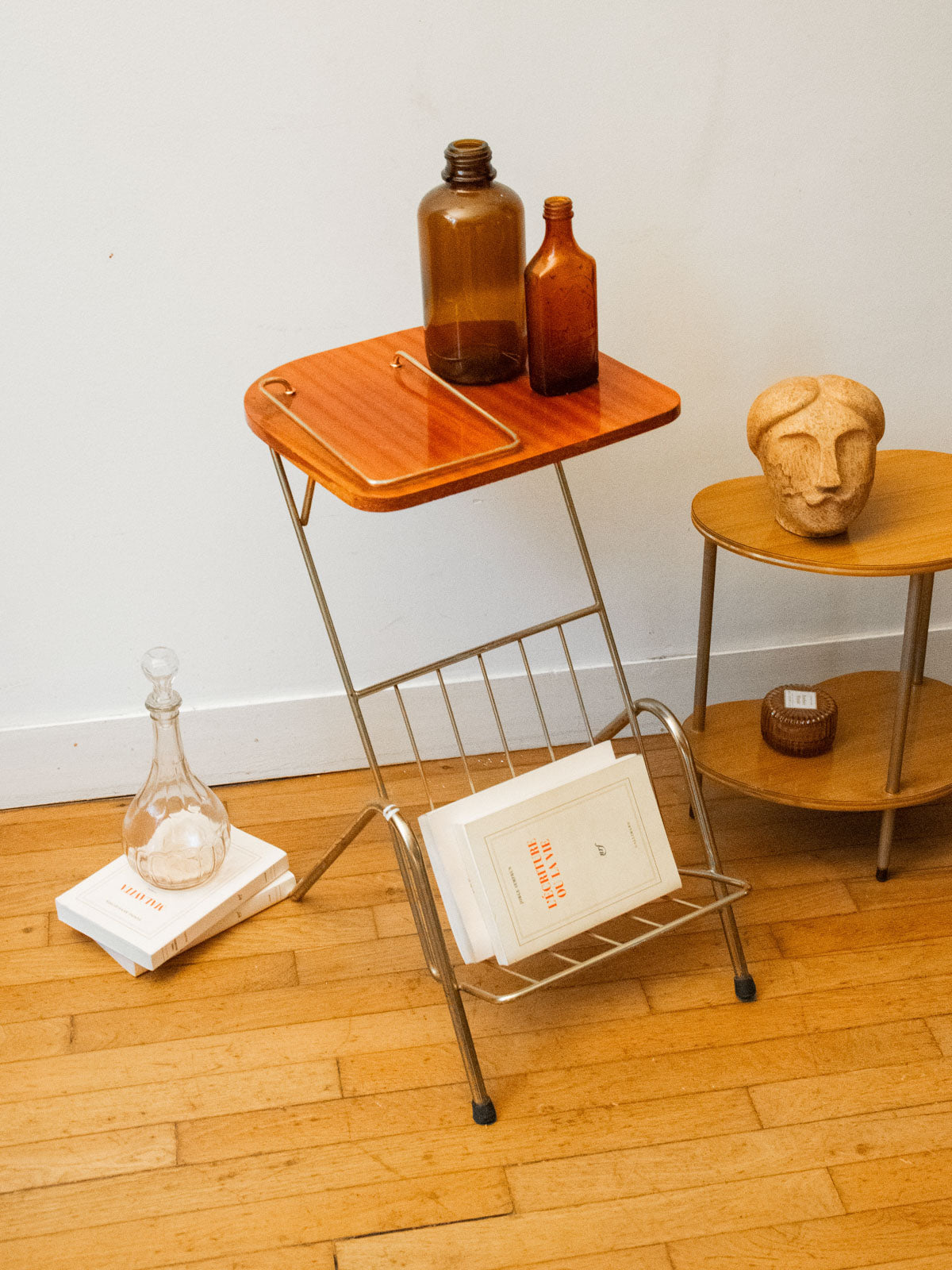 Apportez une touche d'élégance avec cette haute table d'appoint, pensée pour accueillir documents et revues. Sa structure en métal doré, aux lignes fines, joue sur des proportions élancées qui la rendent idéale près d'un fauteuil ou dans une entrée étroite. Le plateau supérieur et l'étagère basse offrent un rangement accessible et ordonné, sans encombrer l'espace. Son allure sobre et lumineuse crée une ambiance chaleureuse et contemporaine.