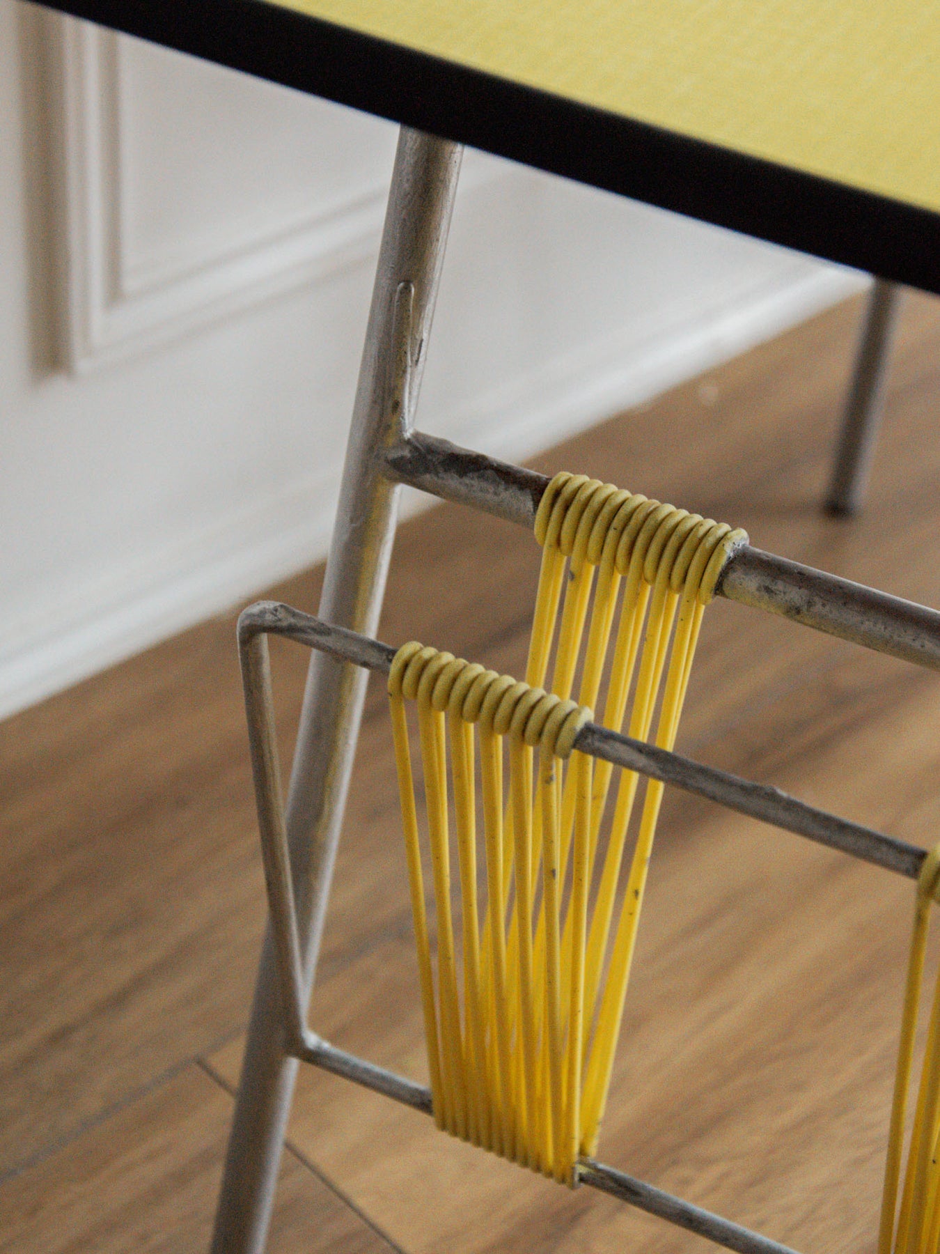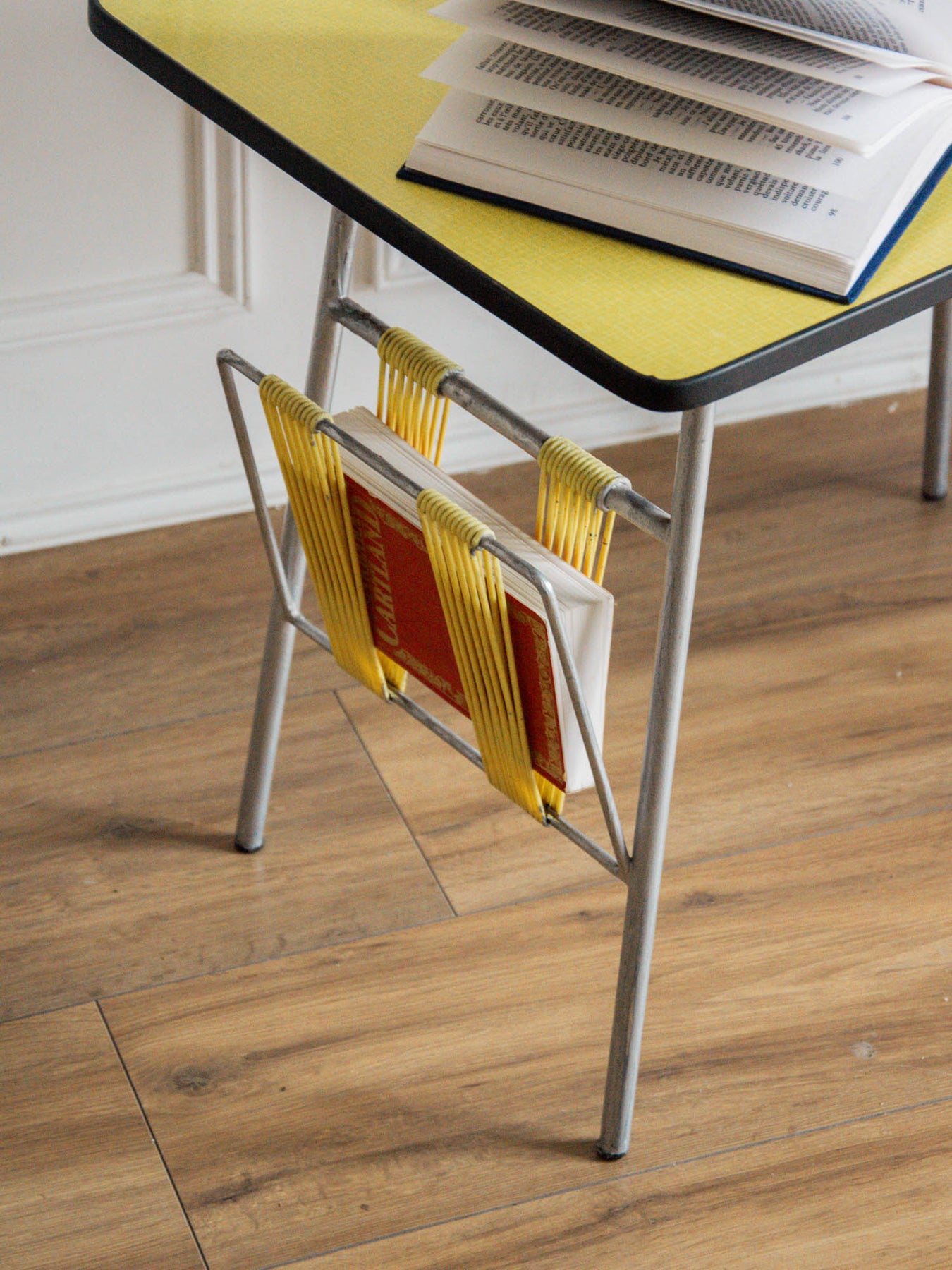 Découvrez la table d'appoint en Formica jaune, un véritable clin d'œil aux années 60. Son design rétro apporte une touche éclatante à votre intérieur, tout en offrant une fonctionnalité moderne grâce à son porte-revue intégré en scoubidou. Parfaite pour vos moments de lecture ou pour apporter une note de couleur dans votre salon, cette table d'appoint allie esthétique et praticité. Un incontournable pour les amateurs de décoration vintage !