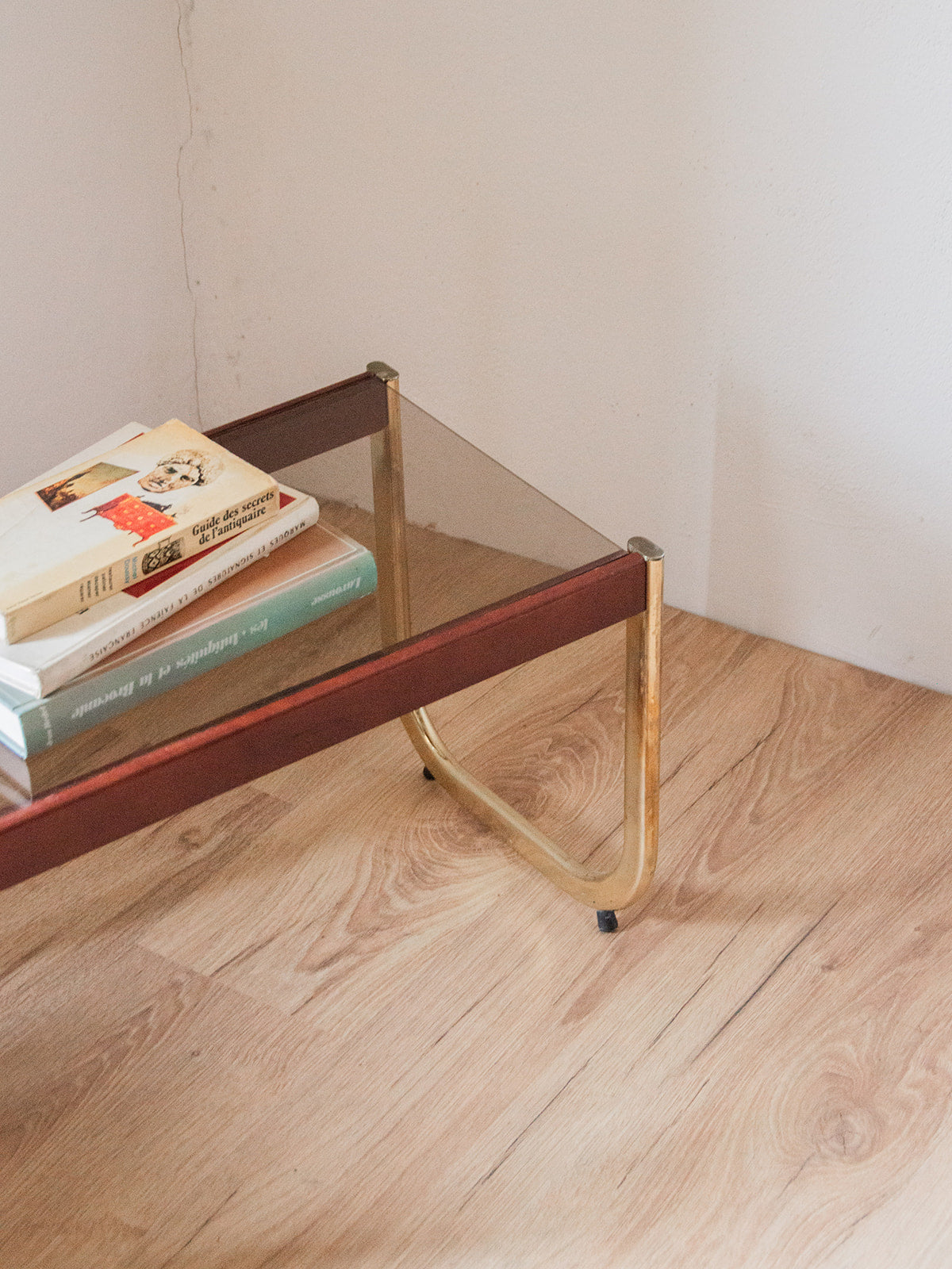 Ajoutez une touche d'élégance à votre intérieur avec cette petite table d'appoint au plateau en verre raffiné, en bois rouge et sublimée par un piètement en métal doré. Parfaite pour orner votre salon ou votre chambre, elle allie design moderne et fonctionnalité. Son allure délicate et ses matériaux de qualité font de cette table un accessoire incontournable pour toute décoration contemporaine. Idéale pour mettre en valeur vos objets préférés ou comme support pour vos boissons lors de vos moments de détente.