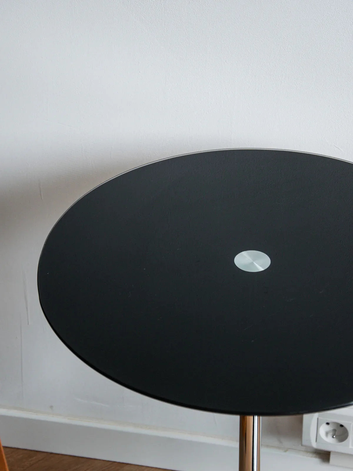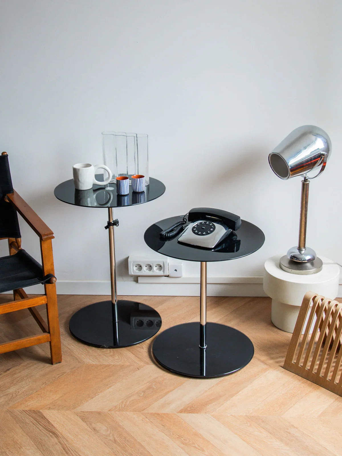 Apportez une touche moderne à votre intérieur avec cette table d'appoint réglable en hauteur, ronde et en verre trempé noir. Son pied en métal assure à la fois élégance et robustesse, tandis que son design modulable et réglable en hauteur permet de l'adapter à toutes vos envies et besoins. Idéale pour compléter votre salon ou votre espace de travail, cette table allie fonctionnalité et style contemporain. Ne manquez pas l'opportunité de rehausser votre décoration avec cet accessoire tendance! Vendue à l'unité, deux quantités sont disponibles.