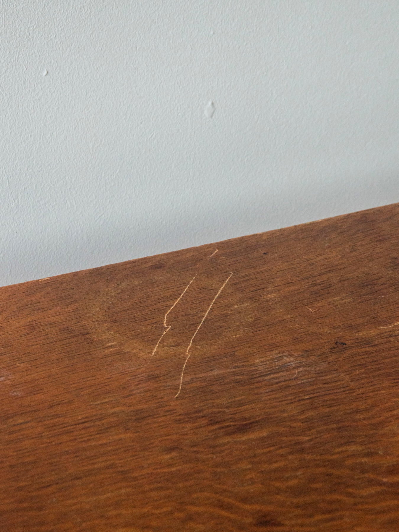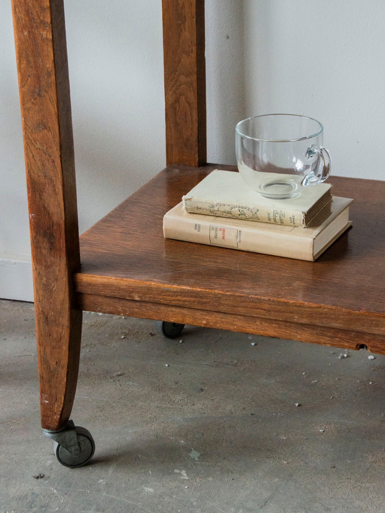Découvrez cette desserte en chêne à roulettes, habillée d'un bois foncé aux lignes simples et chaleureuses. Sa configuration avec un plateau supérieur et une étagère intermédiaire la rend idéale comme table d'appoint, desserte de service ou meuble mobile pour la cuisine et le salon, offrant un bel équilibre entre capacité et proportions. Le chêne massif apporte authenticité et chaleur, tandis que les roulettes ajoutent praticité et facilité de déplacement pour une ambiance élégante et conviviale. Quelques marques d'usage qui font son authenticité.