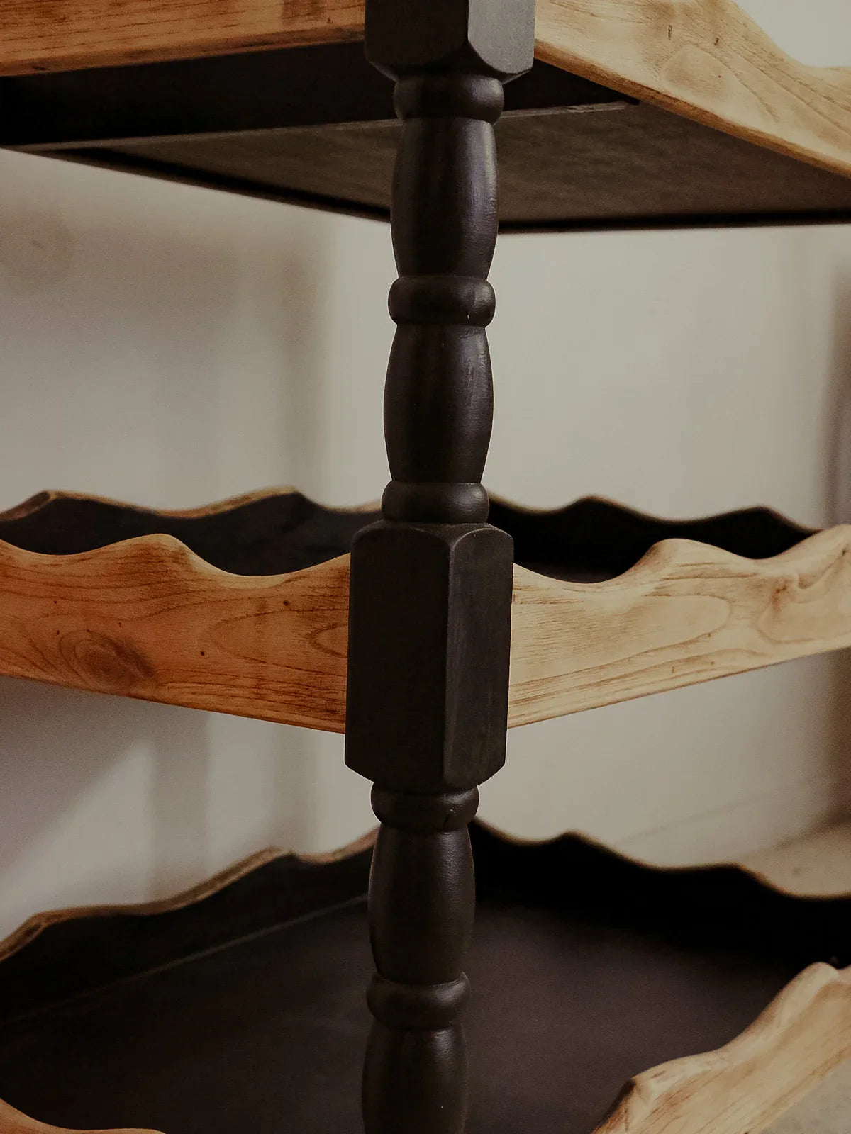 Adoptez cette desserte en chêne au contraste noir et bois clair. Son format compact et ses quatre roulettes fonctionnelles facilitent les déplacements entre cuisine et salle à manger tout en offrant une surface pratique pour poser vaisselle, plante ou cafetière. La chaleur du chêne associée à la teinte noire crée une ambiance élégante et conviviale, parfaite pour un coin café ou un service d'appoint.