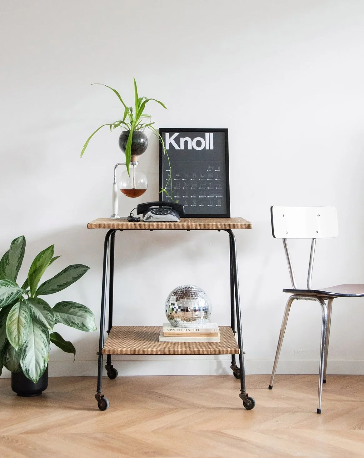 La desserte, aussi appelée table servante, voit le jour au XVIIème siècle. À l’époque, elle est utilisée pour servir et desservir les plats et la vaisselle aux cours des repas. Munie de roulettes, elle se transfère d’un endroit à l’autre sans effort et permet de débarrasser la table plus rapidement en réduisant le nombre de trajets entre la salle à manger et la cuisine. C’est par sa grande utilité que la desserte est devenue un élément important du mobilier, servant aussi à servir le thé ou le petit-déjeuner. Cette petite table d’appoint mobile a su trouver au fil des siècles une place de choix dans notre intérieur.