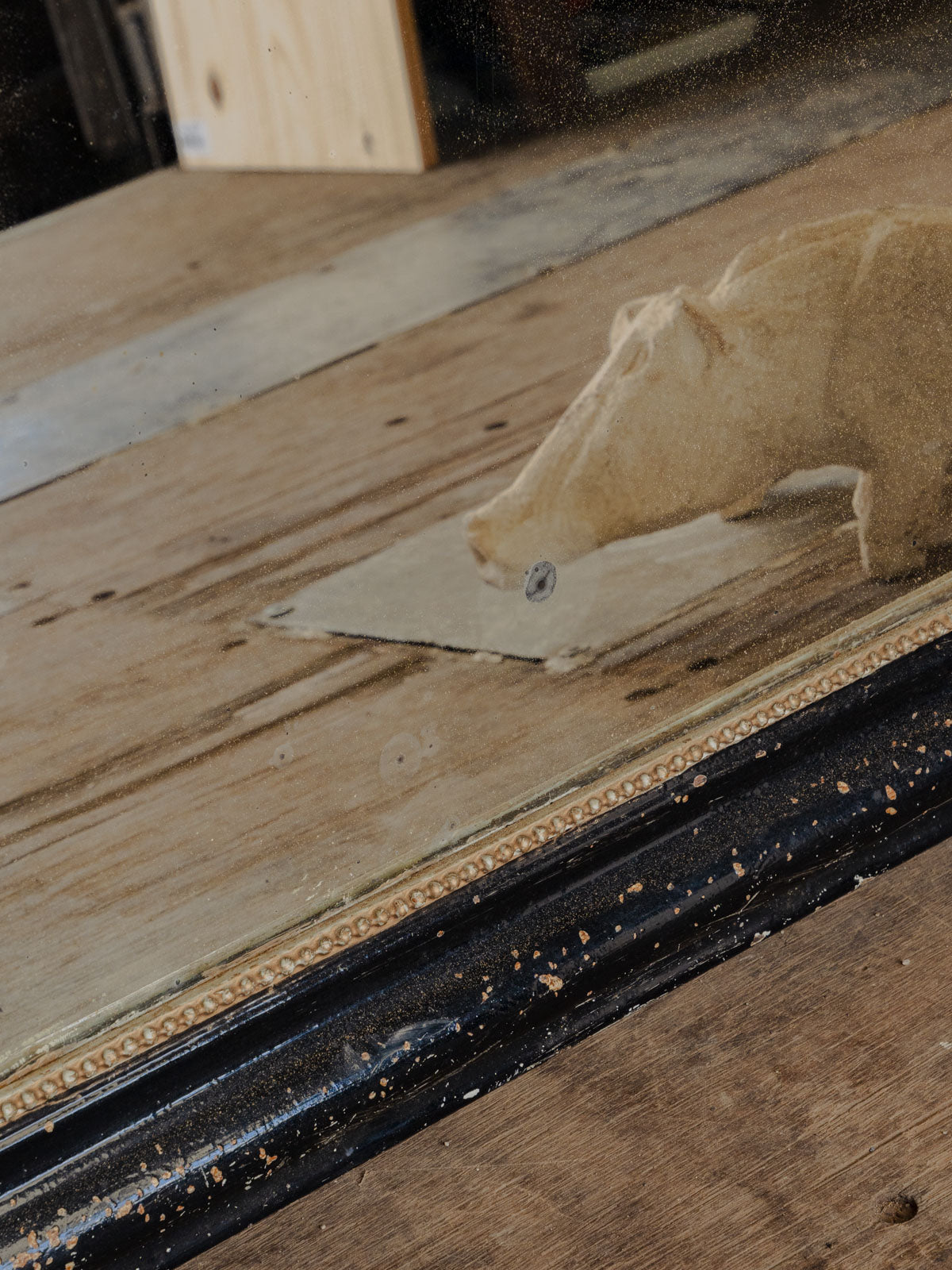 Sublimez votre intérieur avec ce miroir ancien au cadre arrondi en bois noir, rehaussé d'un cerclage doré qui dessine un élégant contraste. Son format généreux s'adapte à une grande entrée ou un salon et multiplie la lumière pour ouvrir l'espace, tandis que la patine du bois et le galbe du cadre racontent une histoire de savoir‑faire. Idéal pour apporter une touche classique et chaleureuse. Quelques traces du temps présentes.