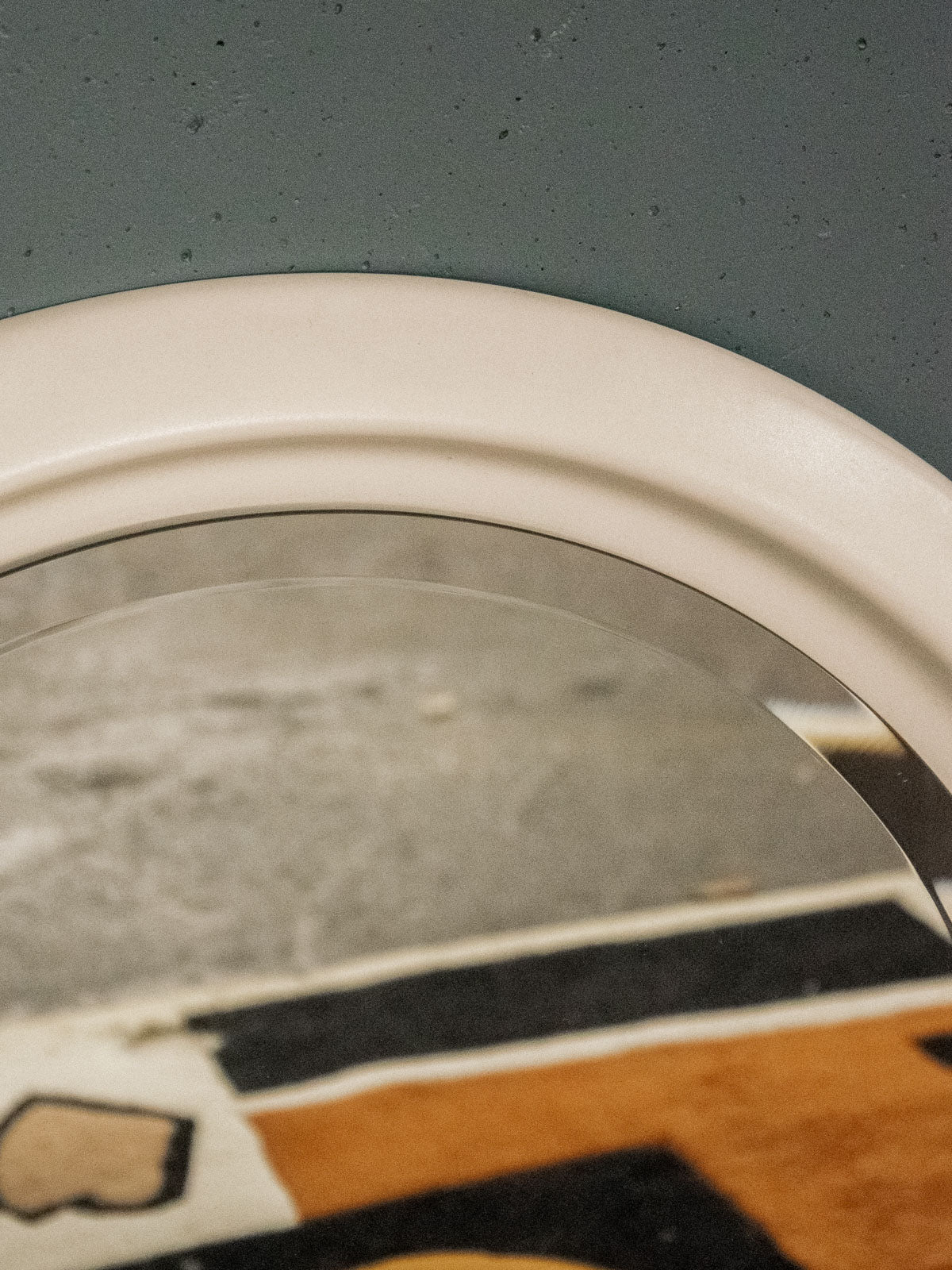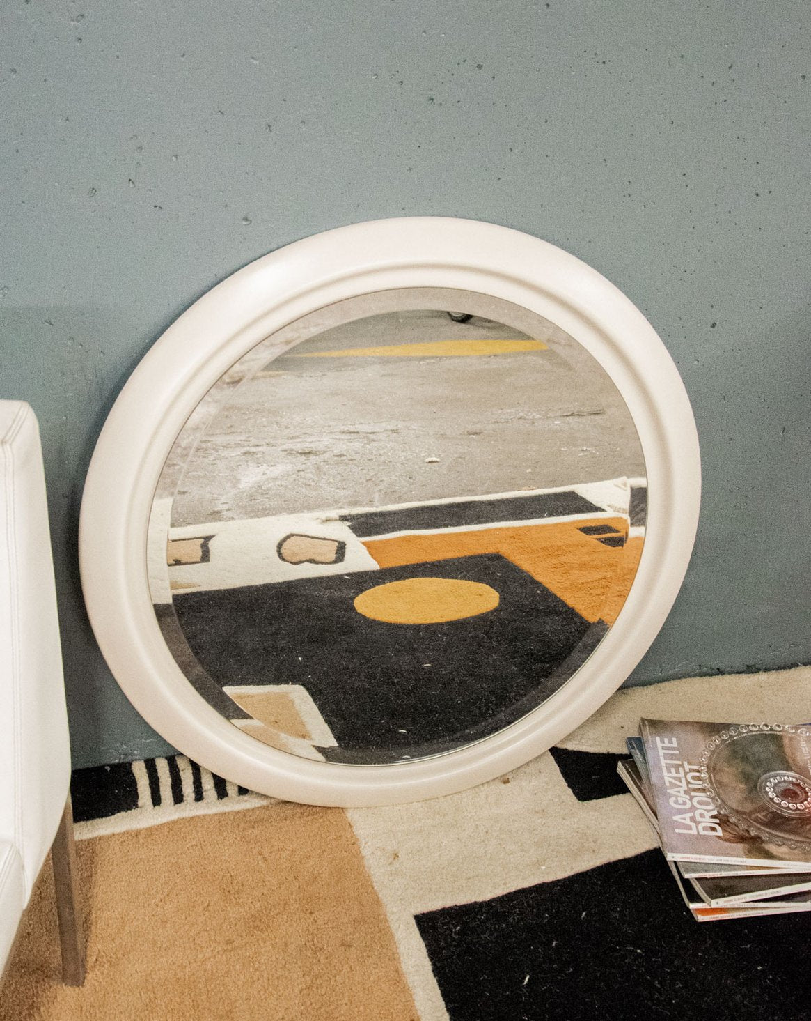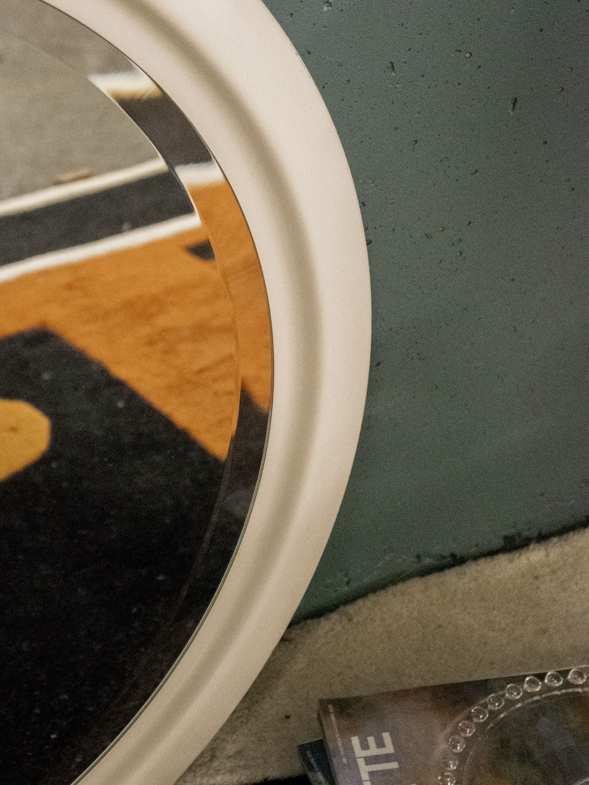 Adoptez ce grand miroir circulaire biseauté des années 80 au cadre en céramique blanche, dont l'esthétique évoque l'esprit d'un hublot. Son format généreux crée une ouverture lumineuse et apporte de la profondeur à un salon, une entrée ou une salle de bains, tandis que la finition en céramique apporte une touche raffinée et sculpturale. Le biseau du miroir capte la lumière et structure l'espace, invitant à une décoration à la fois contemporaine et nostalgique.