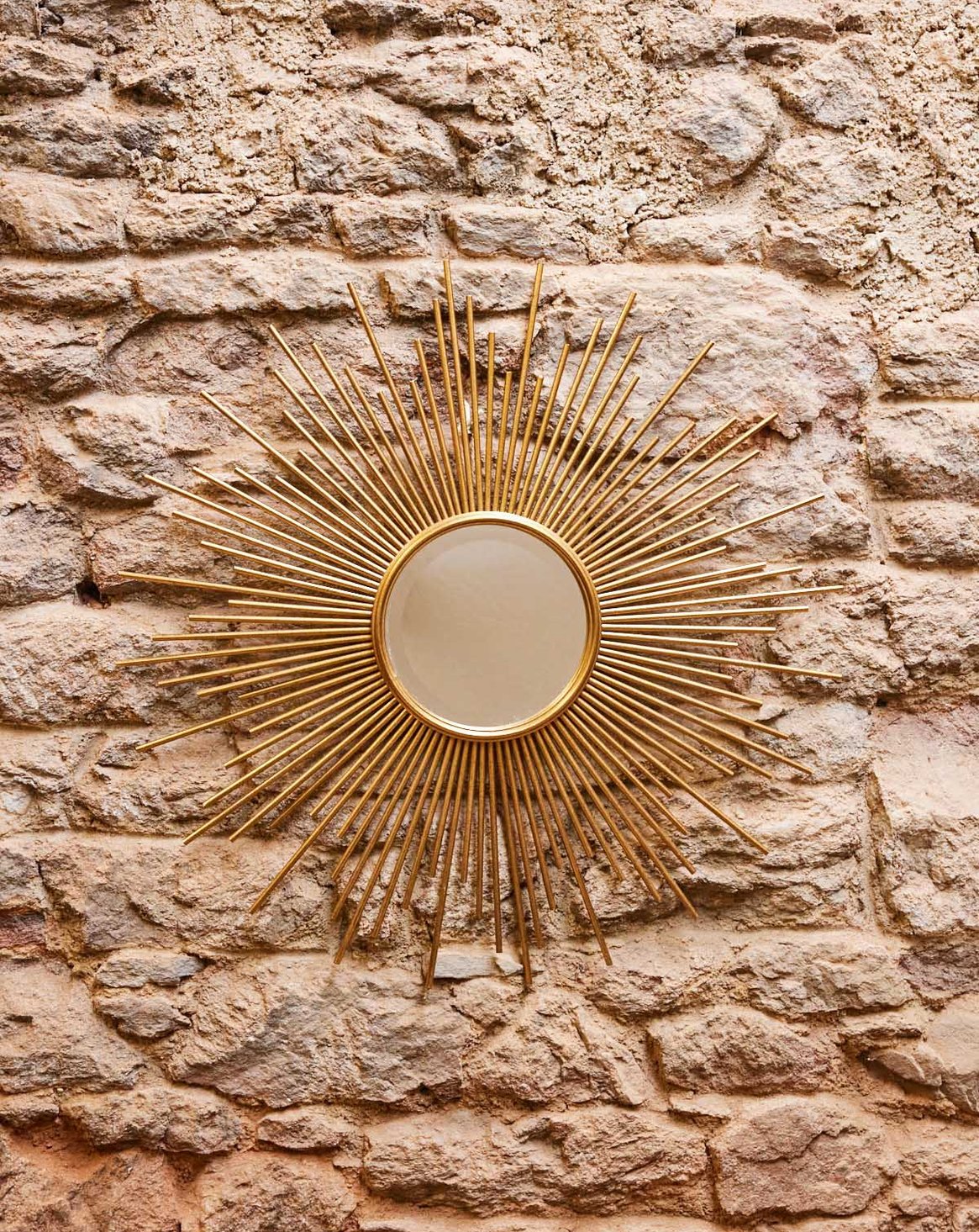 Sublimez votre intérieur avec ce grand miroir soleil en laiton doré, où le travail du métal souligne un style raffiné et accueillant. Le verre biseauté capte et diffuse la lumière, agrandissant visuellement une entrée ou un salon tout en apportant une note sculpturale. Ses proportions généreuses en font un point focal harmonieux au‑dessus d'une console ou d'une cheminée, invitant à une ambiance lumineuse et chaleureuse. La finition dorée apporte une chaleur subtile et s'accorde avec des matériaux naturels ou des accents contemporains.