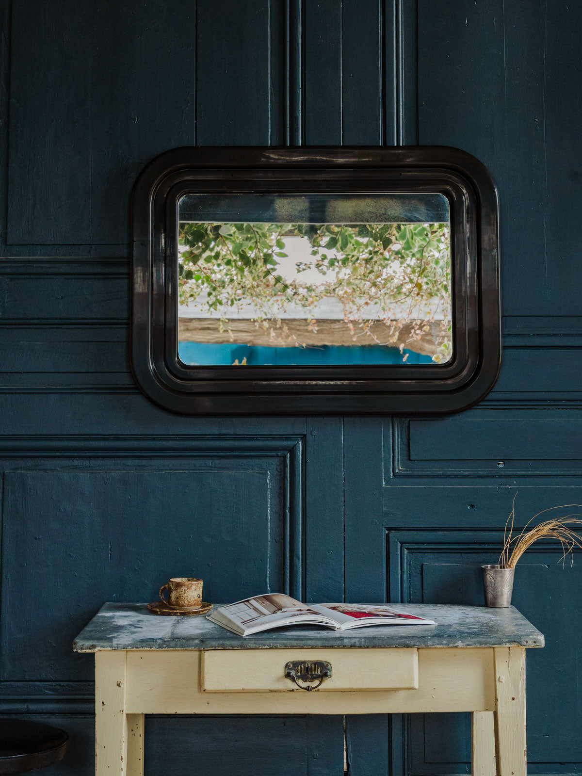 Sublimez votre intérieur avec ce miroir vintage au contour arrondi en plastique noir, qui apporte une touche graphique et rétro tout en restant discret. Sa silhouette et ses proportions permettent de l'installer dans une entrée, une salle de bains ou au‑dessus d'une console pour créer un point focal lumineux sans alourdir la pièce. Le cadre noir souligne les lignes douces et contribue à une ambiance chaleureuse et contemporaine. Quelques traces du temps présentes.