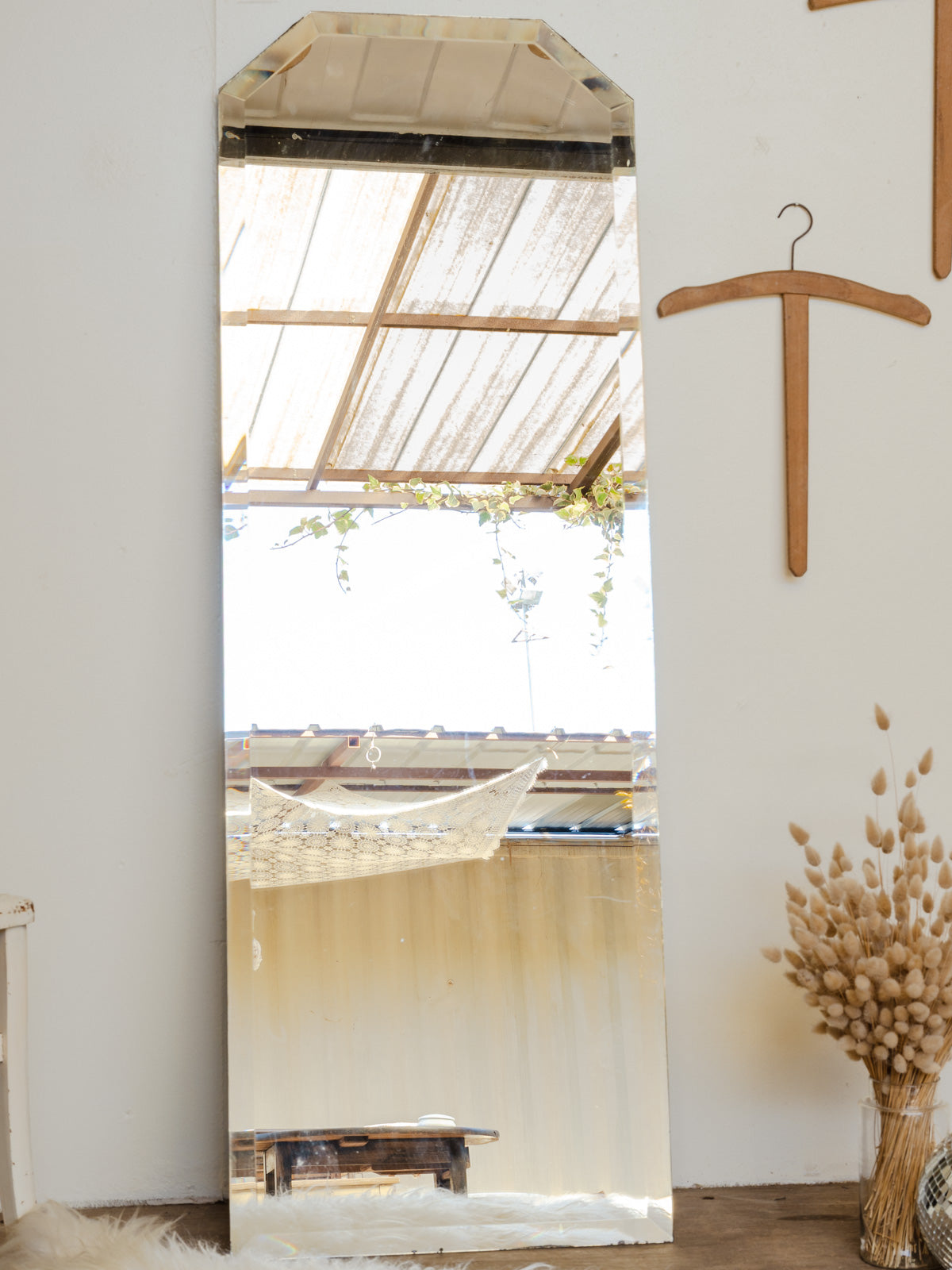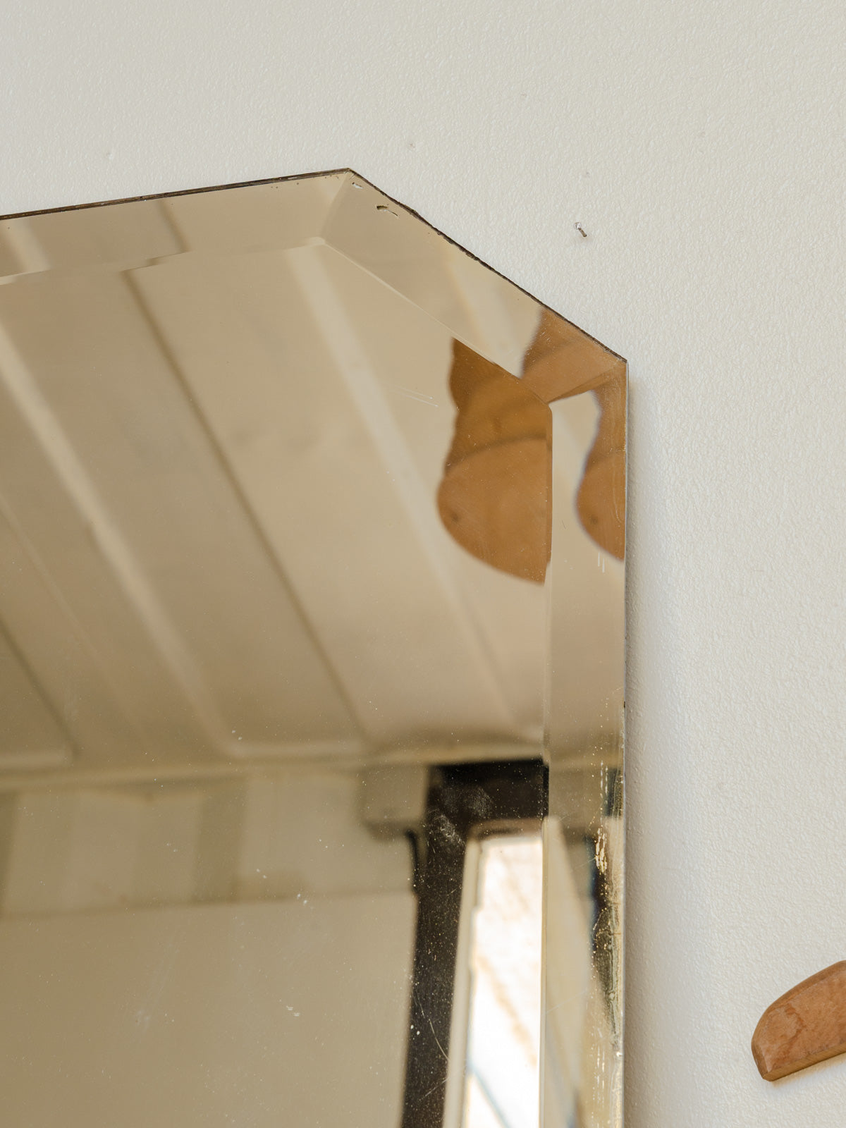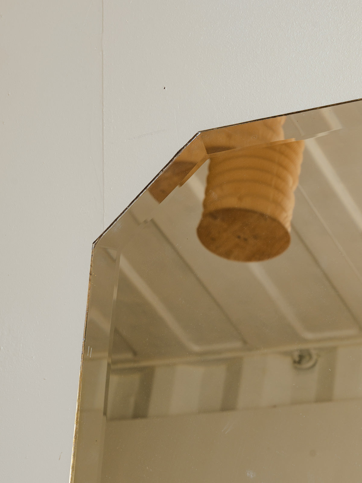 Sublimez votre intérieur avec ce grand miroir biseauté des années 1920, conçu pour être posé contre un mur et jouer sur la profondeur et la lumière. Le verre à biseau, amplifié par une patine subtile, évoque une élégance rétro qui s'intègre aussi bien dans une entrée, un séjour ou une chambre qu'au-dessus d'une cheminée. Son style ancien crée une ambiance chaleureuse et raffinée, invitant à la mise en scène décorative. Légères traces du temps présentes.