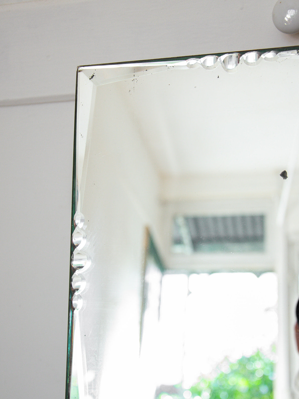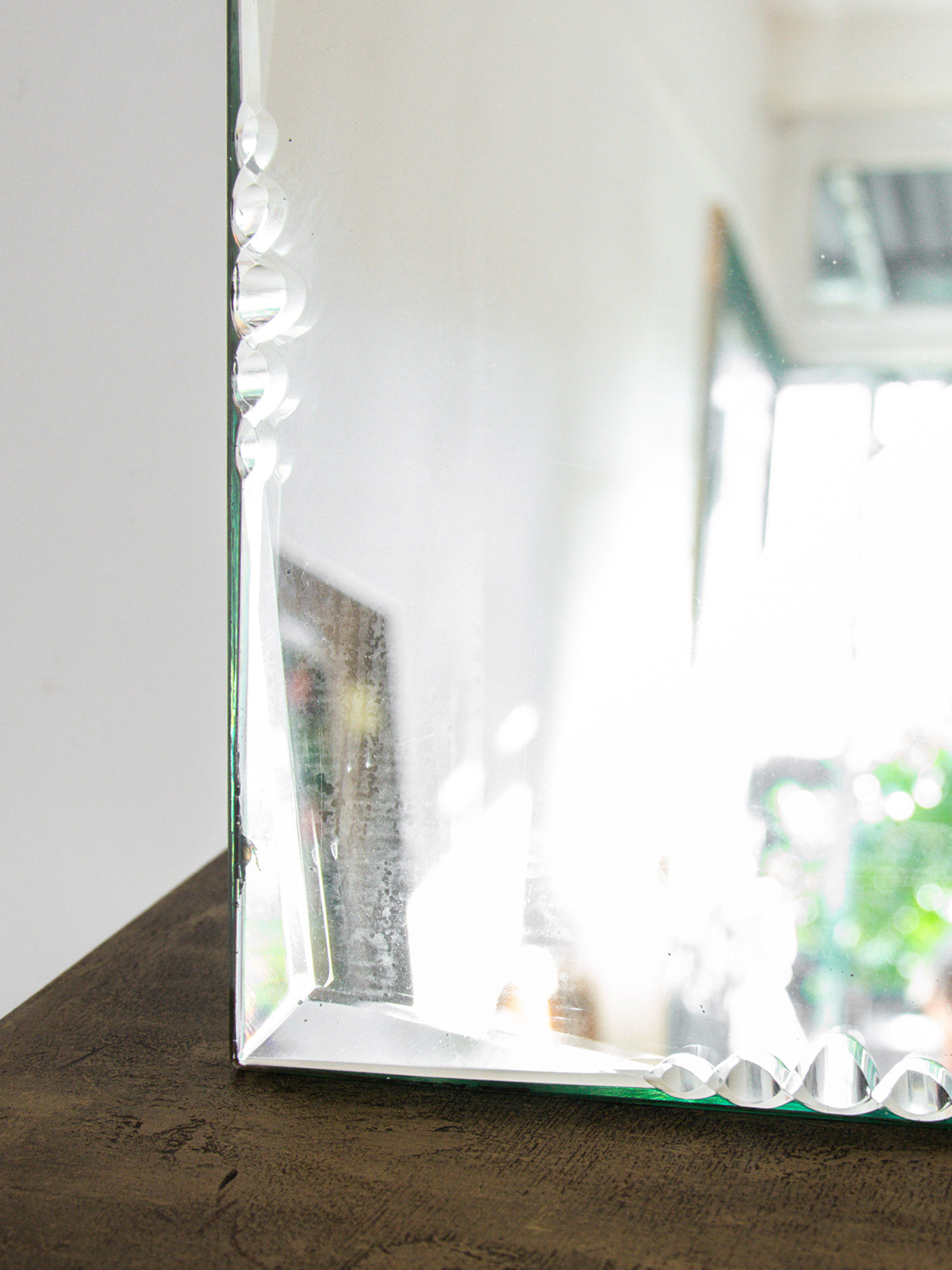 Apportez une touche d'élégance à votre intérieur avec ce miroir biseauté à poser. Il se distingue par son style épuré et ses légers piqûres qui lui confèrent un charme unique. Parfait pour illuminer un meuble ou sublimer un coin de votre maison.