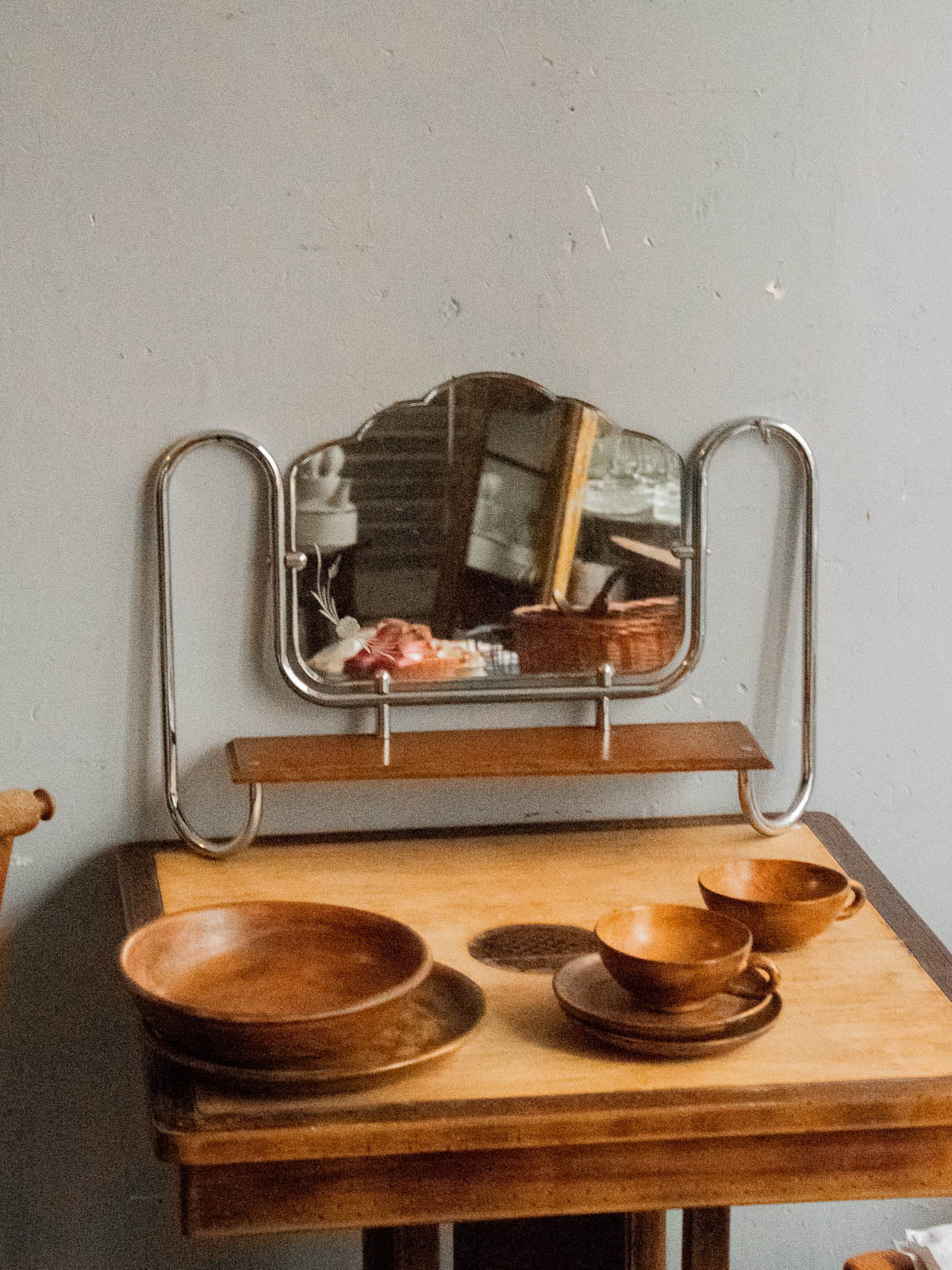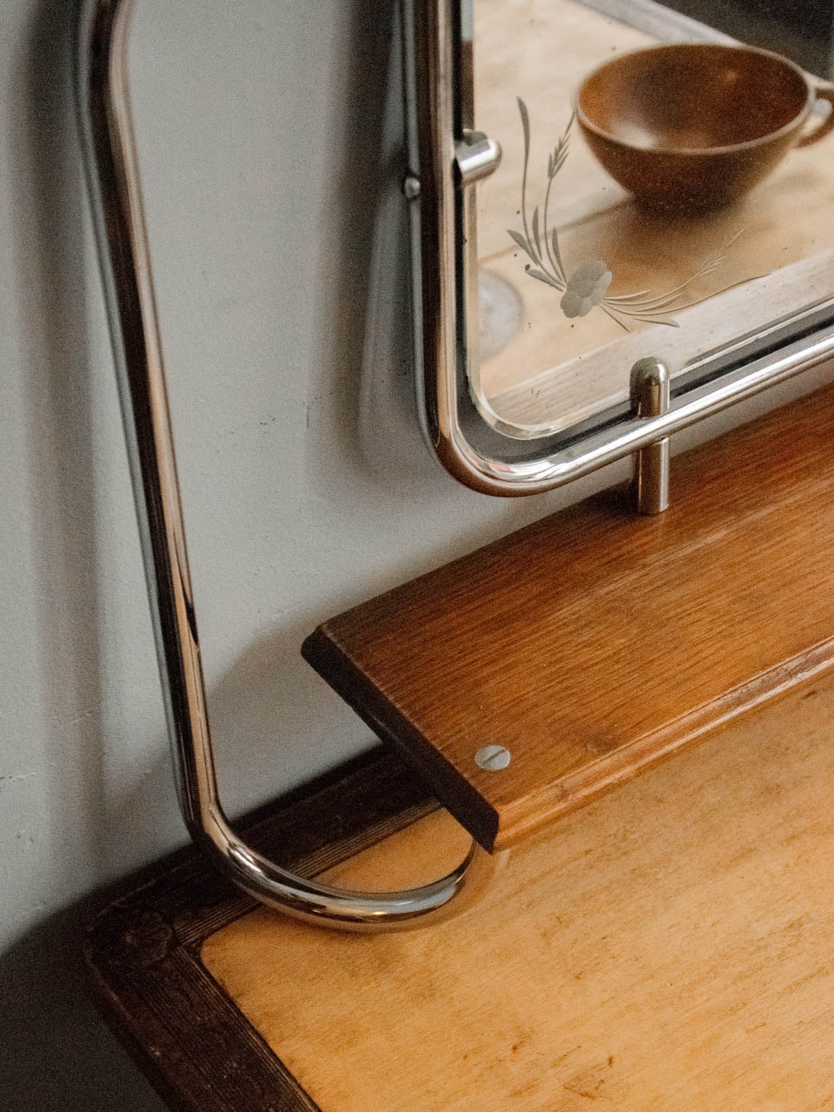 Invitez une touche fonctionnelle et graphique avec cette étagère murale à structure tubulaire en métal associant une étagère en bois et un petit miroir biseauté. Compacte et étroite, elle offre un rangement d'appoint et un crochet discret pour suspendre clés ou accessoires, parfaitement adaptée aux entrées et salles de bains aux espaces restreints. Le contraste métal-bois souligne une élégance sobre et contemporaine, idéale pour instaurer une ambiance chaleureuse et parfaitement organisée.