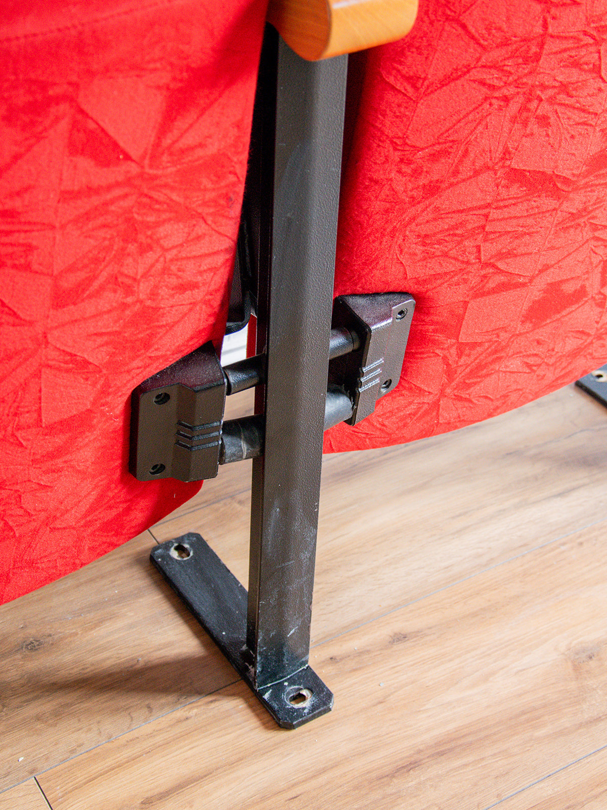 Découvrez cette rare pièce vintage composée de trois fauteuils à bascule solidement assemblés. Structure en bois et métal, avec un revêtement en tissu rouge typique des années 70. Ces fauteuils proviennent d’un ancien théâtre parisien, ajoutant une belle histoire à leur charme. Le tissu est légèrement froissé, mais l’ensemble reste stable et fonctionnel. Un objet unique au look rétro, parfait pour un intérieur audacieux ou une salle de projection.