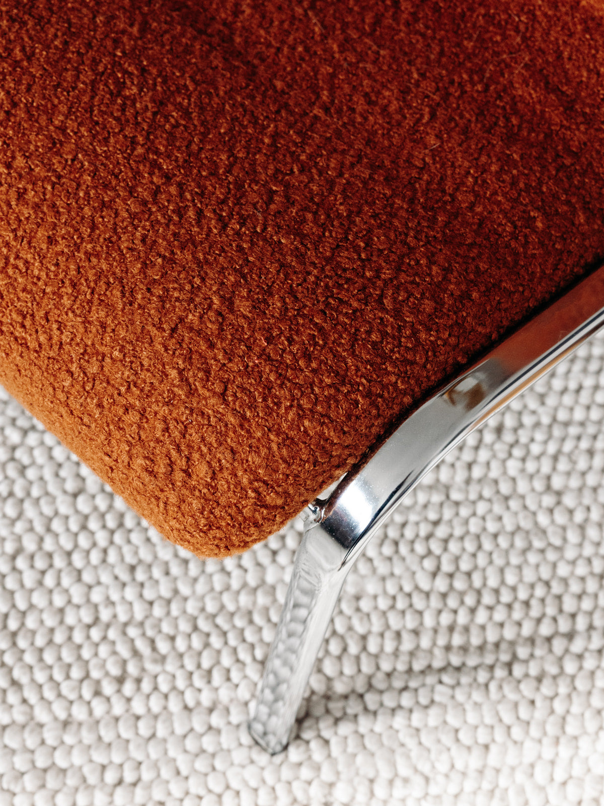 Découvrez notre fauteuil marron en tissu bouclette, une pièce au design audacieux et chaleureux. Retapissé avec soin, il allie confort et esthétisme, tandis que sa structure en métal chromé apporte une touche moderne et sophistiquée. Il s'intègre parfaitement dans tout type d'intérieur, idéal pour créer un coin cocooning stylé.