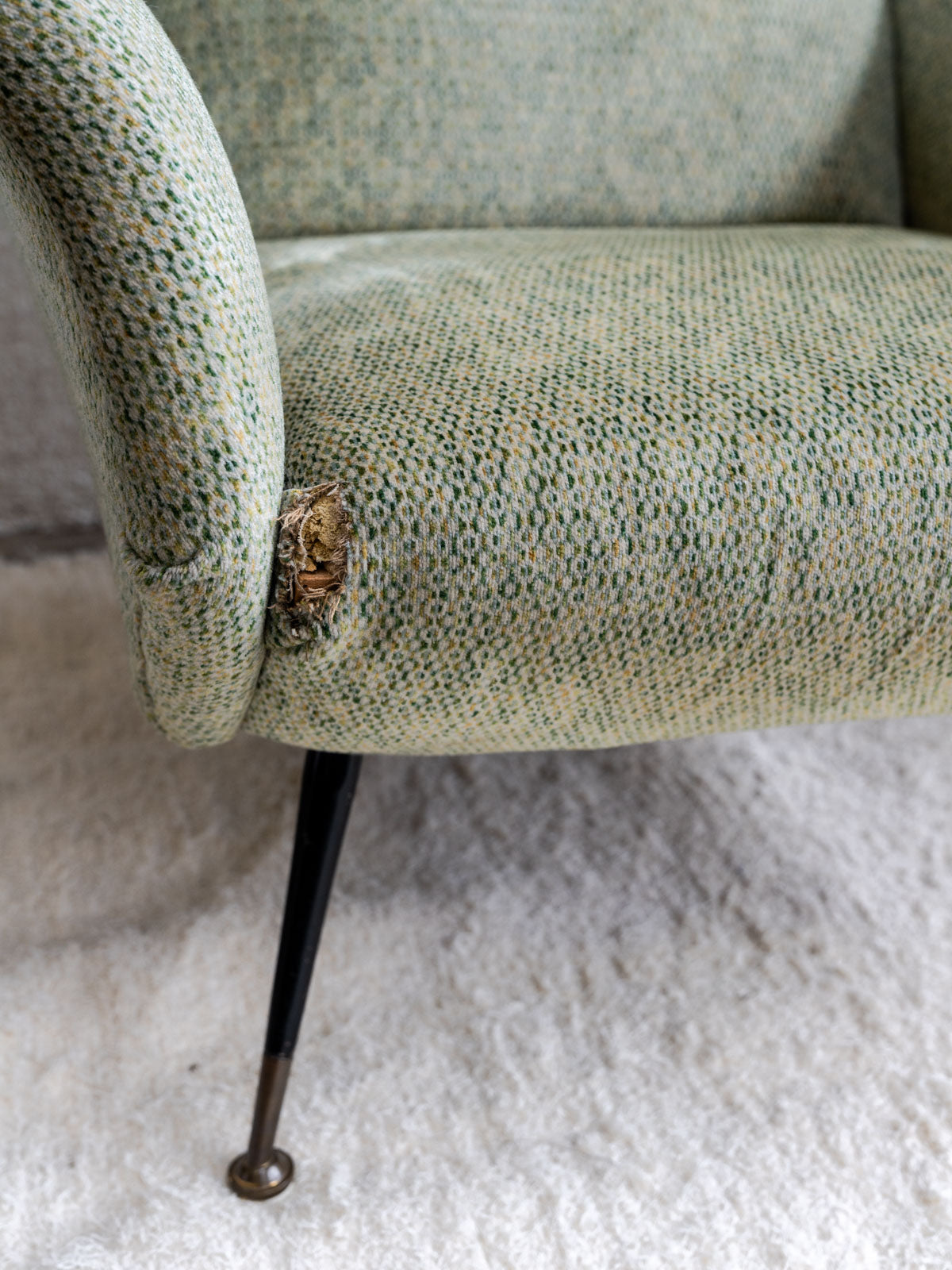 Adoptez ce fauteuil italien au revêtement vert moucheté, qui reprend l'esprit épuré et généreux de Marco Zanuso. Sa silhouette moderne et ses courbes enveloppantes invitent à la détente, tandis que son assise généreuse et son dossier accueillant promettent un confort durable. Conçu pour s'intégrer aussi bien dans un salon contemporain que dans un coin lecture rétro-chic, il apporte une touche de caractère grâce à son tissu texturé et sa structure affirmée. Il crée une atmosphère chaleureuse et élégante, idéale pour les intérieurs qui mêlent design et convivialité.