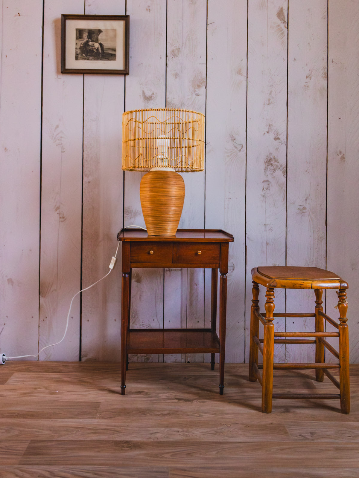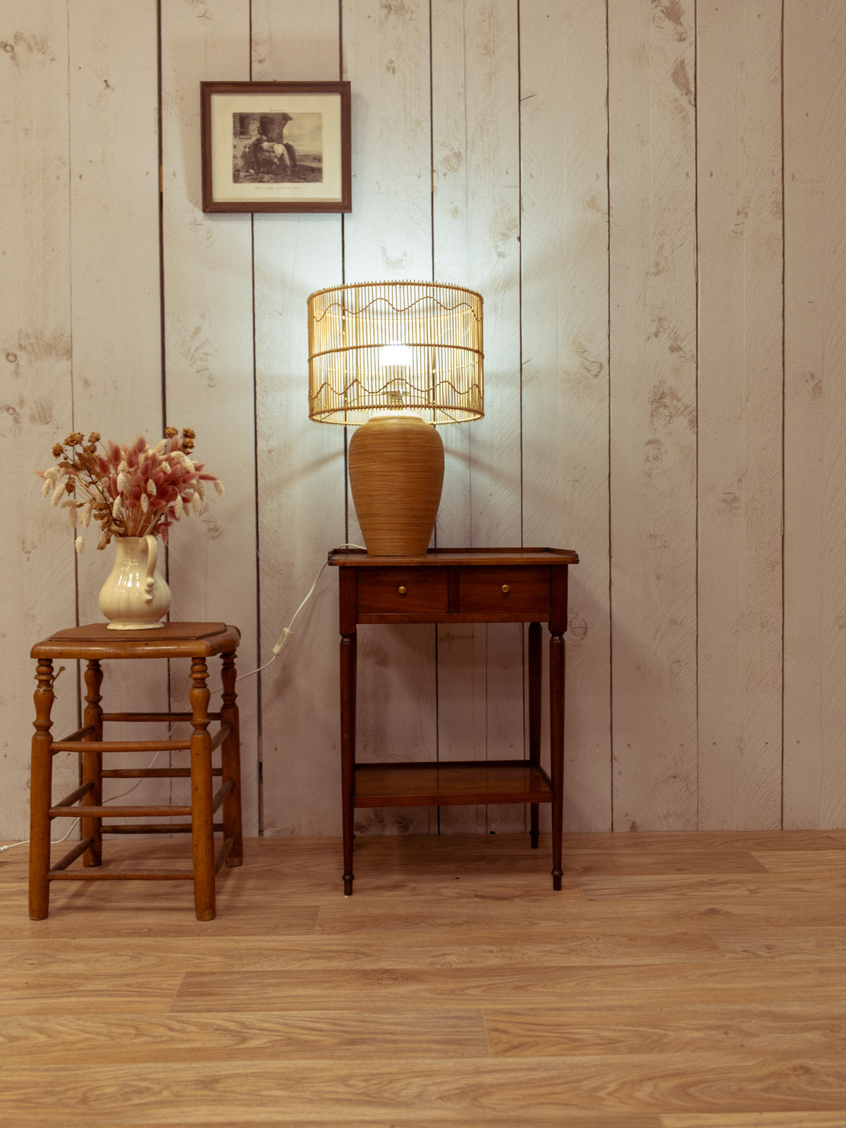 Découvrez une lampe en rotin et céramique, au mariage délicat du naturel et du façonné, qui apporte une touche d'élégance discrète à votre intérieur. Sa silhouette aux proportions mesurées s'adapte aussi bien à une table d'appoint qu'à un coin lecture, diffusant une lumière douce et enveloppante propice aux soirées feutrées. Le cordon d'alimentation est neuf pour une installation sereine, et la pièce installe immédiatement une ambiance bohème-chic et raffinée.