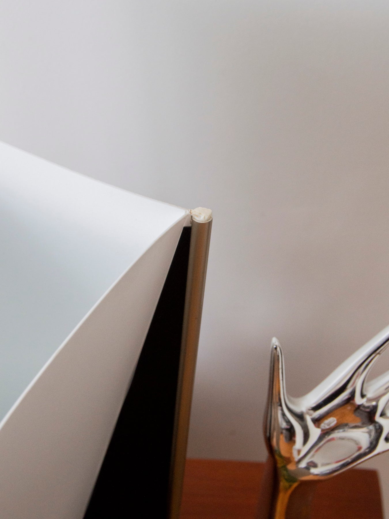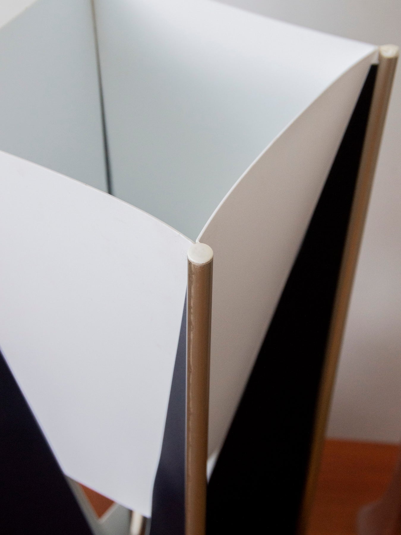 Découvrez la lampe de table STILE, dessinée par Samuel Parker pour Parker Knoll dans les années 80 et fabriquée en Italie, dont la silhouette généreuse et singulière affirme un style rétro contemporain. Sa structure en aluminium associée à un abat-jour bicolore en Opalflex diffuse une lumière douce et chaleureuse, idéale pour un salon, un bureau ou une chambre. L'étiquette d'origine sur le côté atteste de son authenticité et elle fonctionne sur petit culot à vis. Un petit manque sur la pastille blanche en haut d’un pied.