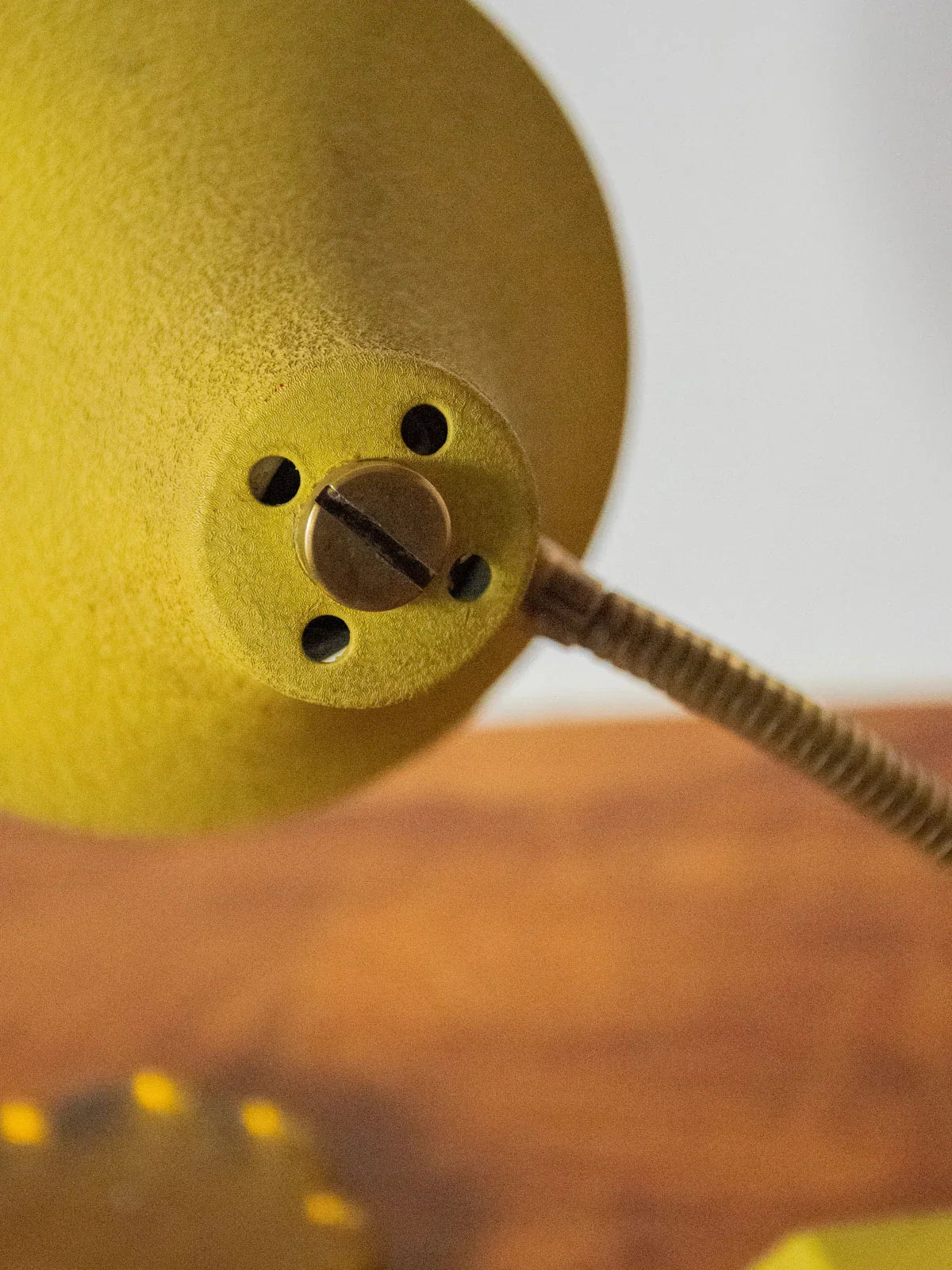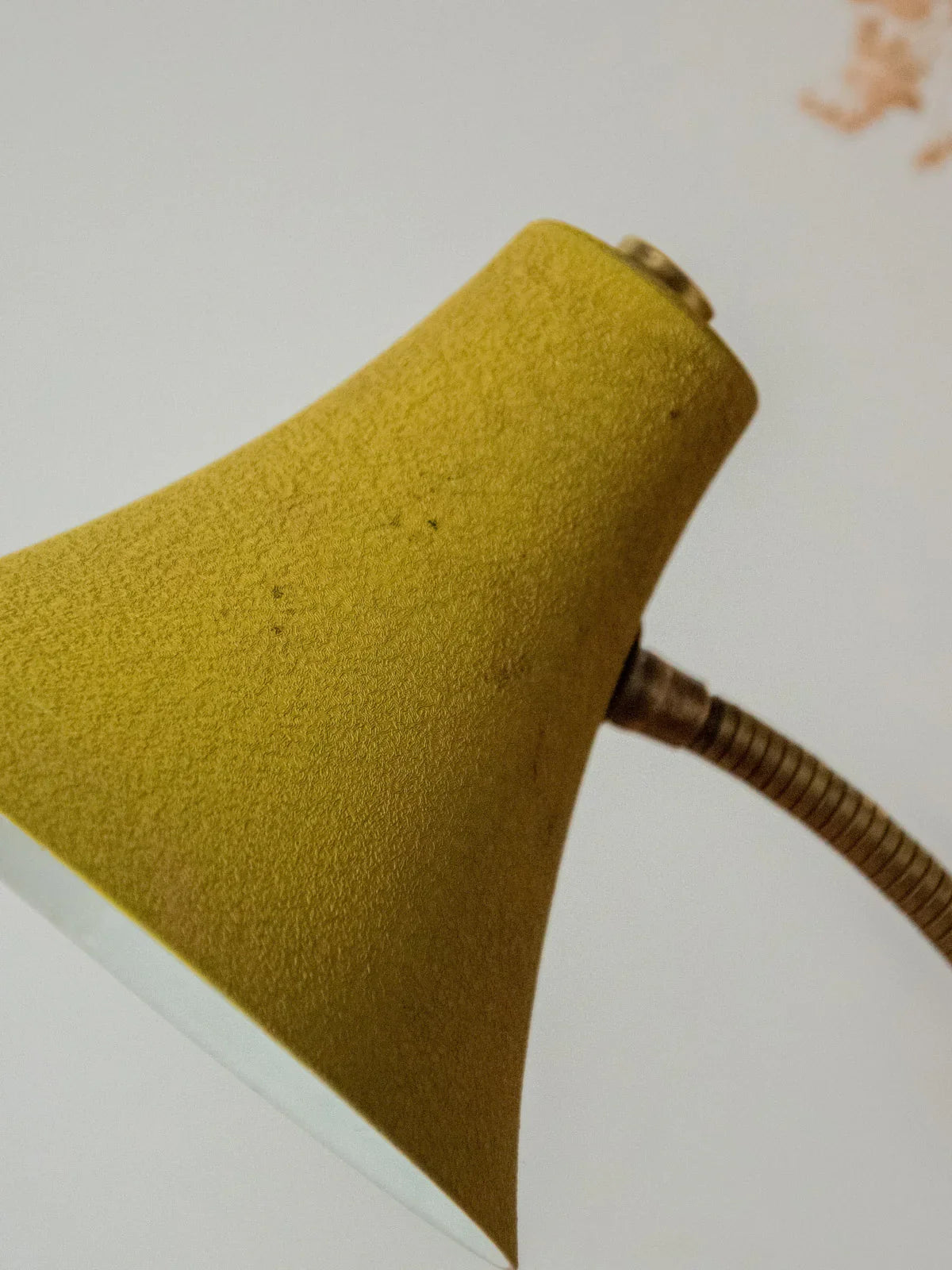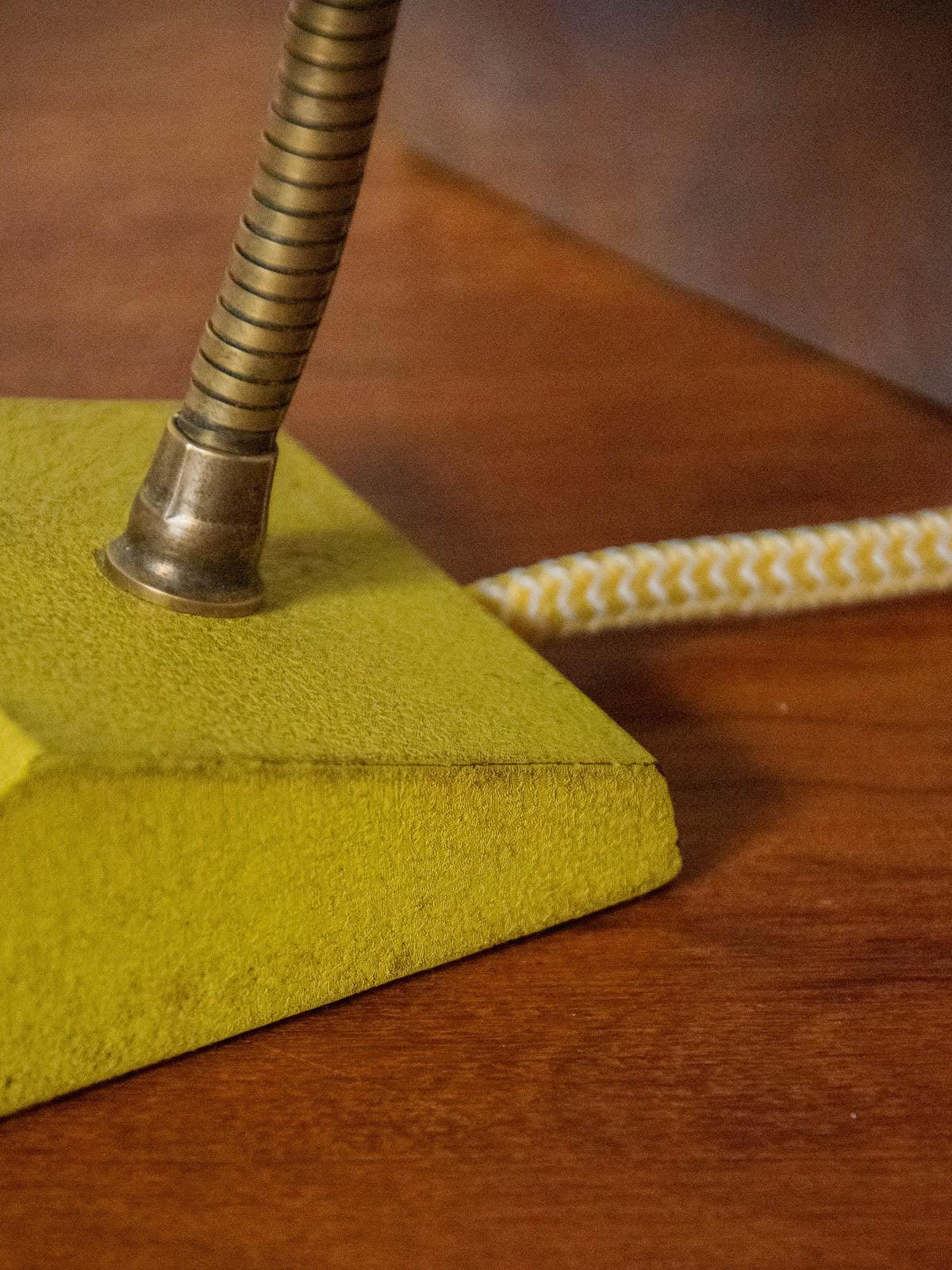 Sublimez votre intérieur avec cette petite lampe à poser des années 1960 au teint jaune et au flexible en laiton, dont la patine chaleureuse rappelle l'élégance du design vintage. Compacte et bien proportionnée, elle diffuse un bel éclairage ciblé, idéale sur un bureau comme en lampette de chevet pour créer une atmosphère rétro et accueillante. L'électricité a été entièrement remise à neuf — interrupteur, câble et prise — et une ampoule B22 baïonnette est fournie.