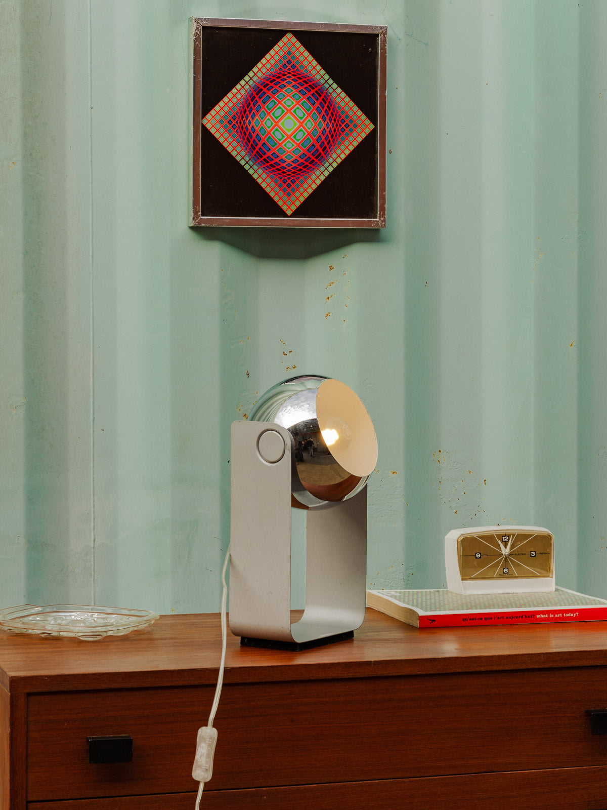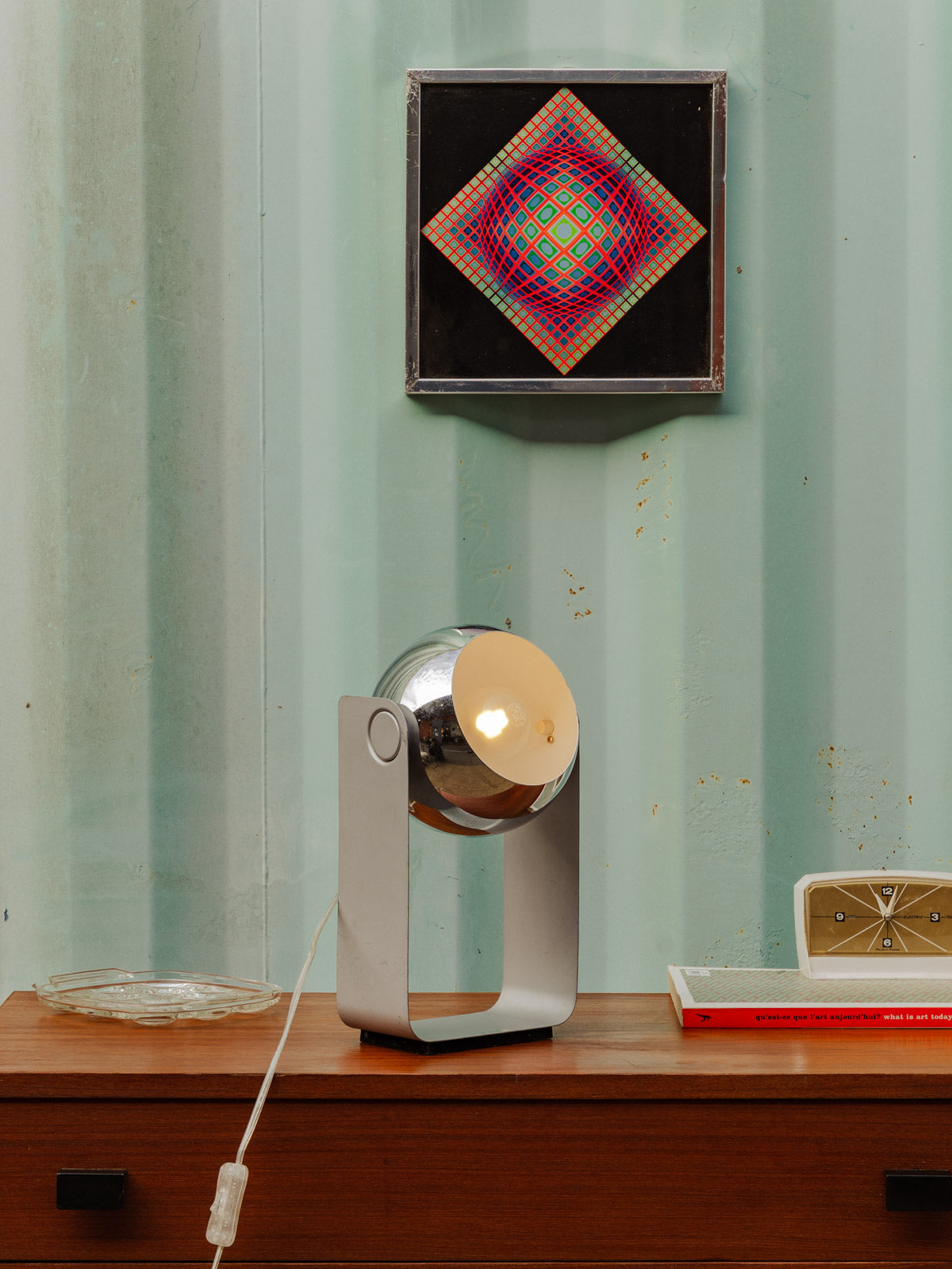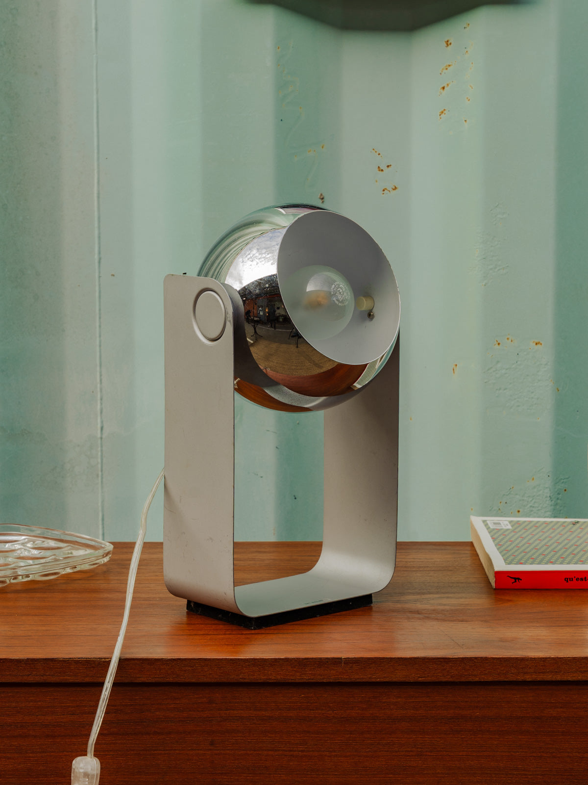 Découvrez cette lampe à poser vintage eye-ball argentée, dont la tête ronde affirme une esthétique rétro et graphique. Son diffuseur métallique concentre une lumière d'appoint idéale pour un chevet ou un coin bureau, tandis que l'interrupteur intégré et le fil blanc discret assurent une utilisation simple. Elle apporte une note élégante et chaleureuse, facile à intégrer dans une décoration contemporaine ou mid-century.