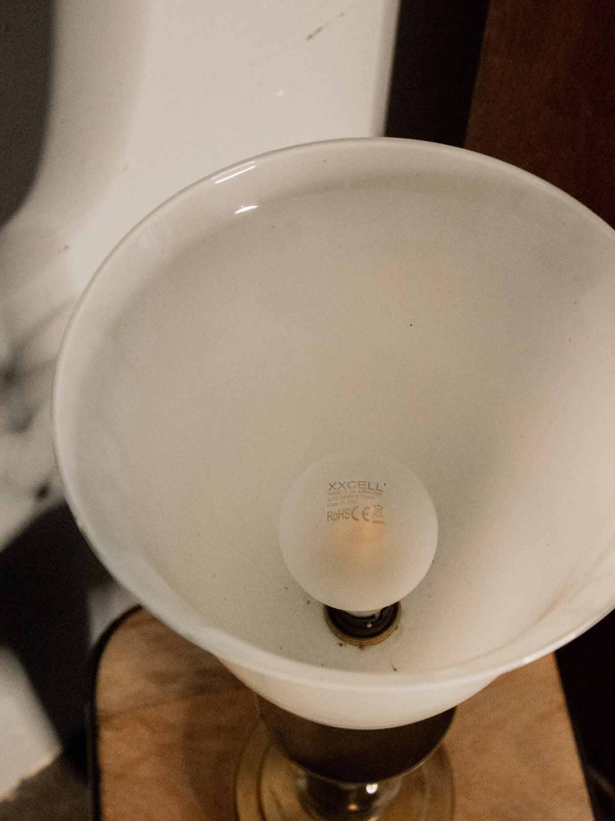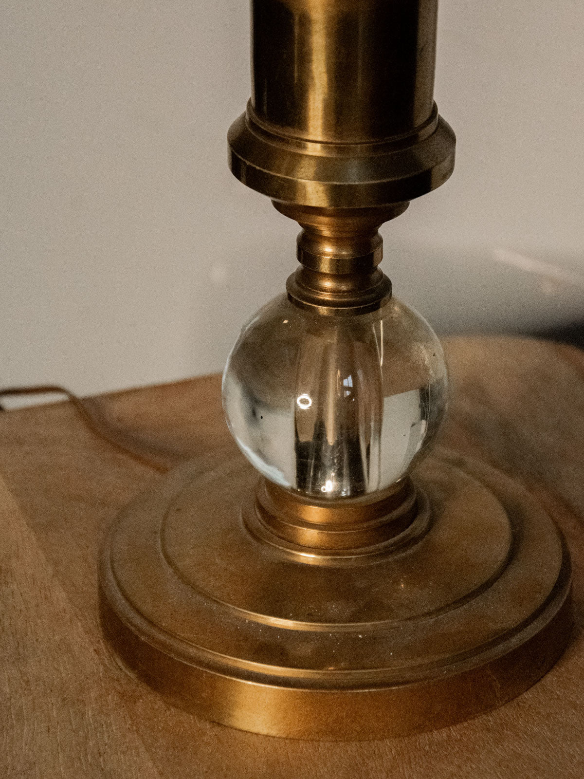 Sublimez votre intérieur avec cette lampe à l'allure raffinée, structure en métal doré et petite boule de verre nichée dans le pied, surmontée d'un abat-jour en verre opaque en forme de fleur. Son gabarit compact et ses proportions élancées la rendent idéale sur une table de chevet, une console ou un bureau, offrant un éclairage d'ambiance doux et enveloppant. Le mariage du métal doré et du verre apporte une touche poétique et sophistiquée, parfaite pour une atmosphère chaleureuse et intimiste.
