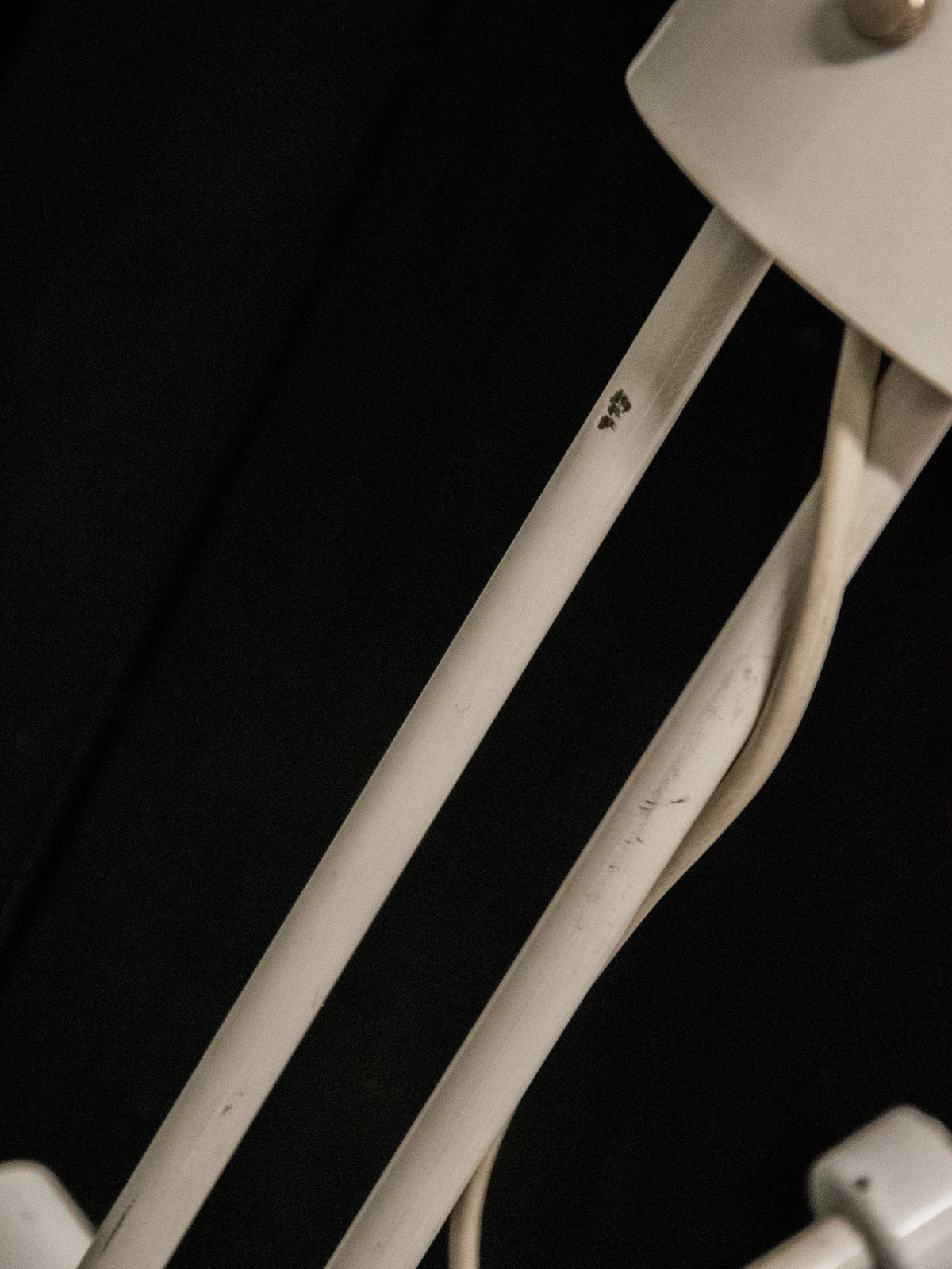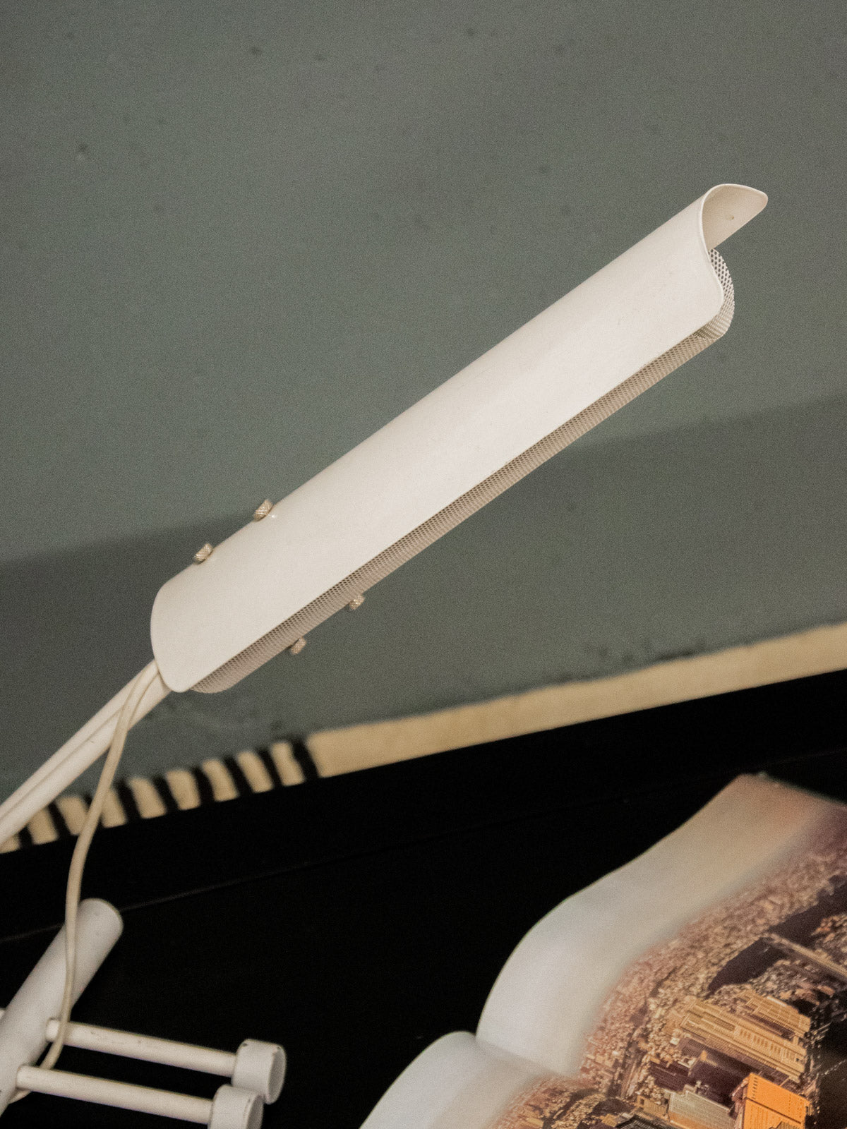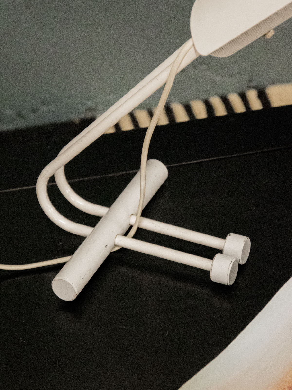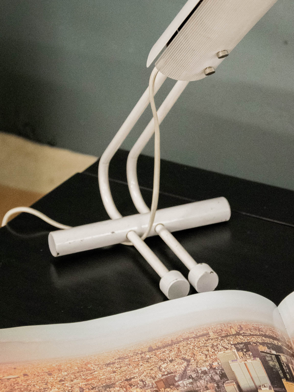 Invitez une touche rétro et graphique avec cette lampe néon à structure tubulaire en métal laqué blanc. Elle repose sur un pied en tubes croisés qui lui confère une assise stable et un dessin sculptural, idéal pour une console, un bureau ou une table d'appoint compactes. Signée des années 80-90, sa silhouette épurée diffuse une lumière douce et directionnelle, créant une ambiance chaleureuse et contemporaine. Petites marques d'usure sur le pied.