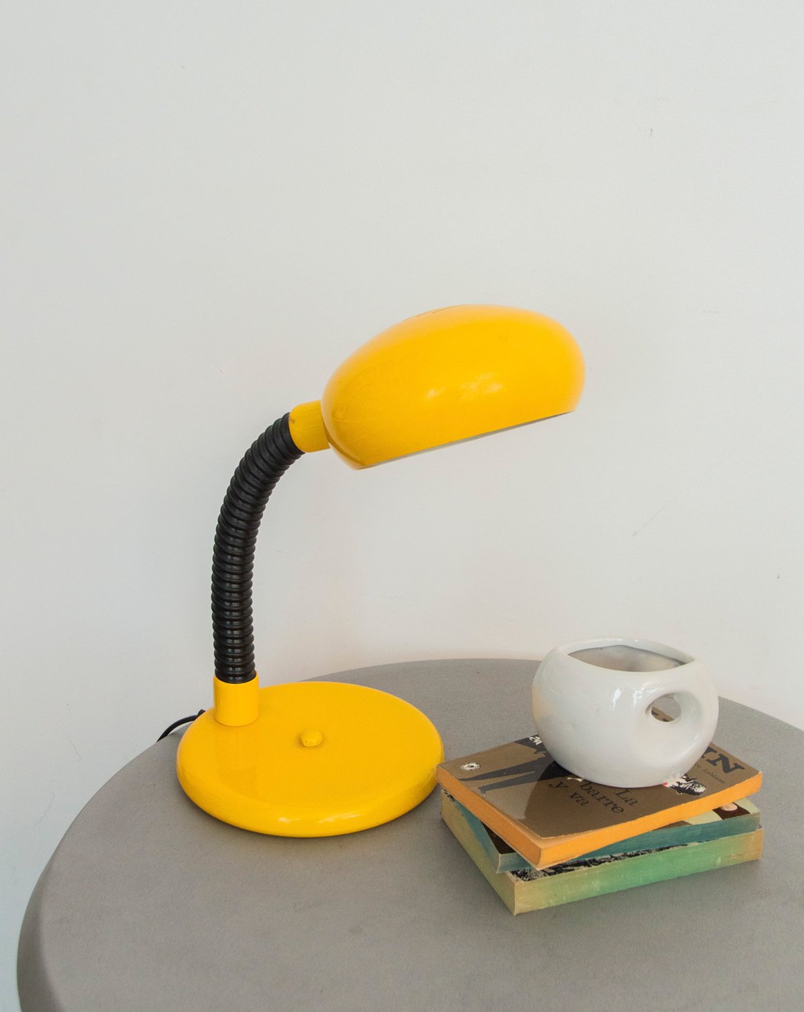 Ajoutez une touche solaire à votre intérieur avec cette lampe pivotante jaune au bras et interrupteur noirs, en métal et plastique. Sa construction métallique lui confère tenue et finesse, le bras orientable permet d'ajuster l'éclairage pour la lecture ou le travail sur un bureau, tandis que son format compact s'intègre facilement sur une table de chevet ou une console. L'association du jaune vif et du noir graphique instille une note contemporaine et chaleureuse, idéale pour ponctuer un coin lecture ou rehausser une décoration épurée.