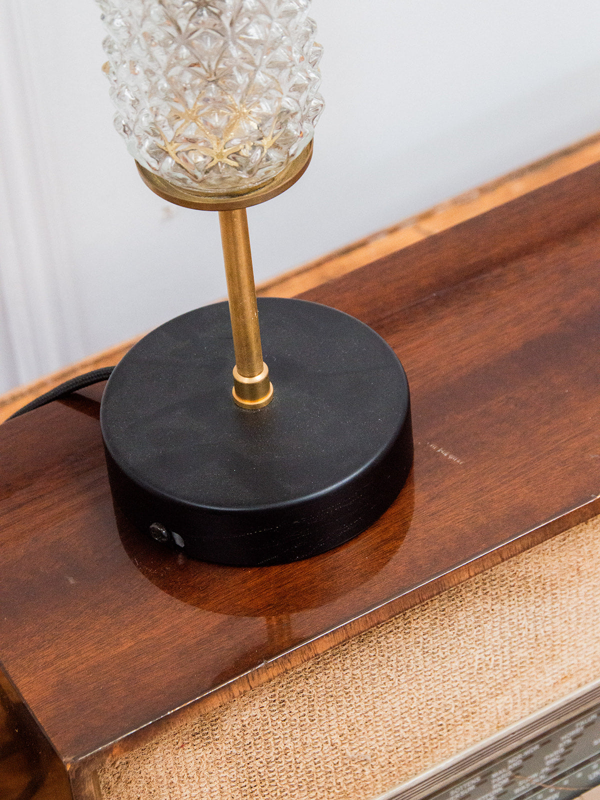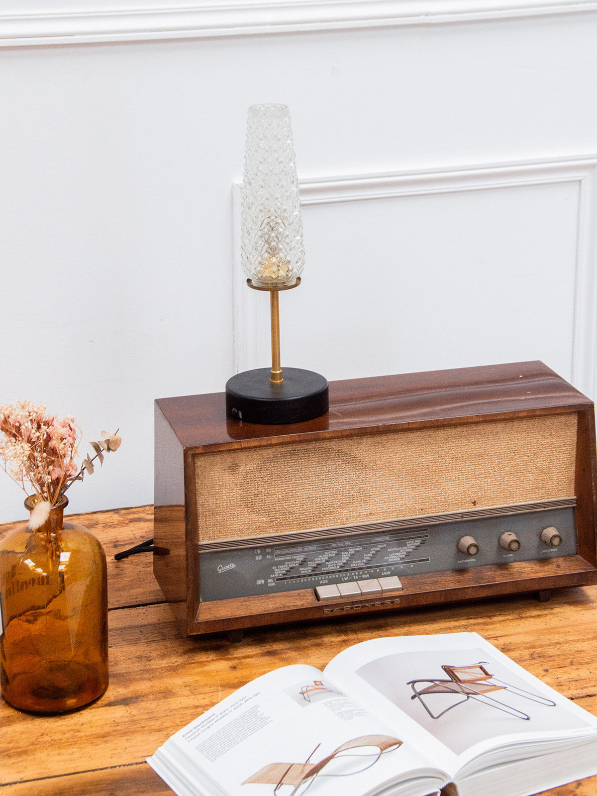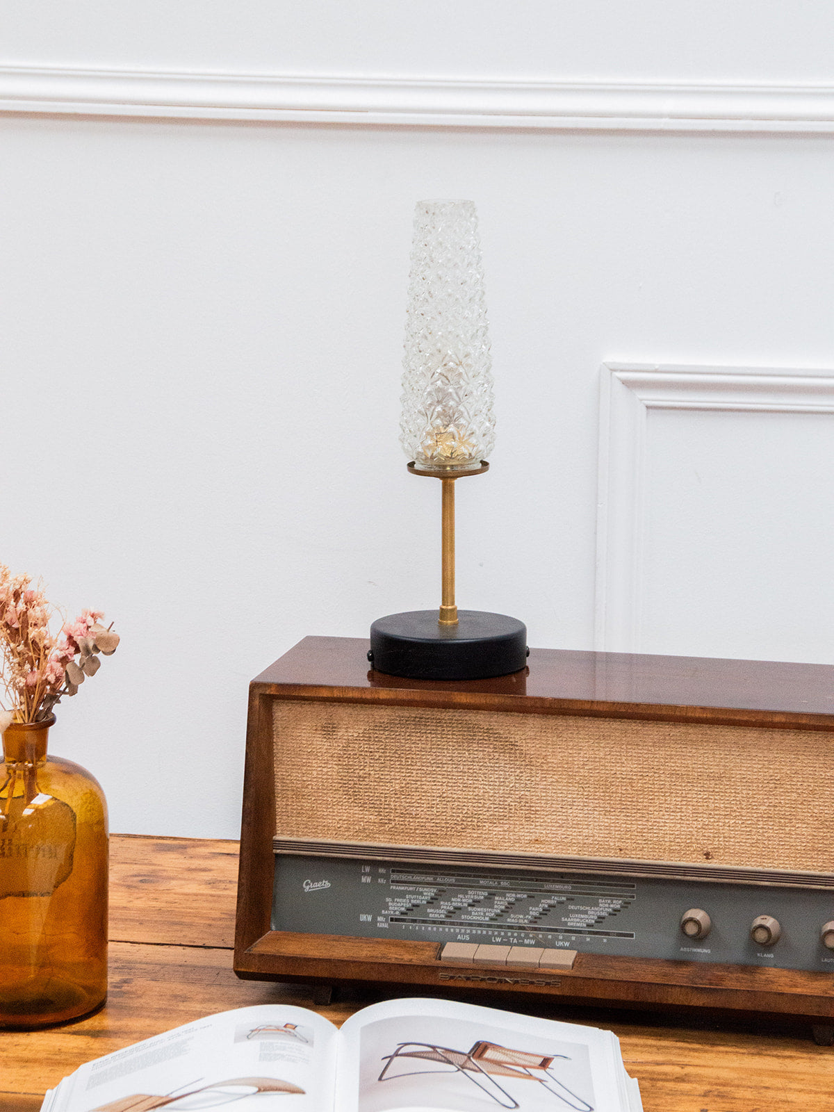 Découvrez cette lampe vintage des années 50, avec un globe en verre ancien au charme unique. Le verre, très travaillé, diffuse de jolis reflets lorsqu’elle est allumée, créant une ambiance chaleureuse. Nous avons chiné et restauré le globe pour lui offrir une seconde vie, en le montant sur un pied neuf avec un système électrique moderne. Pratique, elle se branche sur secteur et s’allume grâce à un interrupteur sur le câble. Une belle pièce authentique qui apportera caractère et lumière à votre intérieur.