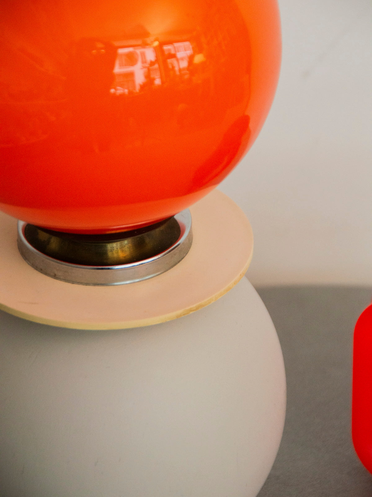 Ajoutez une touche sculpturale à votre intérieur avec cette lampe à deux boules en verre orange et gris reposant sur un socle en bois, alliant chaleur et contraste graphique. Sa silhouette compacte et équilibrée diffuse une lumière douce, idéale sur une table de chevet, une console ou un bureau pour installer une ambiance chaleureuse et contemporaine. L'association du verre coloré et du bois souligne un style sobre et inspirant qui s'intègre facilement aux décors épurés.
