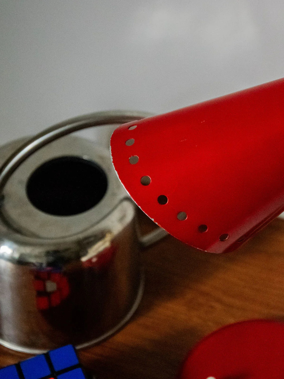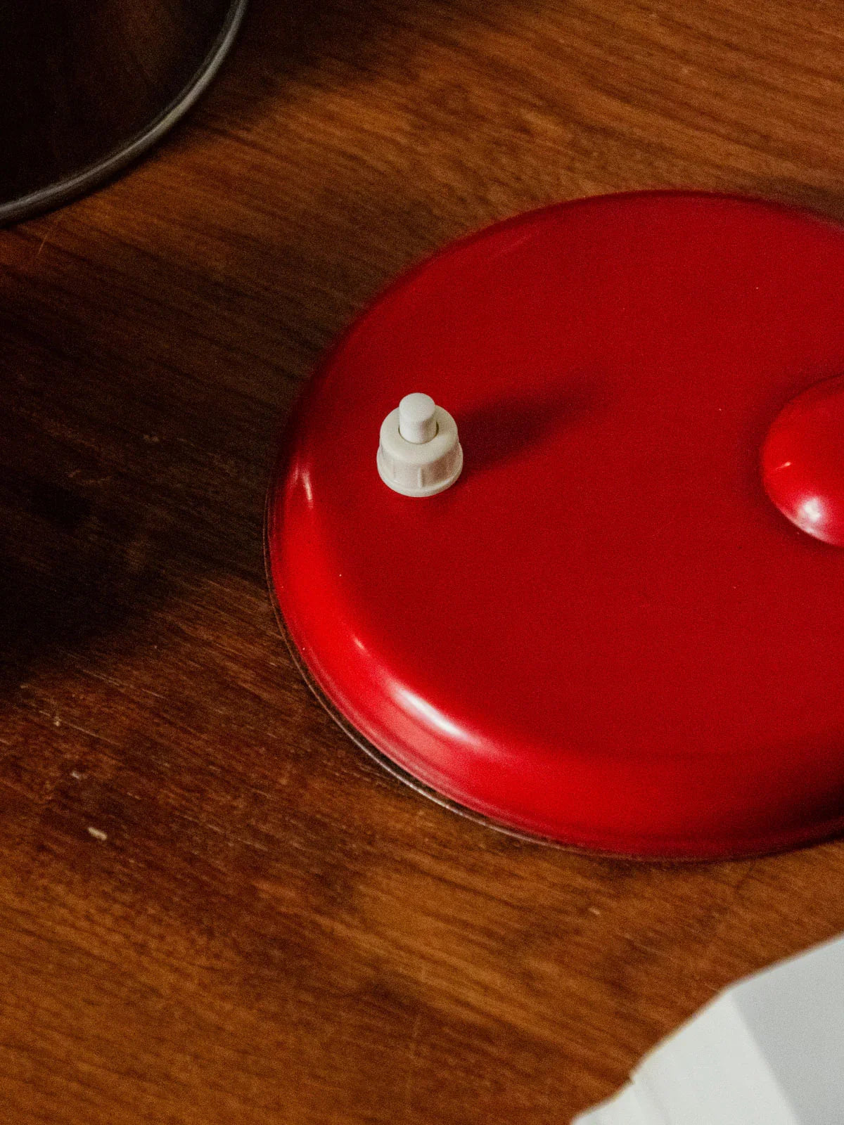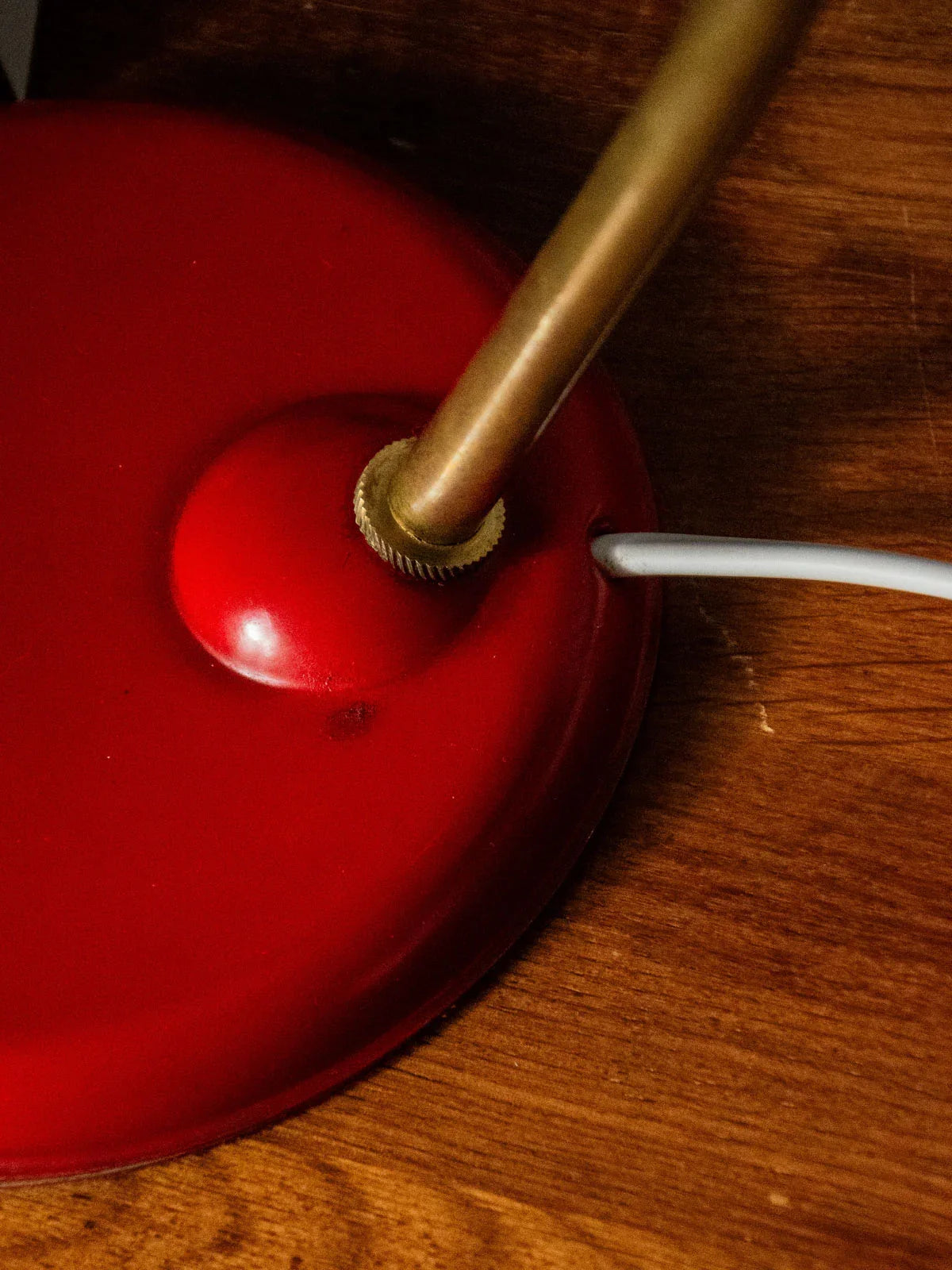 Découvrez cette lampe de table attribuée à René Mathieu pour la maison Lunel, une pièce française des années 1950 au charme discret. Son corps en laiton et métal perforé laqué rouge diffuse une lumière chaleureuse et graphique, parfaite pour un chevet ou un coin lecture, tandis que sa silhouette élancée s'intègre facilement aux espaces restreints ou aux intérieurs contemporains. Re-câblée et en parfait état de fonctionnement, elle est fournie prête à l'usage avec une ampoule incluse.