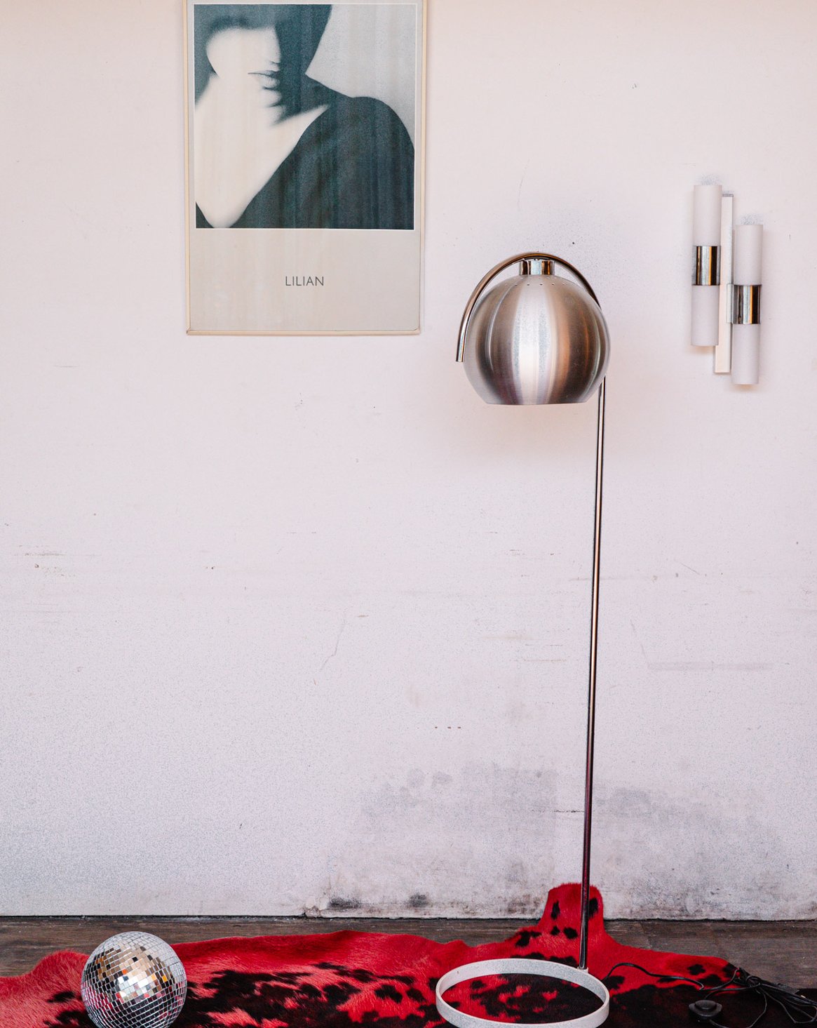 Découvrez ce lampadaire iconique des années 1970, mêlant élégance et modernité. Son globe en aluminium brossé diffuse une lumière douce et chaleureuse, tandis que la structure en acier chromé et la base en acier laqué blanc apportent une touche contemporaine à votre intérieur. Un élément incontournable pour sublimer votre décoration et créer une ambiance conviviale. Parfait pour un salon ou un bureau, ce lampadaire allie design et fonctionnalité avec brio.