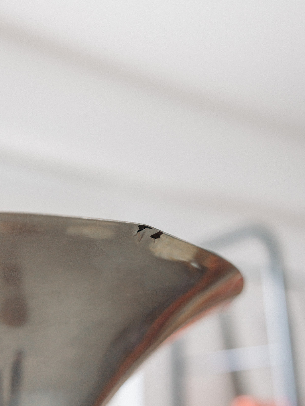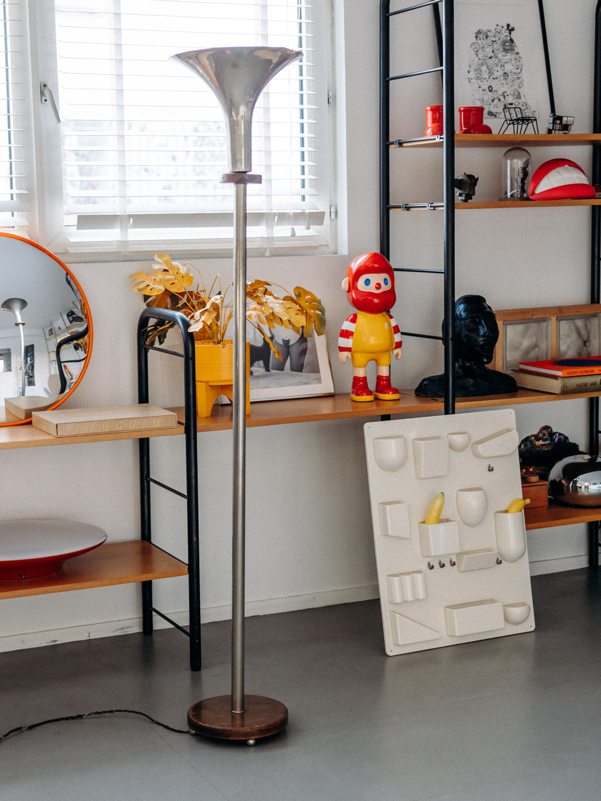 Sublimez votre intérieur avec ce lampadaire des années 50 en inox et bois, empreint d'une élégante esthétique Art déco. Son piétement rond en bois lui confère une assise chaleureuse et des proportions équilibrées, tandis que la structure en inox valorise des lignes graphiques et raffinées. Idéal pour éclairer un coin lecture ou ponctuer un salon, il diffuse une lumière douce et crée une ambiance feutrée et accueillante. Légère déformation sur l'abat-jour.