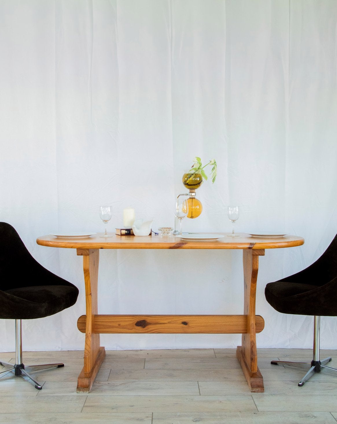 Découvrez cette table à manger ovale en pin vernis couleur naturelle, qui apporte une touche de chaleur et d'authenticité à votre salle à manger. Ses lignes douces et ses proportions généreuses favorisent une circulation fluide et créent une atmosphère conviviale pour les repas de 4 à 6 convives, en famille ou entre amis, tandis que la finition satinée met en valeur la texture du bois et facilite l'entretien. Légères traces du temps présentes.