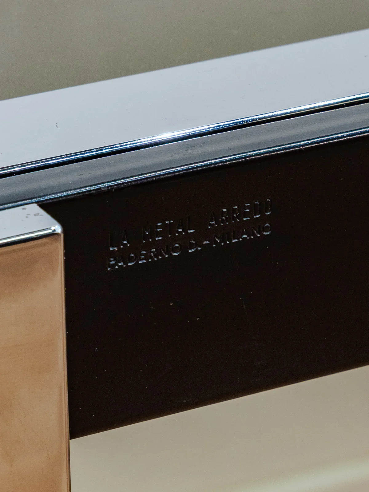 Sublimez votre salle à manger avec cette table attribuée au designer Padermo Milano, dotée d'un plateau en verre noir posé sur des pieds chromés aux lignes épurées. Ses rallonges qui coulissent déploient une capacité conviviale pour accueillir 4 à 6 convives pour des repas et soirées, tandis que l'équilibre des proportions apporte une allure contemporaine. Le mariage du verre et du métal diffuse une ambiance raffinée et lumineuse, idéale au quotidien comme pour recevoir. Quelques traces du temps présentes.
