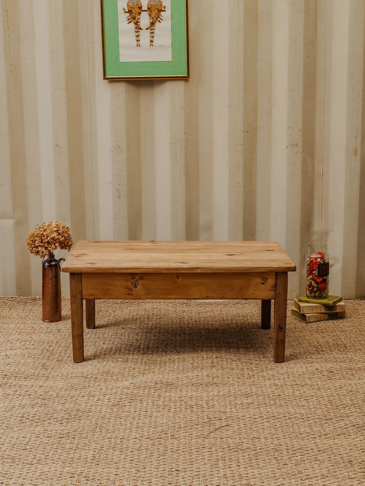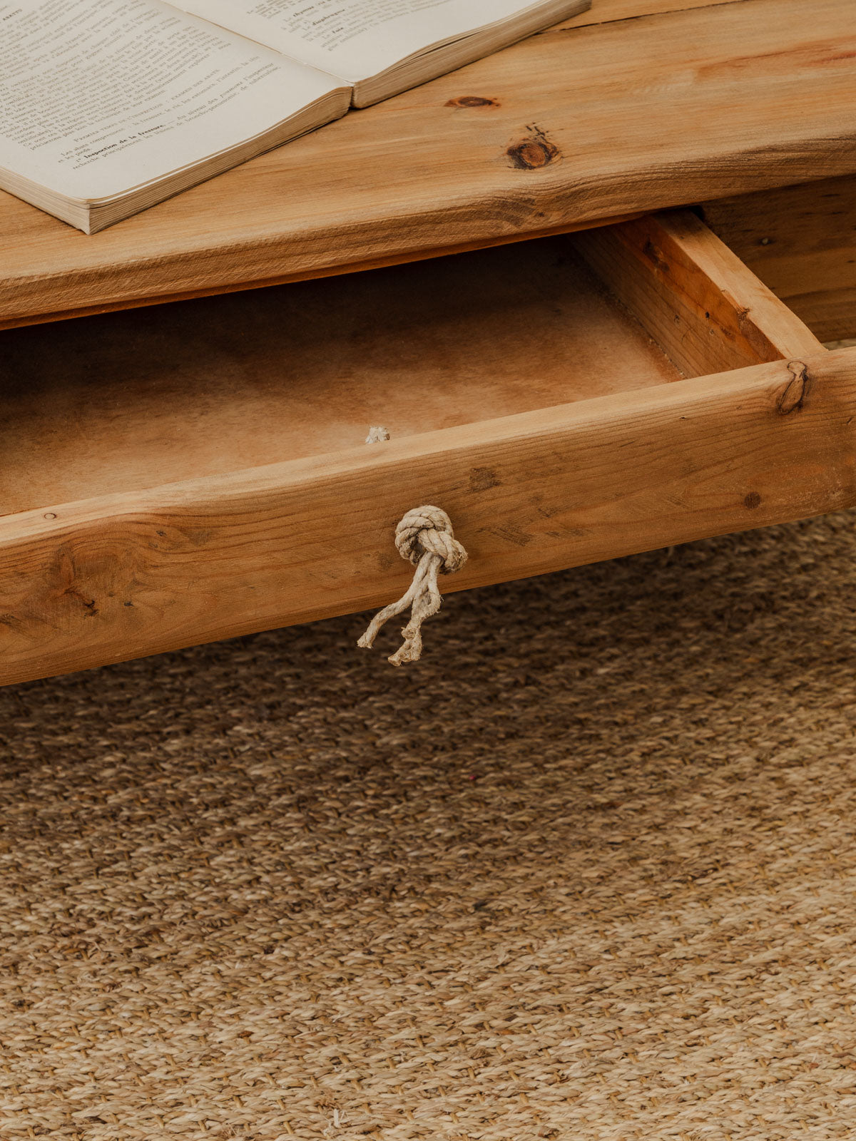 Découvrez cette table basse en bois au charme naturel, dotée d'un tiroir pratique et d'une poignée en cordon apportant une note artisanale. Son format équilibré crée un plateau accueillant pour le salon tout en offrant un rangement discret, idéale pour une ambiance bohème ou scandinave subtile. Le bois diffuse une teinte chaleureuse et une texture authentique qui installe une atmosphère conviviale. Quelques traces d'usure.