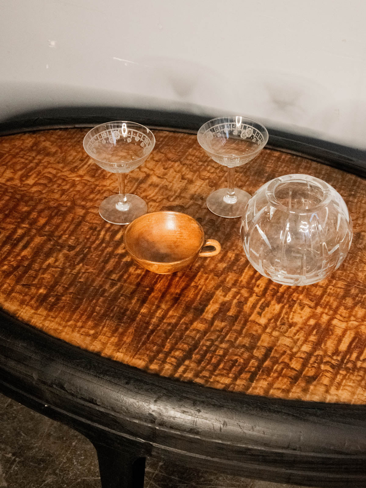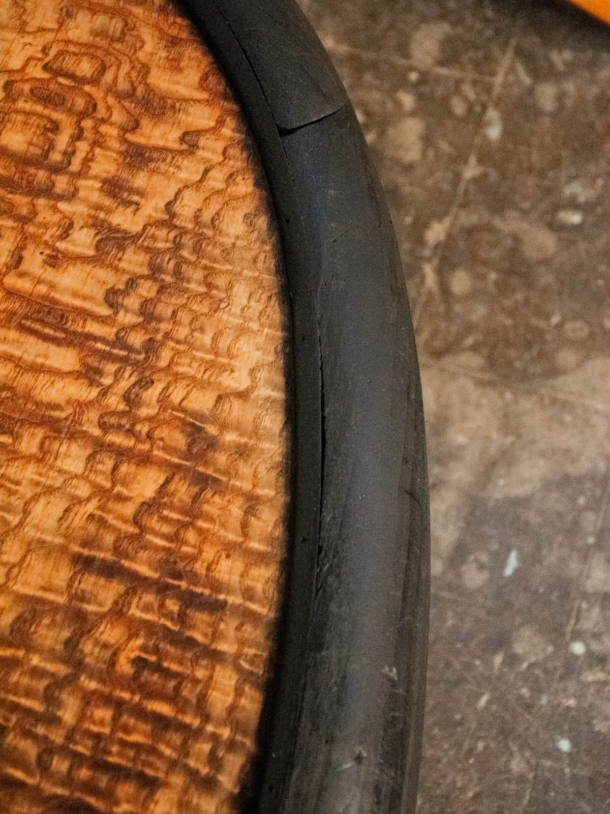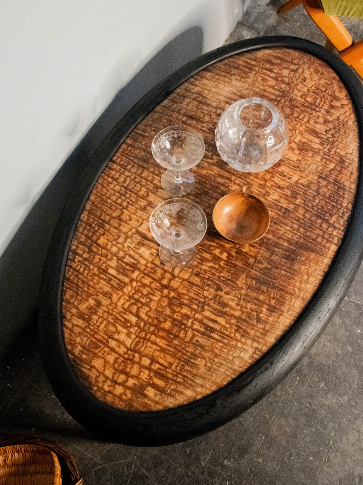 Adoptez cette table basse en bois au plateau ovale, repeinte en noir pour une allure graphique et contemporaine. Son format allongé et sa faible hauteur structurent le salon tout en offrant un large plateau pour tasses, livres et objets déco. Les quatre pieds donnent une silhouette équilibrée et une présence discrète, facile à marier avec un intérieur moderne ou un mélange d'ancien. Légères usures.