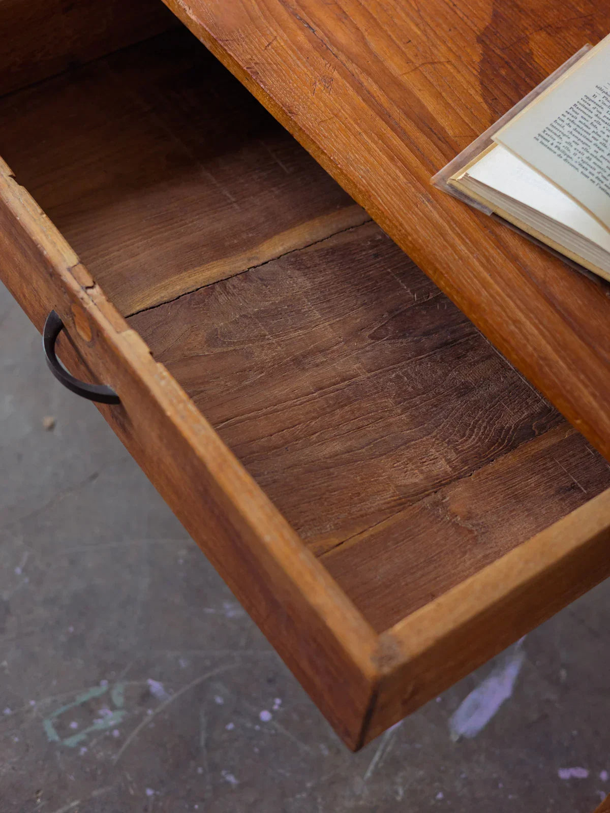 Découvrez cette table basse à plateau rectangulaire en bois patiné, rehaussée d'une poignée métallique sur son tiroir pour un détail élégant. Elle combine une surface chaleureuse aux proportions généreuses et un rangement discret, idéale pour poser tasses, livres et objets du quotidien devant un canapé. Sa patine naturelle apporte une ambiance douce et un charme narratif à votre salon. Quelques marques d'usage qui font son authenticité.
