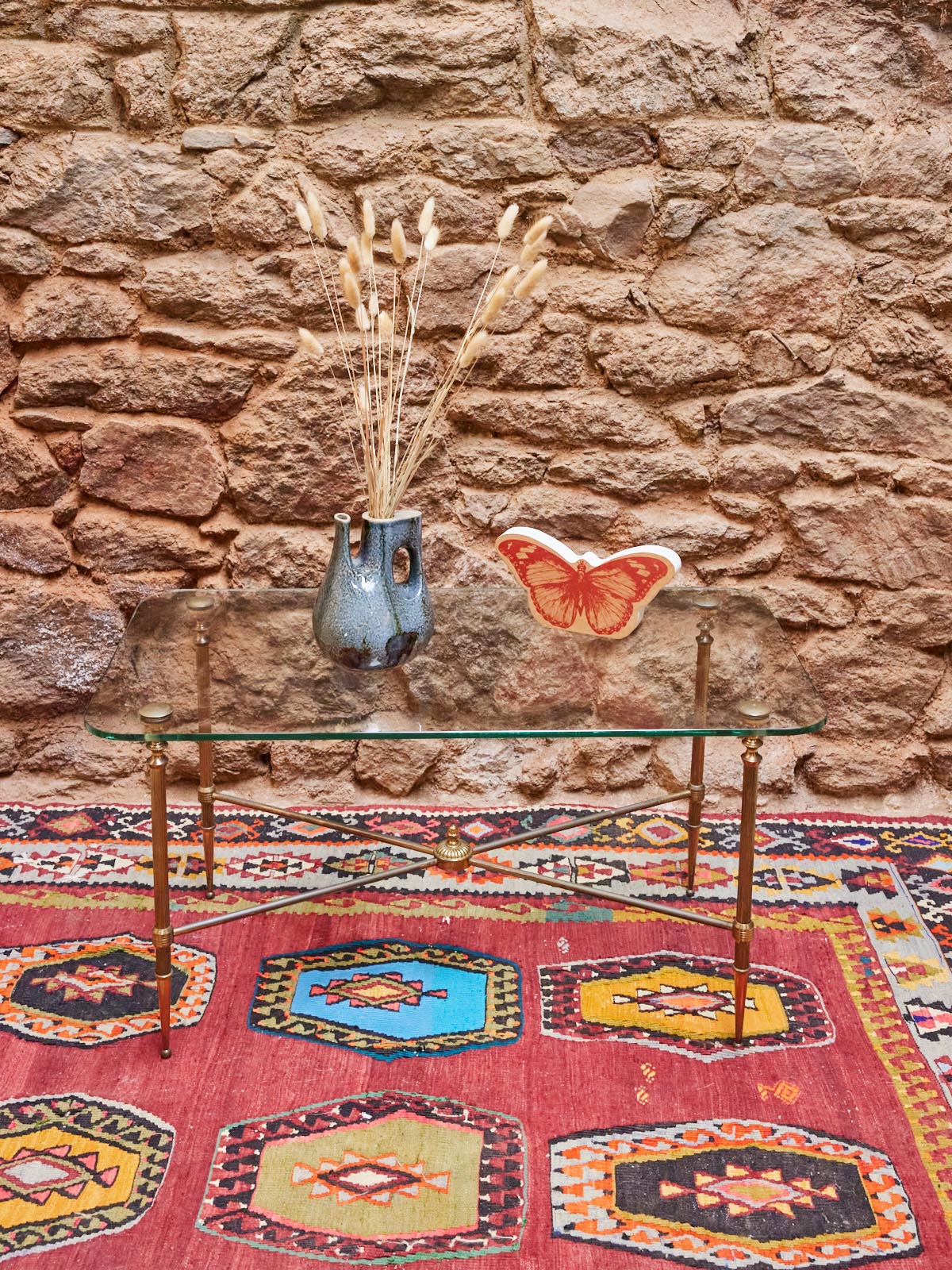 Découvrez cette table basse rectangulaire en verre et laiton doré, qui marie transparence et chaleur métallique avec délicatesse. Son plateau en verre laisse passer la lumière tandis que la structure en laiton offre une présence élégante, parfaite pour un salon au style contemporain ou néo-classique. Le format allongé permet d'accueillir magazines, plateau de service et objets décoratifs sans encombrer la pièce, pour une ambiance à la fois accueillante et raffinée.