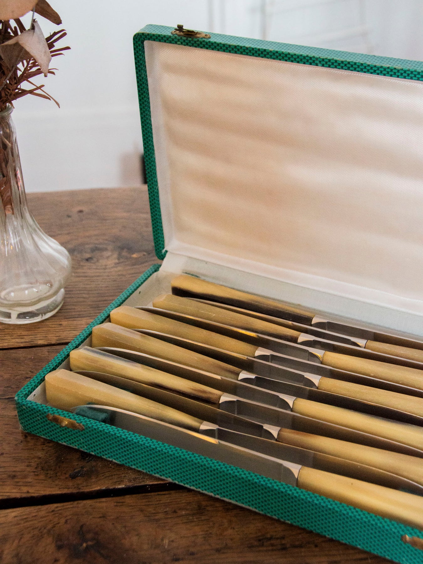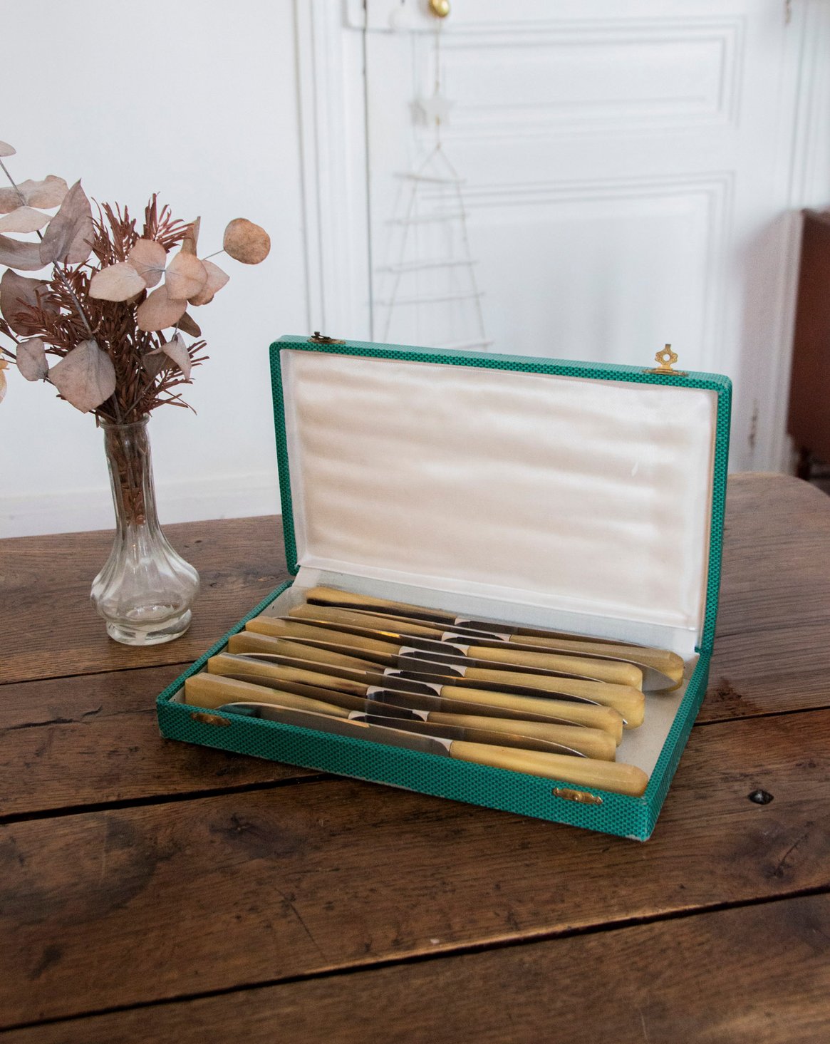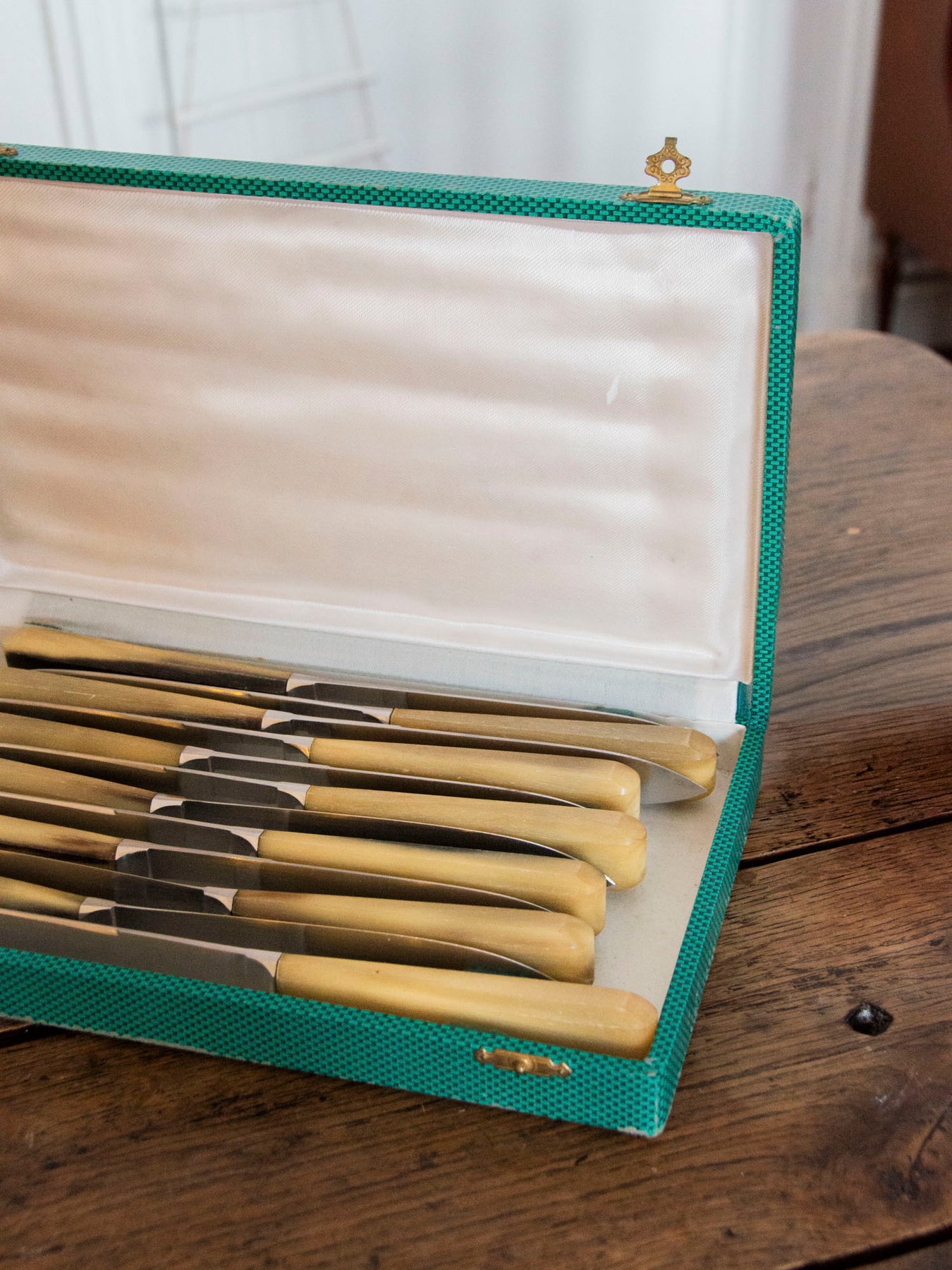Découvrez ce service de douze couteaux en acier inoxydable, présenté dans une boîte verte au format compact qui se glisse facilement dans un tiroir ou un panier. Les lames robustes offrent une découpe précise pour les repas quotidiens comme pour les tables conviviales, tandis que les manches sobres garantissent une prise en main confortable et un entretien aisé. Son design discret apporte une touche de couleur raffinée à une cuisine contemporaine ou décontractée, idéal pour un usage familial.