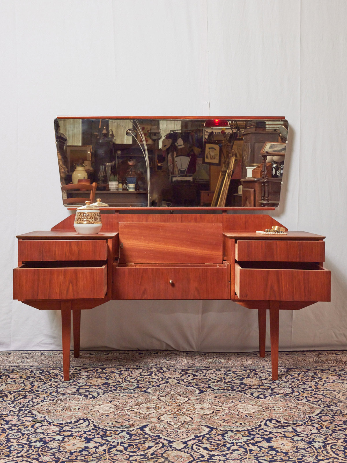 Le terme “coiffeuse” apparaît au début du XXème siècle, alors que le meuble existe depuis l’Antiquité. Composée d’une tablette, d’un ou plusieurs miroirs et de nombreux tiroirs, la coiffeuse est un meuble de rangement, mais surtout un lieu de préparation où l’on se maquille, se parfume et se coiffe. Si à l’origine, ce mobilier correspond aussi bien aux hommes qu’aux femmes, il devient très vite l’incarnation du mystère féminin. La coiffeuse peut en effet se munir de cachettes secrètes, afin de recevoir la correspondance intime. Aujourd’hui, la coiffeuse revient sur le devant de la scène et fonctionne très bien dans tous les style d'intérieurs !
