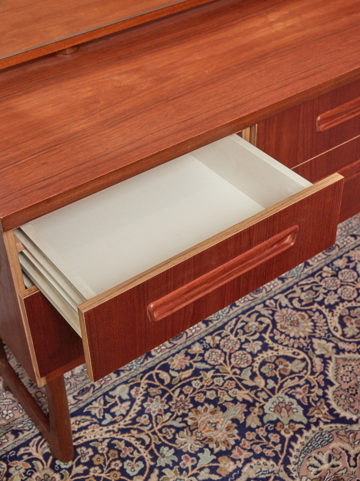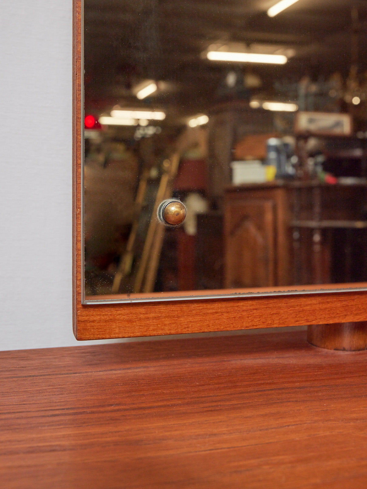 Adoptez cette coiffeuse d'inspiration scandinave, aux lignes sobres et au bois au grain chaleureux relevé par des poignées moulées dessinant une silhouette graphique. Ses six tiroirs offrent un rangement modulable pour cosmétiques et bijoux, tandis que le miroir rectangulaire restitue une mise en beauté naturelle. Les roulettes discrètes facilitent les déplacements pour réorganiser un coin chambre ou créer un boudoir lumineux, apportant fonctionnalité et élégance intemporelle à votre intérieur.