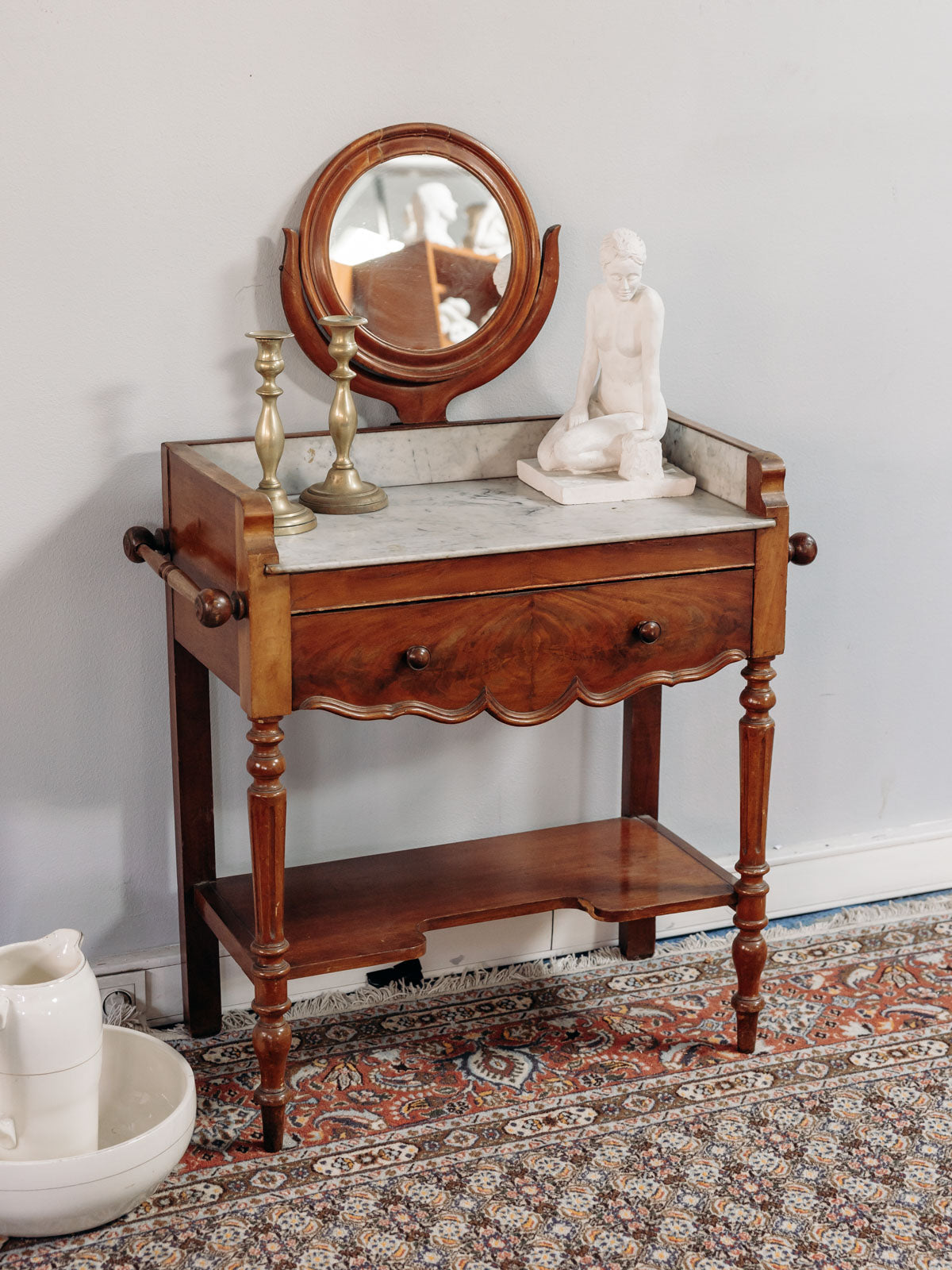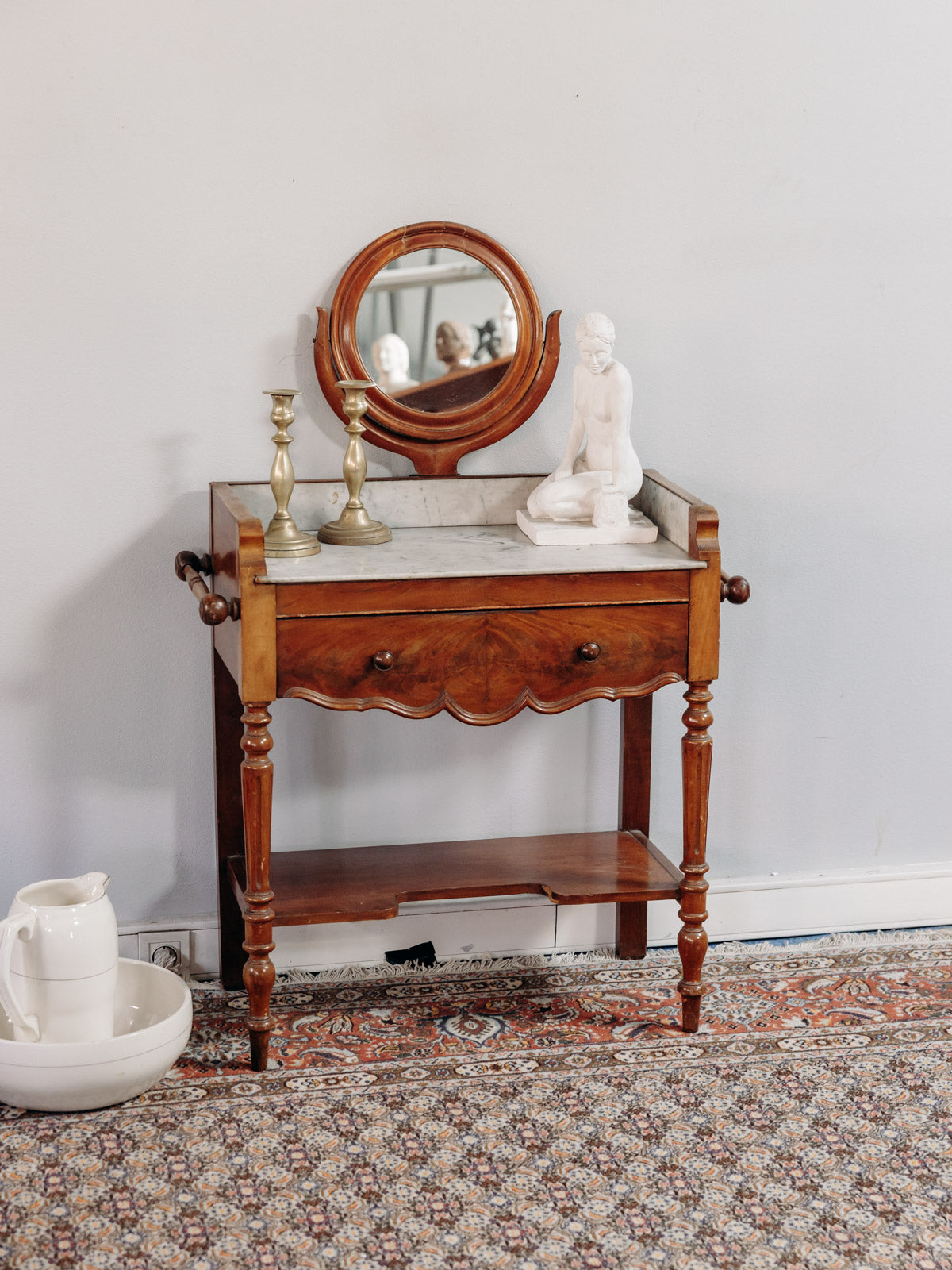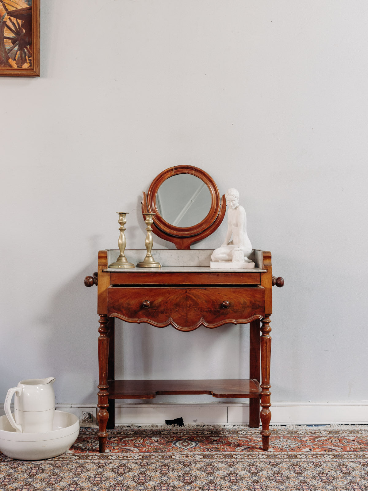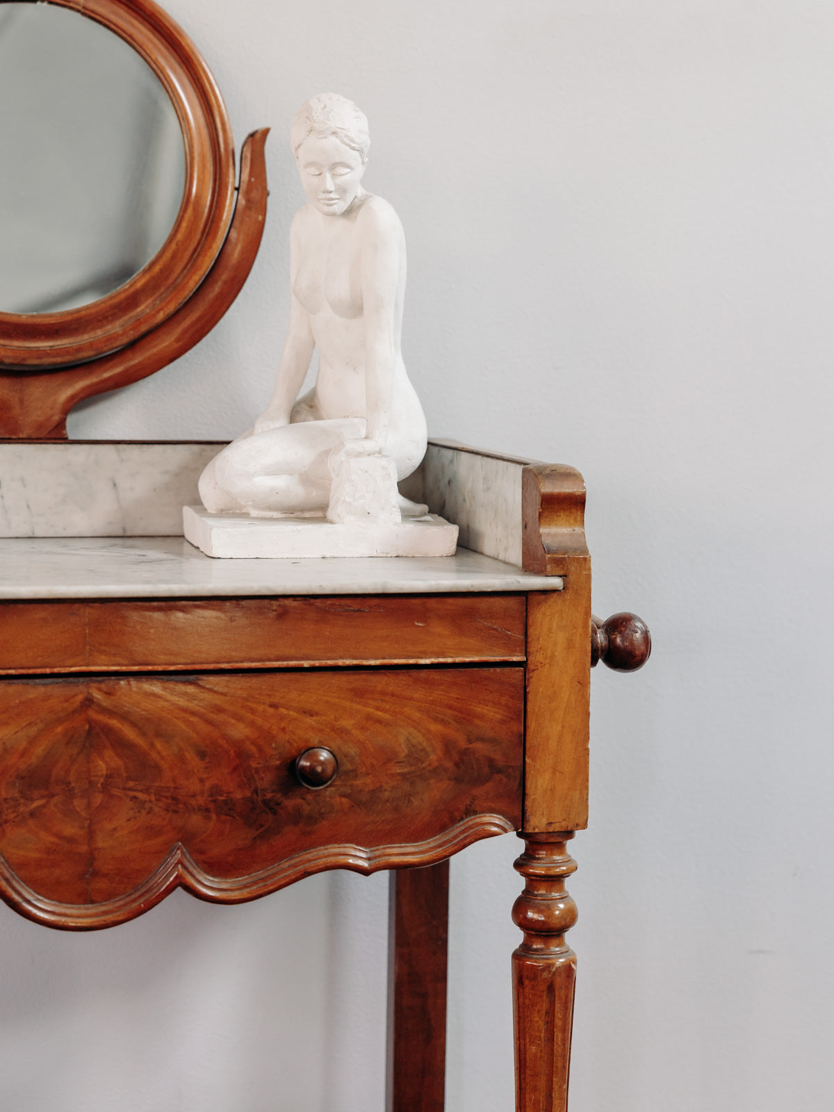Le terme “coiffeuse” apparaît au début du XXème siècle, alors que le meuble existe depuis l’Antiquité. Composée d’une tablette, d’un ou plusieurs miroirs et de nombreux tiroirs, la coiffeuse est un meuble de rangement, mais surtout un lieu de préparation où l’on se maquille, se parfume et se coiffe. Si à l’origine, ce mobilier correspond aussi bien aux hommes qu’aux femmes, il devient très vite l’incarnation du mystère féminin. La coiffeuse peut en effet se munir de cachettes secrètes, afin de recevoir la correspondance intime. Aujourd’hui, la coiffeuse revient sur le devant de la scène et fonctionne très bien dans tous les style d'intérieurs !