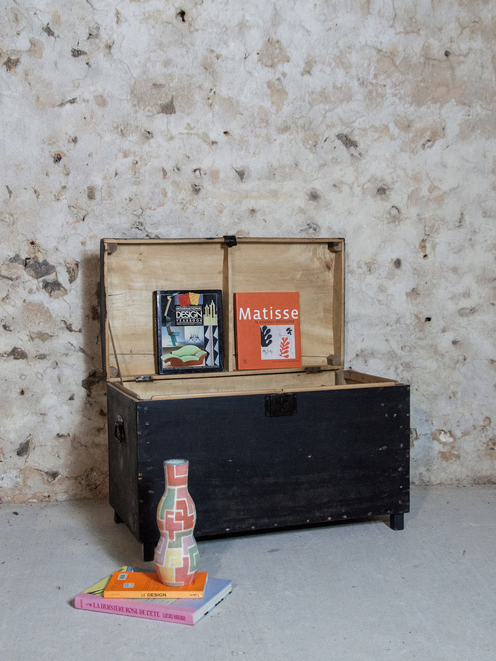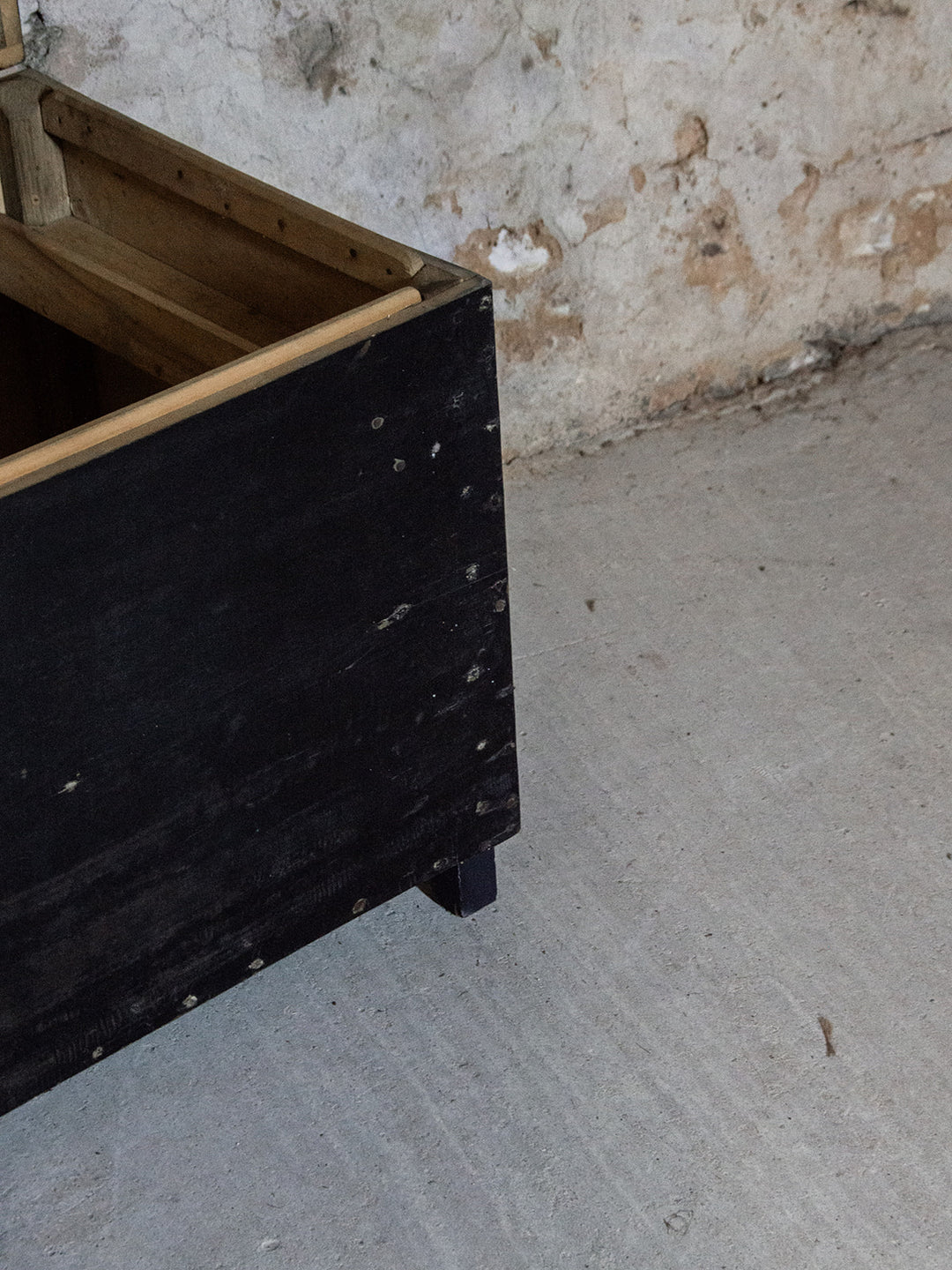 Découvrez ce charmant coffre en bois bleu foncé / gris, posé sur de petits pieds carrés qui lui donnent une allure sobre et authentique. Idéal pour ranger linge, livres ou objets du quotidien tout en apportant une touche vintage à votre intérieur. Son look patiné et ses traces d’usure lui confèrent un charme plein de vécu. Solide et fonctionnel, il s’adapte aussi bien à une chambre qu’à un salon. Une belle pièce au caractère unique.