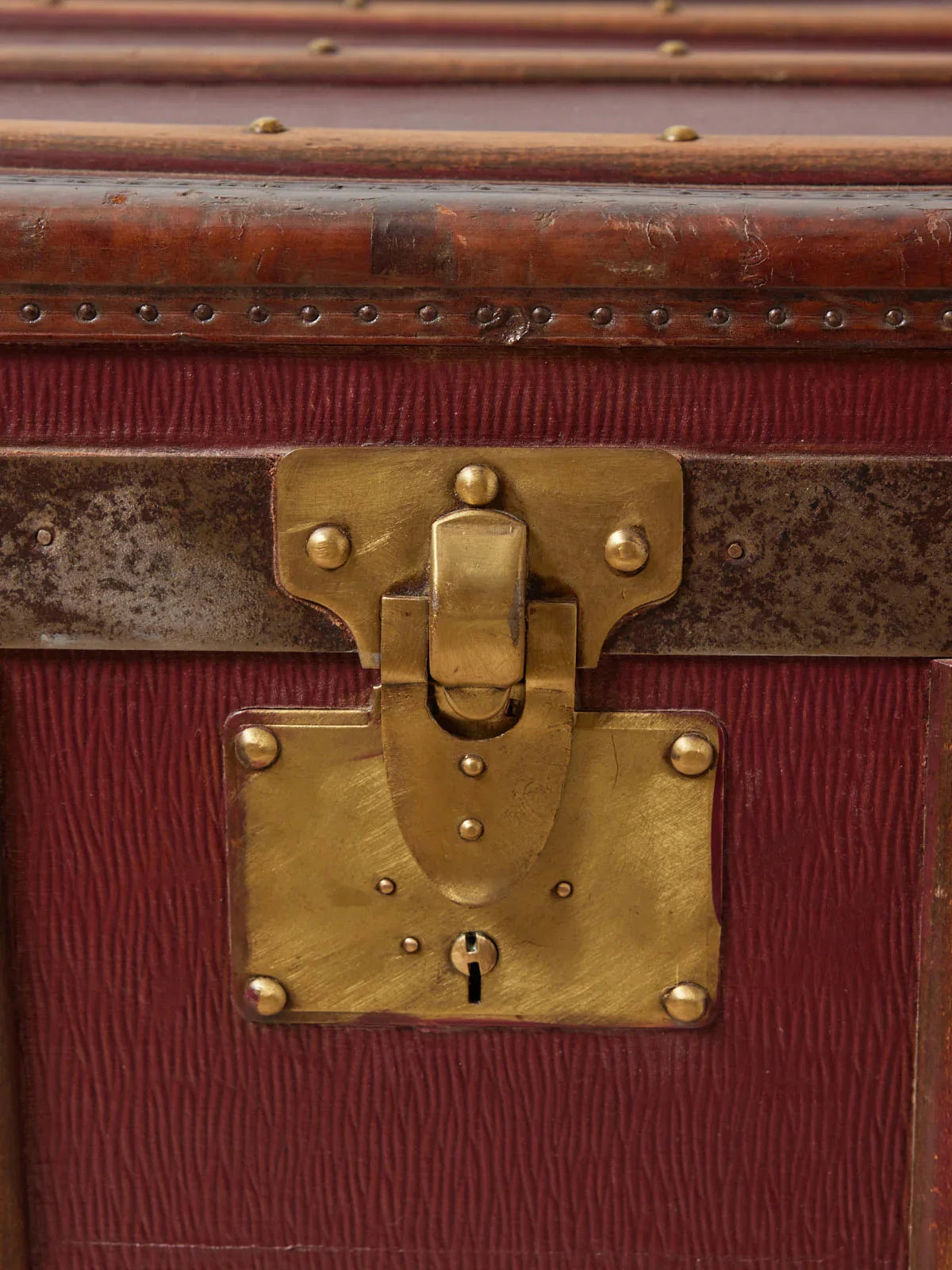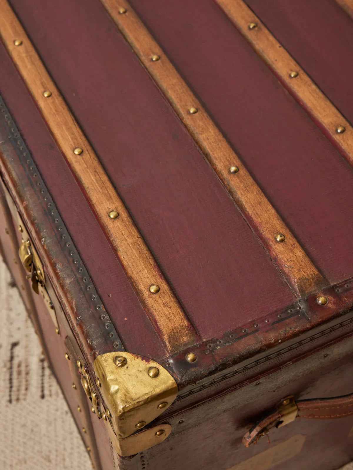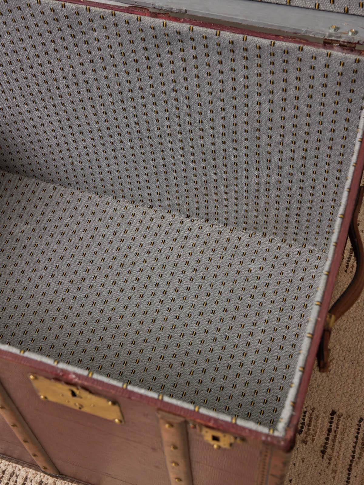 Offrez à votre intérieur une malle du début du XXe siècle, restaurée à la main par un malletier professionnel : son cuir bordeaux d'origine et ses étiquettes conservées racontent une histoire tout en s'exprimant dans une esthétique voyageuse et raffinée. Vernie et renforcée pour un usage quotidien, elle se transforme en table basse généreuse ou en coffre de rangement discret, apportant une présence chaleureuse et structurée au salon ou à la chambre. Un beau travail de restauration qui respecte l'esprit de la pièce. Poignées en cuir et fermoirs en laiton doré