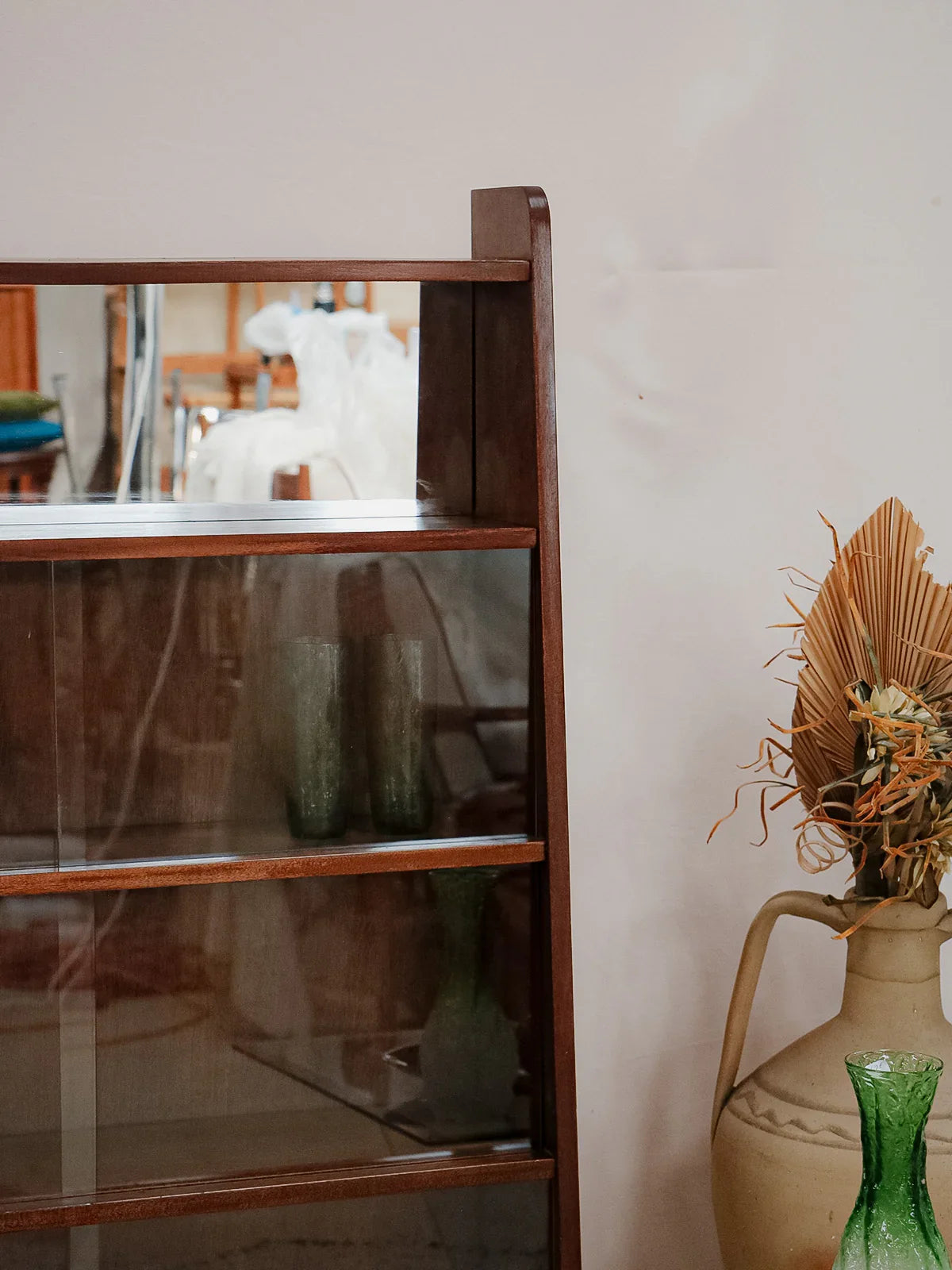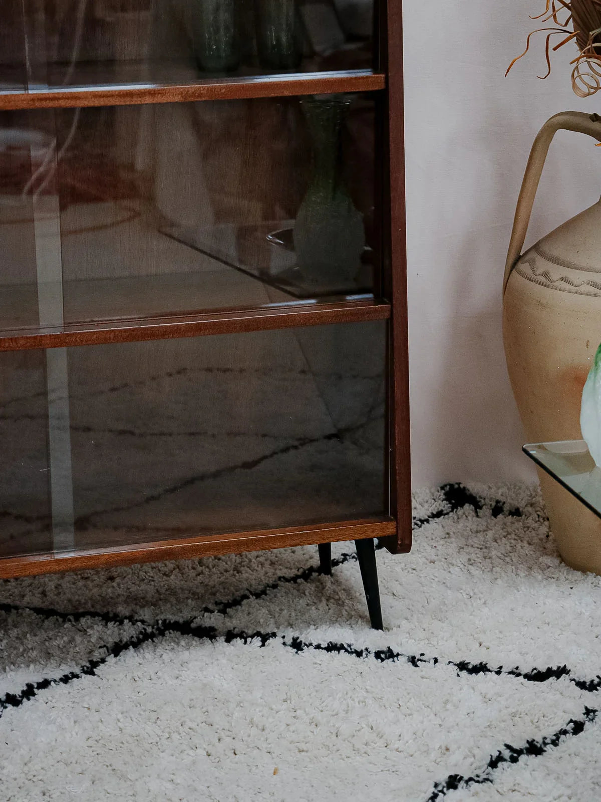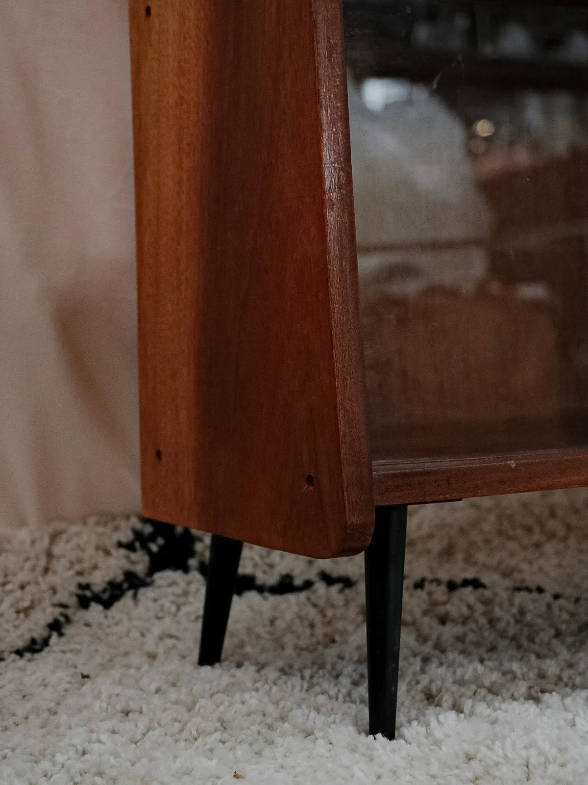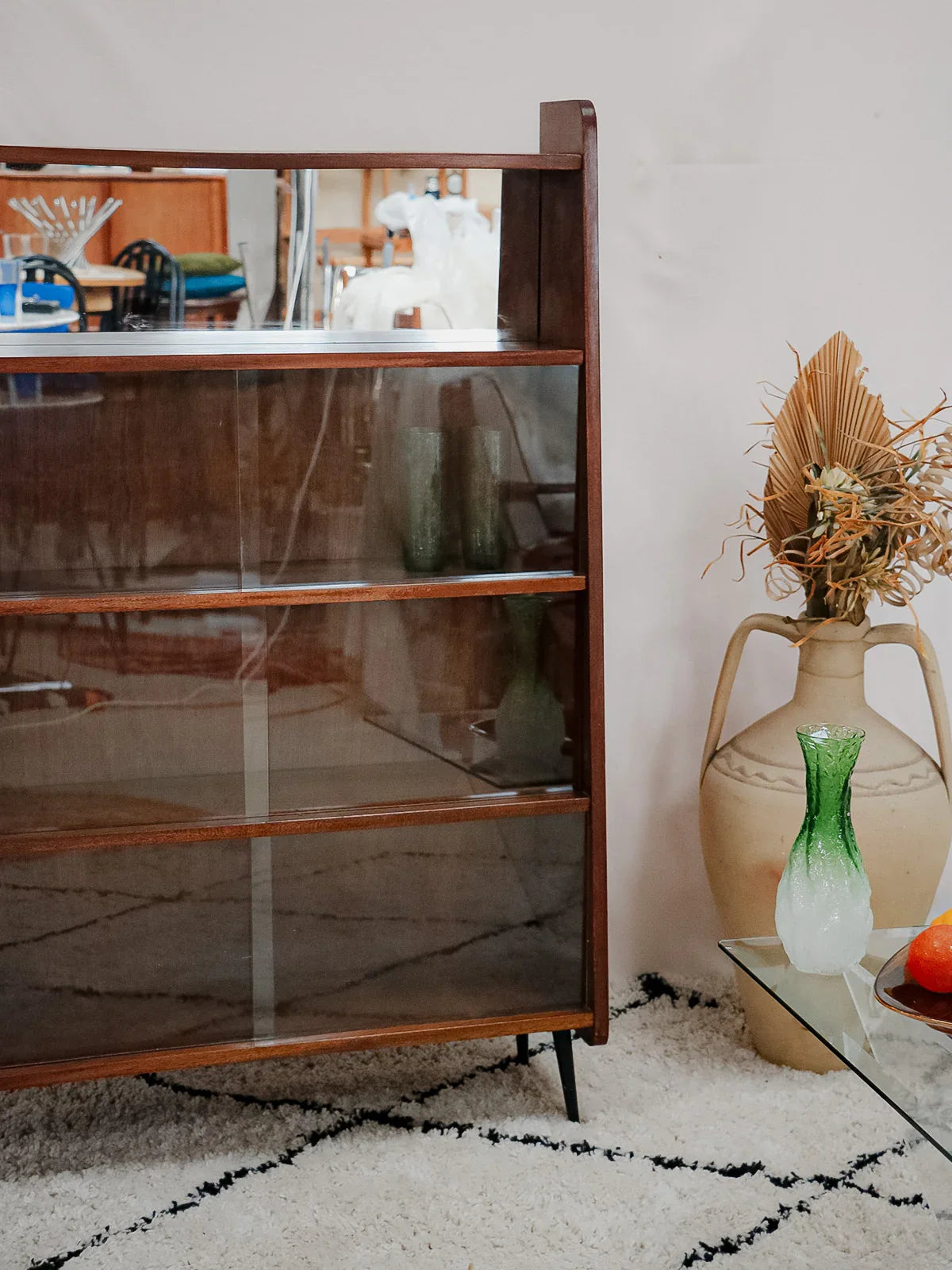 Découvrez cette bibliothèque des années 50 signée Fonteneau, habillée d'un plaquage acajou chaleureux et dessinée dans des proportions élancées qui s'intègrent facilement à un salon ou un bureau. Son agencement pratique, trois étagères avec vitrines et une étagère équipée d'un miroir, permet d'exposer livres et objets tout en jouant sur la profondeur ; les pieds en métal noir apportent une touche graphique et contemporaine. Une pièce française au charme discret, idéale pour une ambiance raffinée et contenue.
