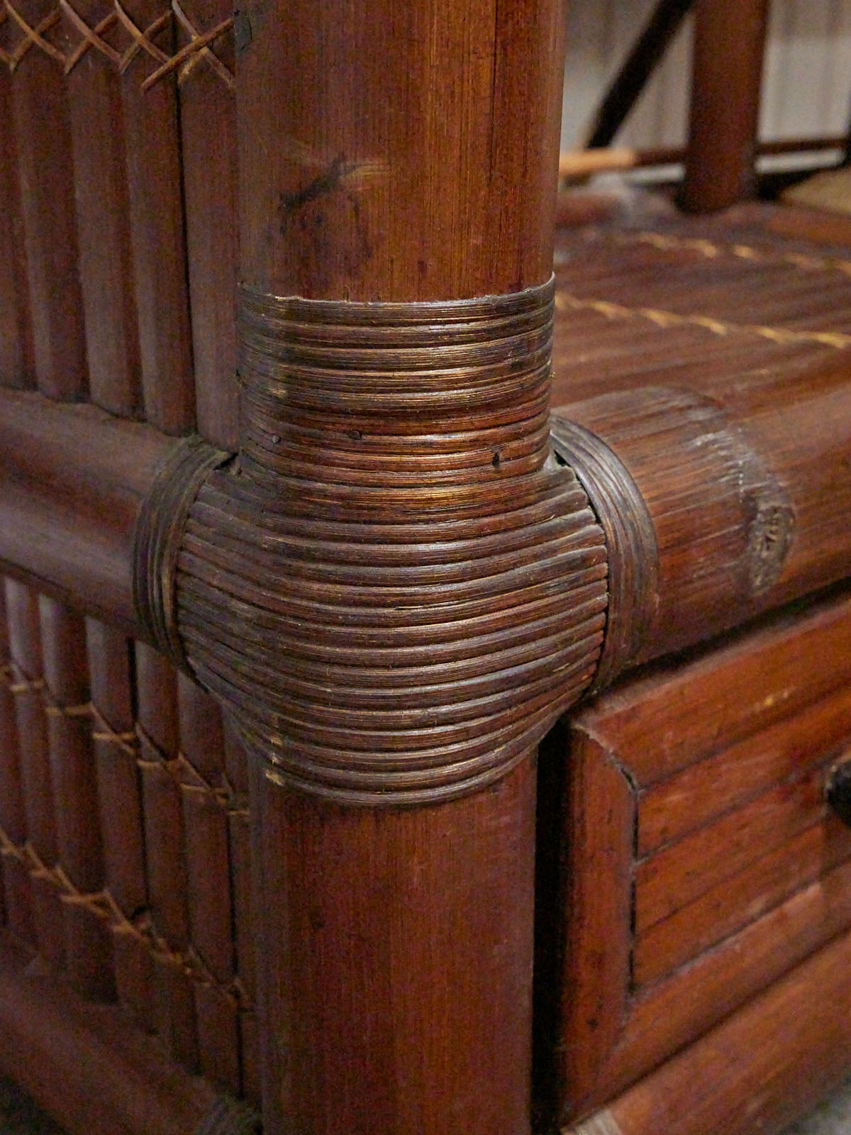 Invitez ce dressing en bambou foncé au sein de votre intérieur, sa structure creuse et légère apportant une élégante simplicité naturelle. Pensé pour organiser sans alourdir, il combine trois étagères et une tringle pour suspendre vestes et chemises, tandis que des rideaux discrets masquent le rangement pour un rendu sobre et soigné. Idéal pour une chambre, un studio ou une entrée, il crée une atmosphère chaleureuse et aérée, entre fonctionnalité et touche végétale.