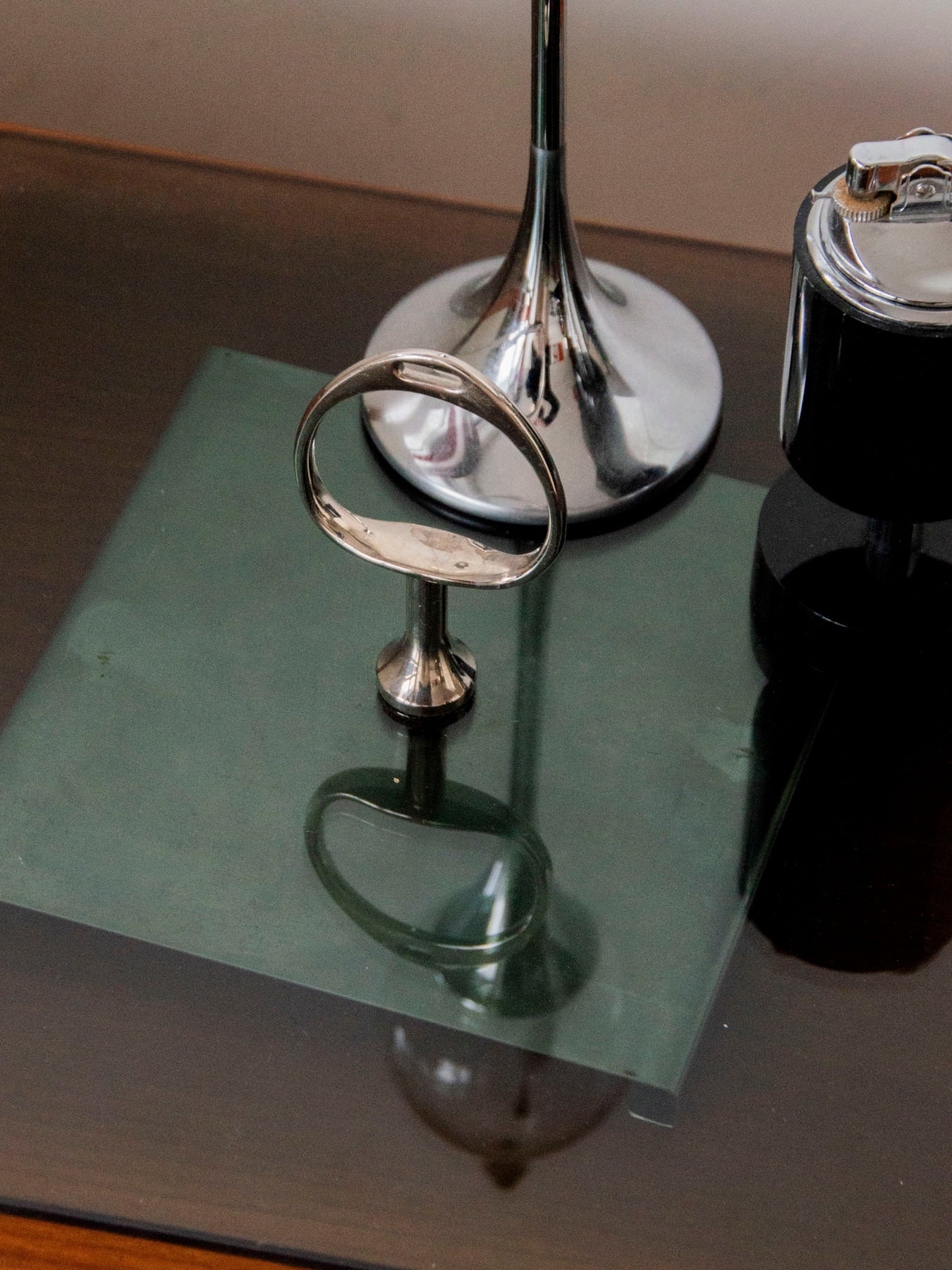 Sublimez votre table avec ce plateau à fromages des années 70 en verre fumé et chrome, dont la silhouette carrée et le piètement au design affirmé évoquent l'esprit Space Age. Le verre fumé apporte une touche tamisée et contemporaine tandis que le chrome souligne la légèreté et la finesse de l'objet, idéal pour présenter fromages et amuse-bouche lors d'un apéritif soigné. Pièce à la fois décorative et fonctionnelle, elle instille une note rétro-moderne à vos réceptions. En très bon état.