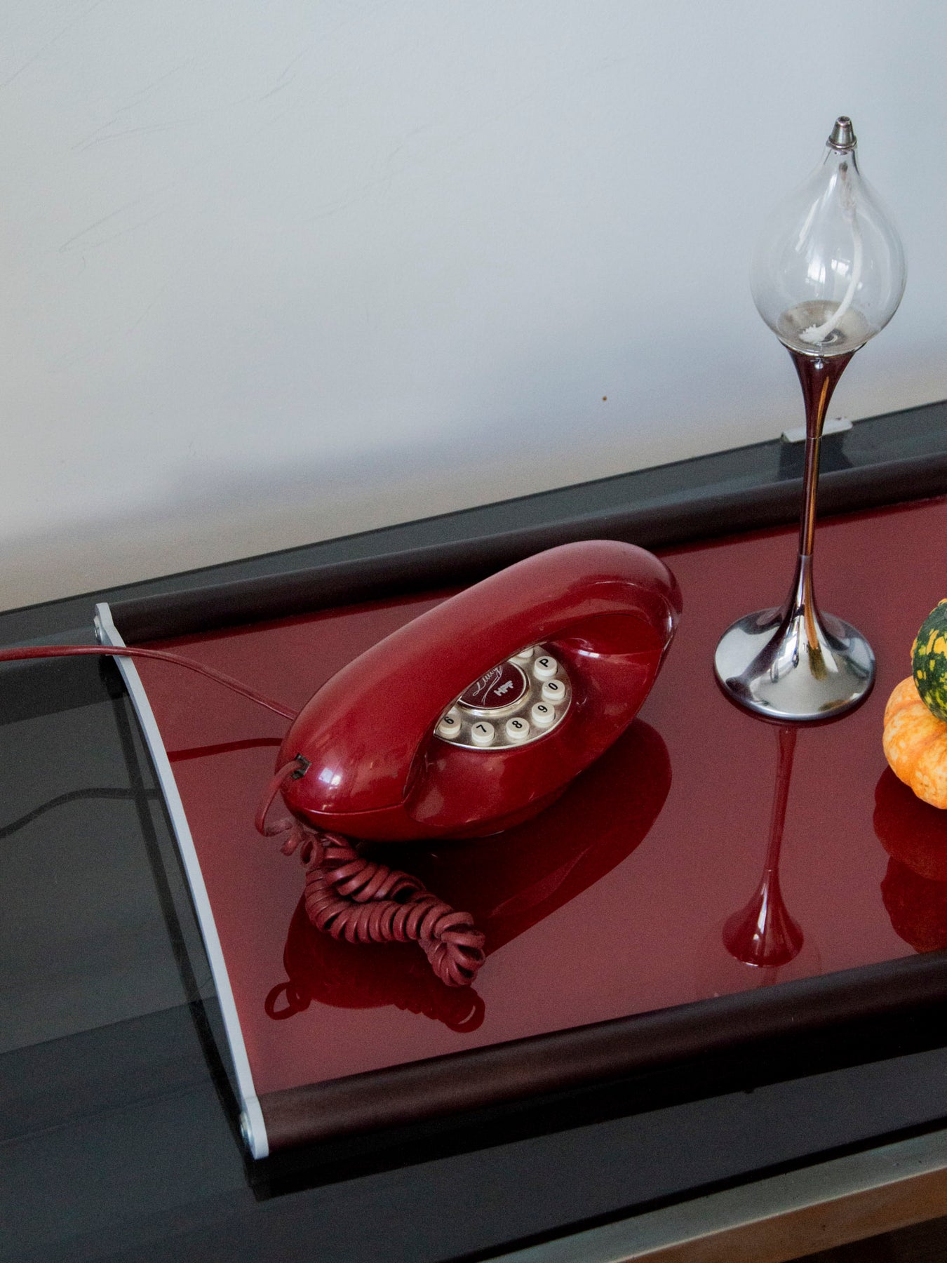 Découvrez ce plateau de service vintage fabriqué en Italie, mêlant une structure en bois foncé, un plateau en verre et des poignées au design en acier mat. Sa teinte chaleureuse, entre bordeaux et rouge cerise, apporte une note sophistiquée à un bar ou à une table basse, tandis que sa surface accueillante peut présenter bouteilles, verres et gourmandises lors de vos réceptions. En très bon état, il conjugue fonctionnalité et élégance pour créer une ambiance conviviale et raffinée.