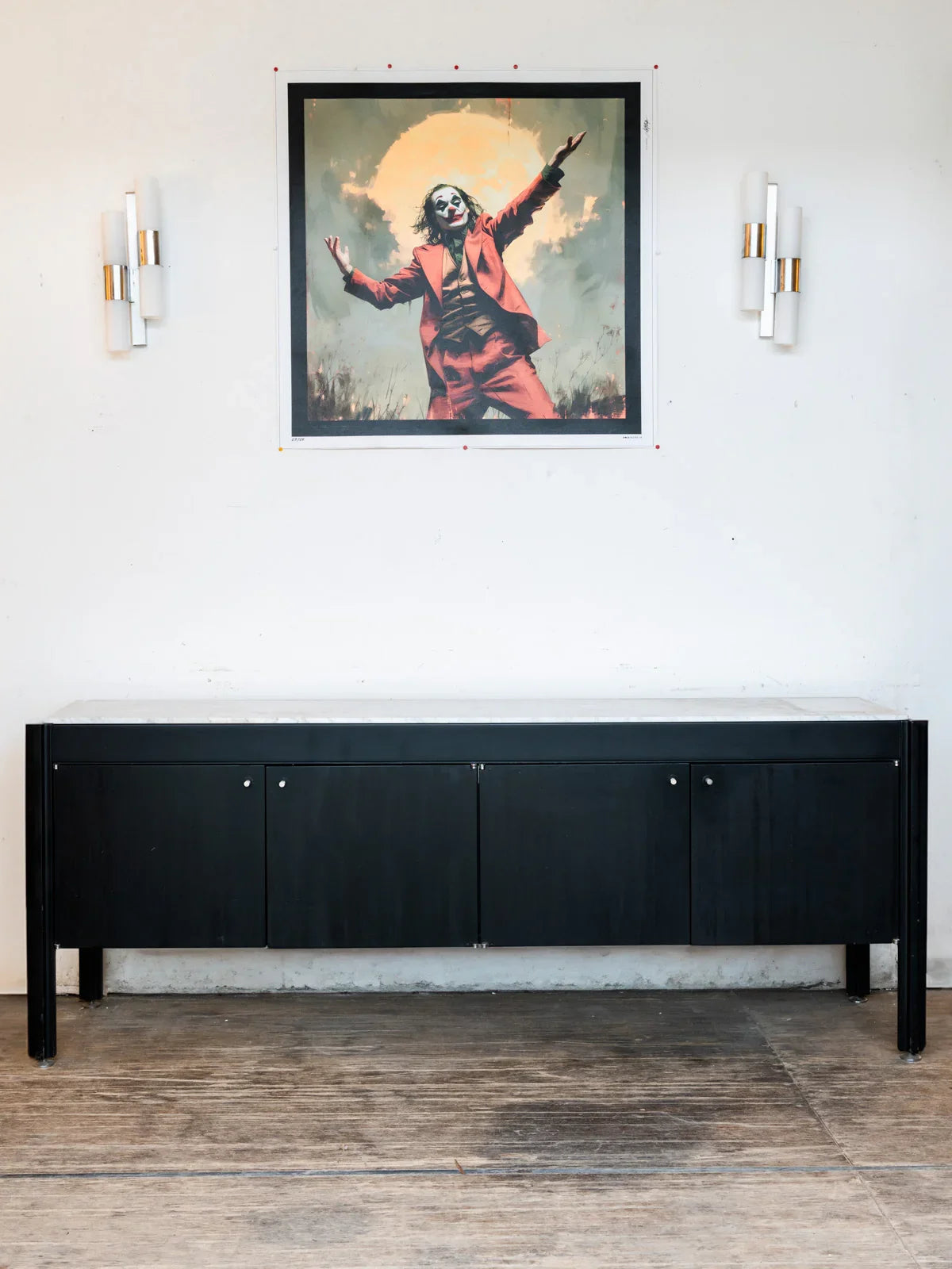 Exceptionnelle enfilade des années 80, alliant élégance intemporelle et fonctionnalité. Fabriquée en bois noirci, elle séduit par ses lignes épurées et son caractère affirmé. Son plateau en marbre apporte une touche de raffinement, idéal pour sublimer votre salon ou votre salle à manger. Dotée de quatre portes, elle offre un espace de rangement généreux pour organiser la vaisselle, les livres ou les objets déco. Parfaite pour une ambiance vintage chic, cette pièce unique s'intègre aussi bien dans un décor moderne que rétro. Faites de cette enfilade tout le charme de votre maison.